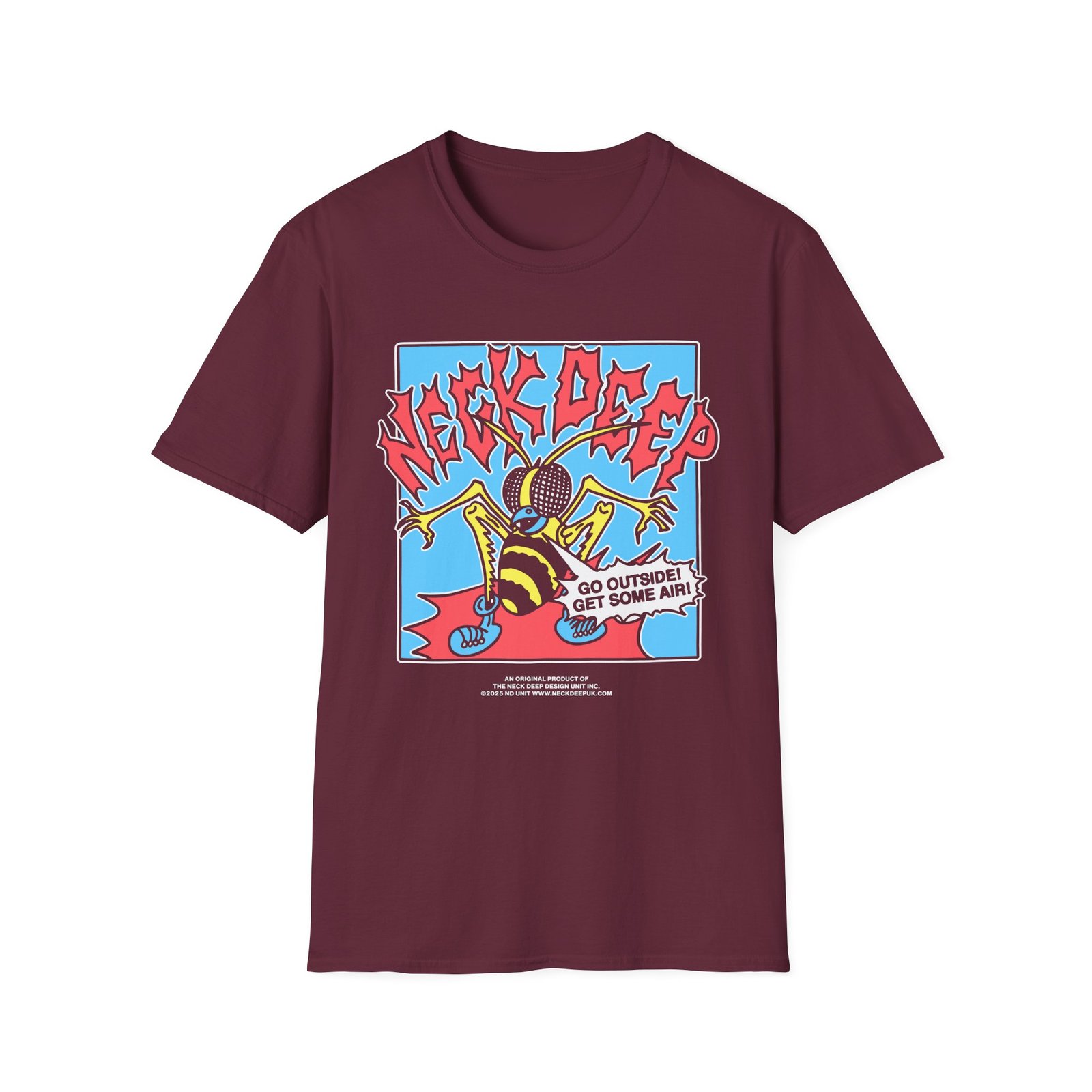 The Neck Deep Go Outside unisex soft-style t-shirt puts a new spin on casual comfort. Made from very soft materials, this tee is 100% cotton for solid colors. Heather colors and sports grey include polyester. The shoulders have twill tape for improved durability. There are no side seams. The collar is made with ribbed knitting to prevent curling damage.