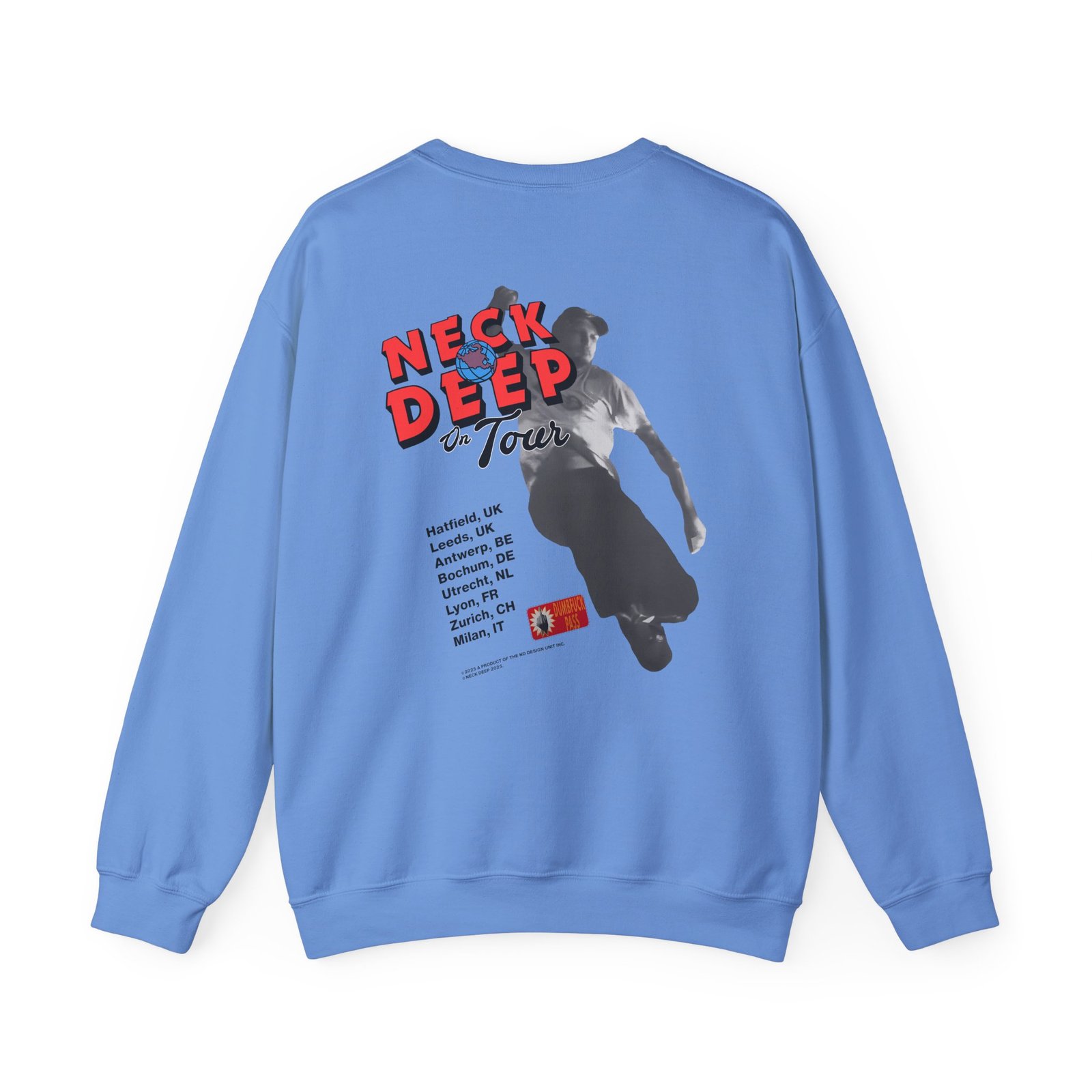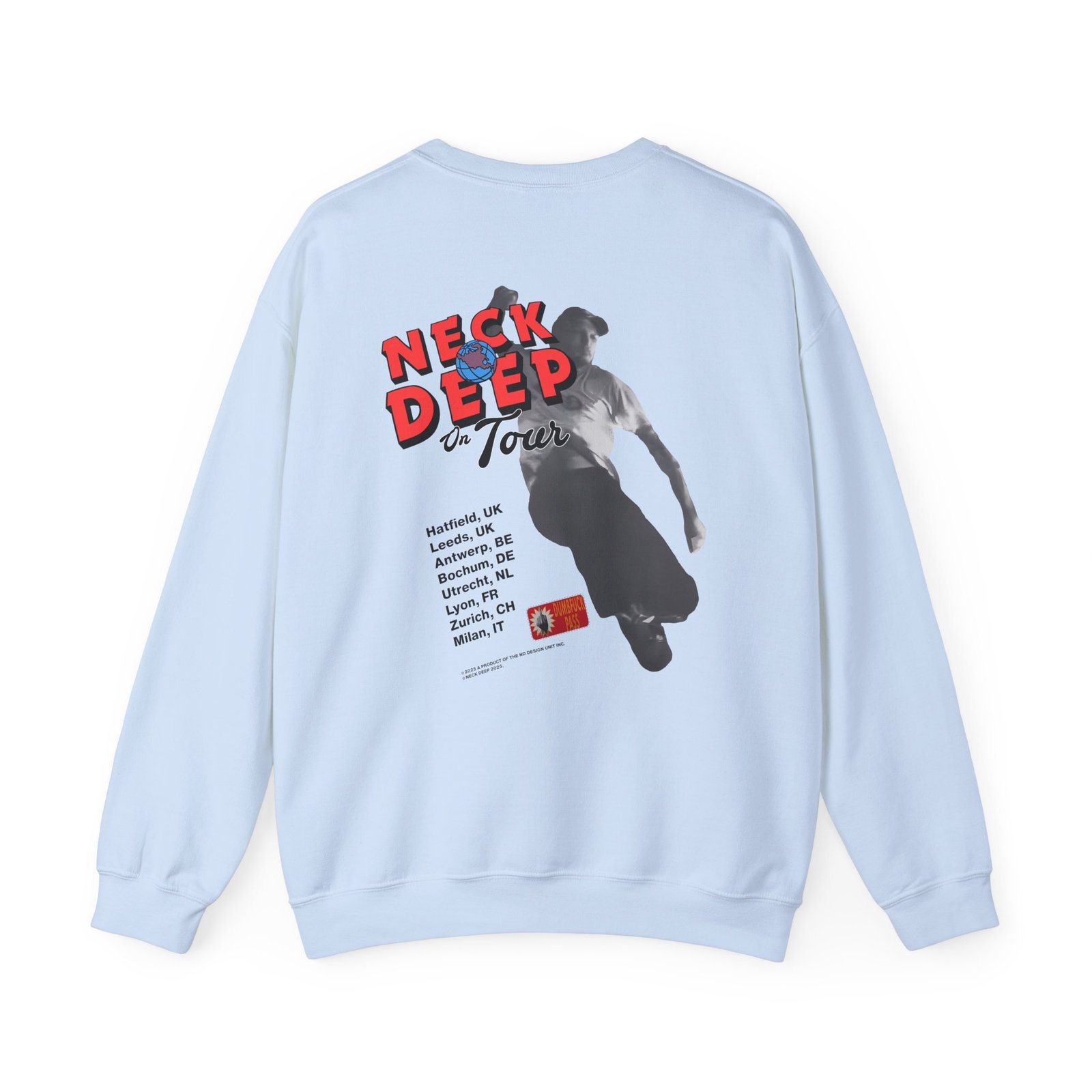 Ideal for any situation, a Neck Deep Slam Dunk 25 Tour unisex heavy blend crewneck sweatshirt is pure comfort. These garments are made from polyester and cotton. This combination helps designs come out looking fresh and beautiful. The collar is ribbed knit, so it retains its shape even after washing. There are no itchy side seams on these sweaters.