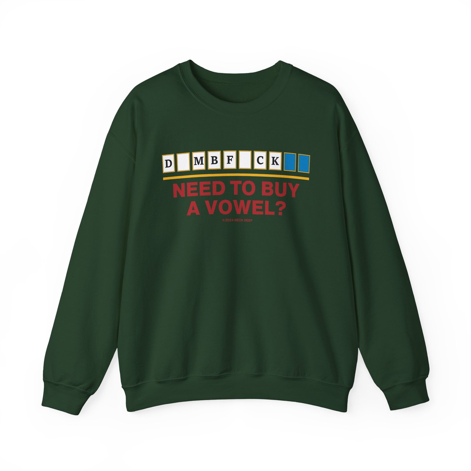 Ideal for any situation, a Neck Deep Vowel unisex heavy blend crewneck sweatshirt is pure comfort. These garments are made from polyester and cotton. This combination helps designs come out looking fresh and beautiful. The collar is ribbed knit, so it retains its shape even after washing. There are no itchy side seams on these sweaters.