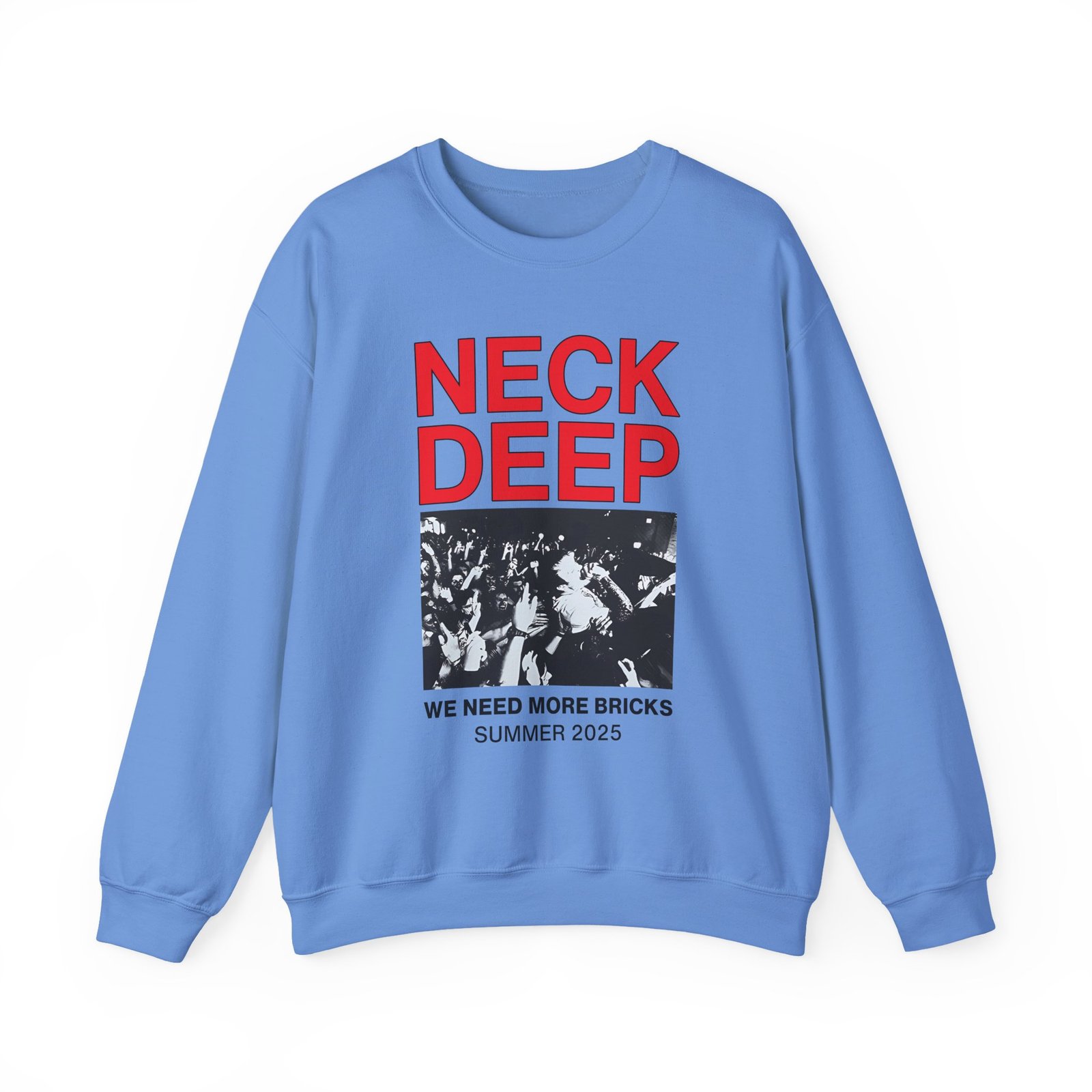 Ideal for any situation, a Neck Deep Youth unisex heavy blend crewneck sweatshirt is pure comfort. These garments are made from polyester and cotton. This combination helps designs come out looking fresh and beautiful. The collar is ribbed knit, so it retains its shape even after washing. There are no itchy side seams on these sweaters.