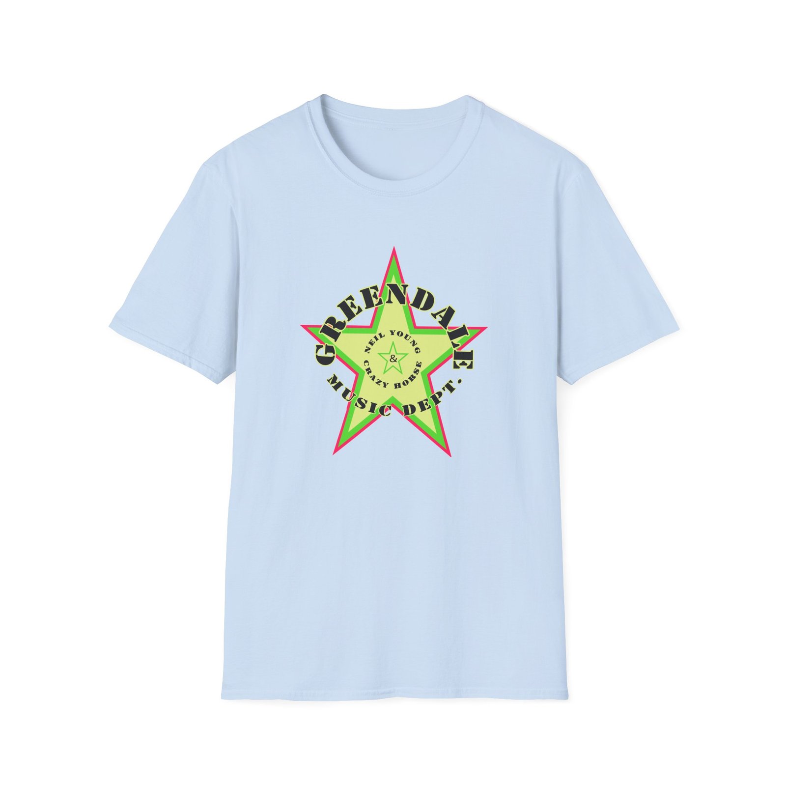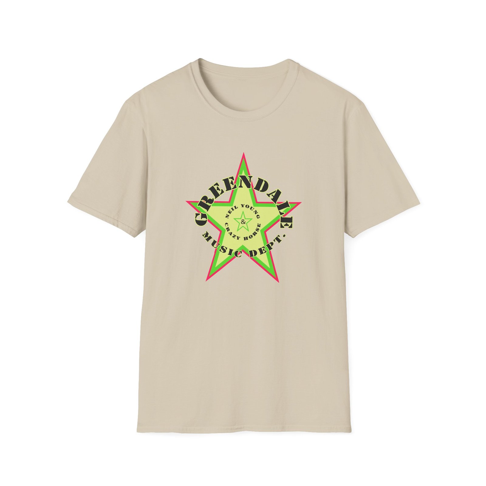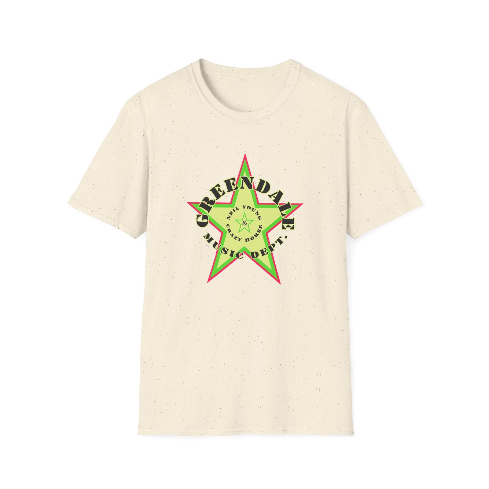 The Neil Young Greendale Star unisex soft-style t-shirt puts a new spin on casual comfort. Made from very soft materials, this tee is 100% cotton for solid colors. Heather colors and sports grey include polyester. The shoulders have twill tape for improved durability. There are no side seams. The collar is made with ribbed knitting to prevent curling damage.