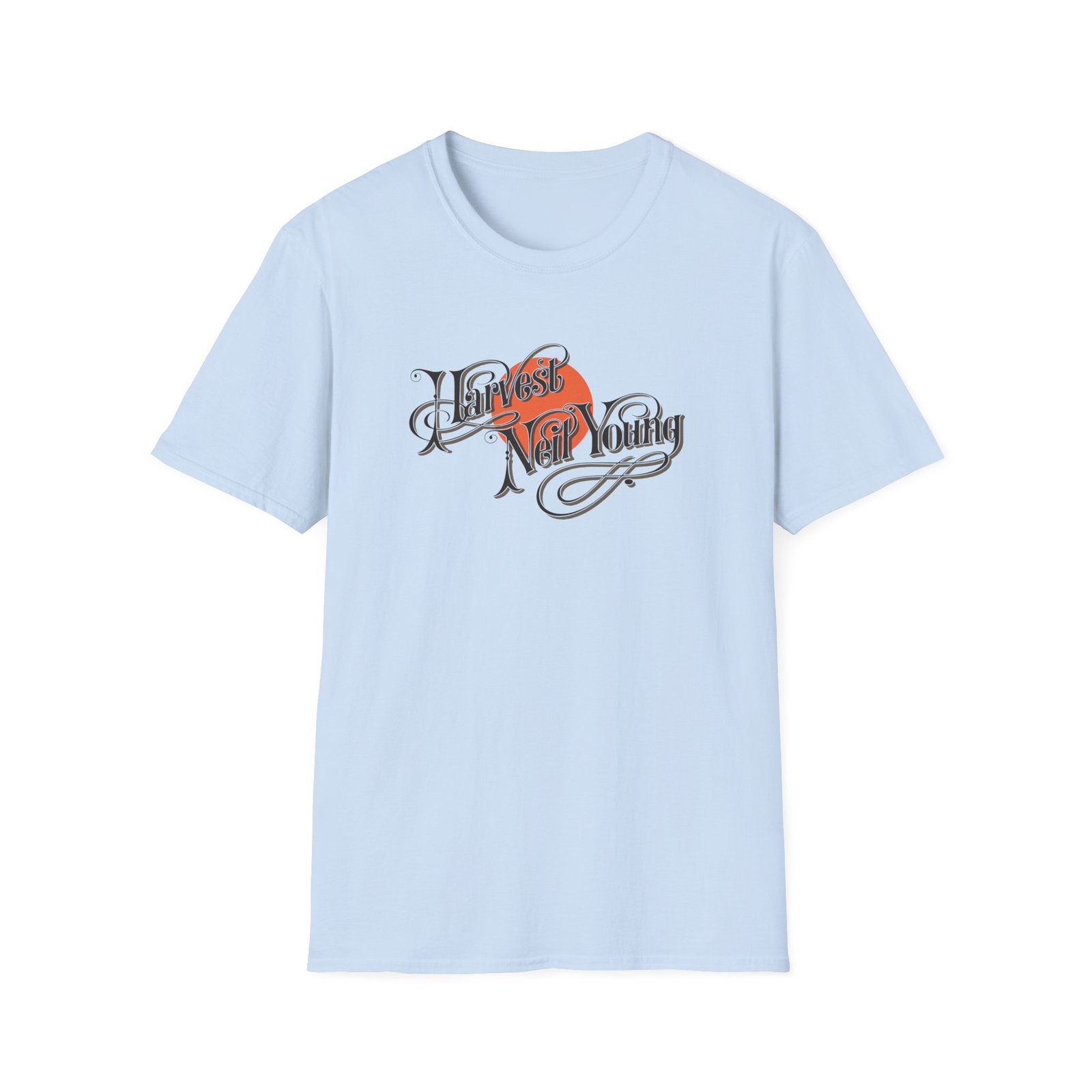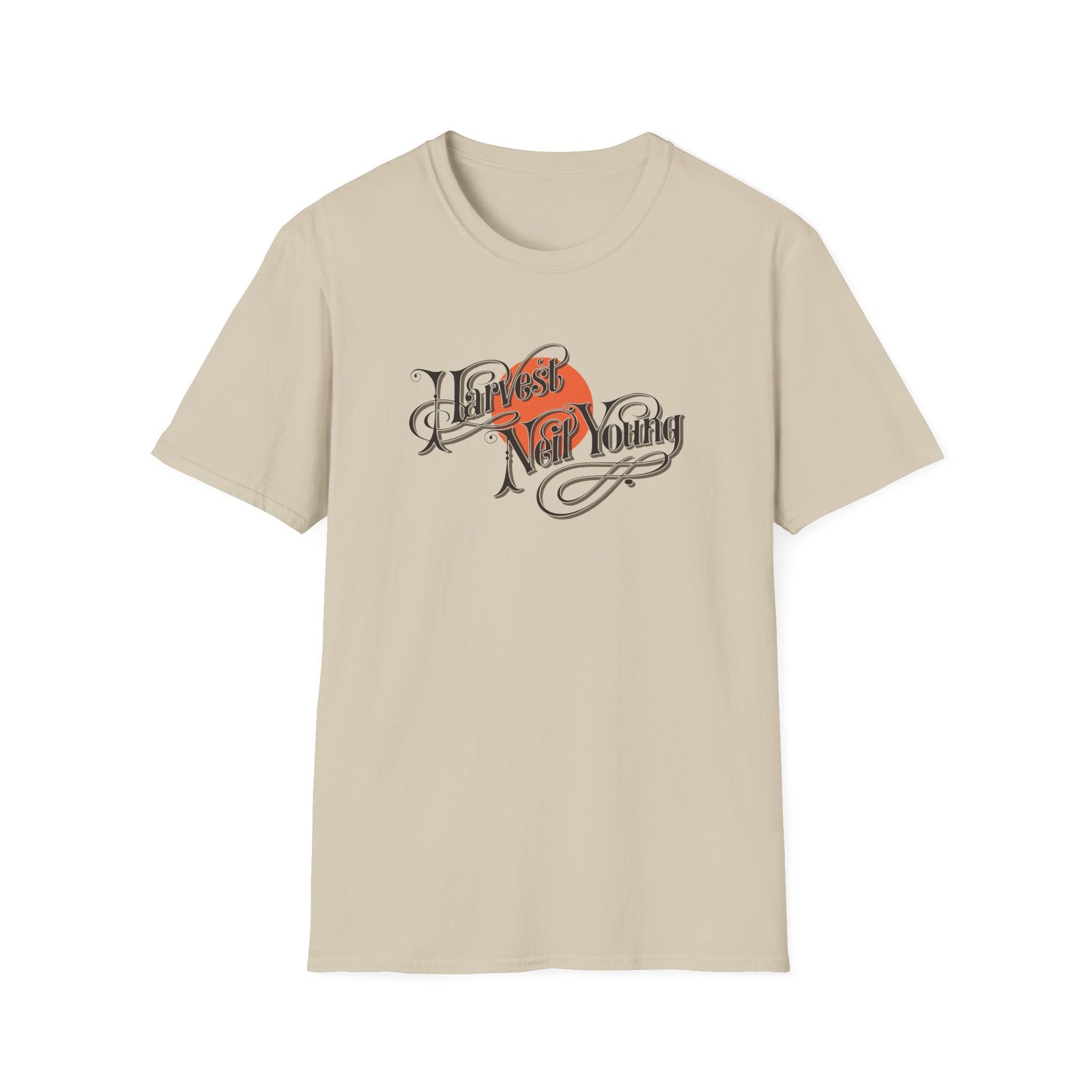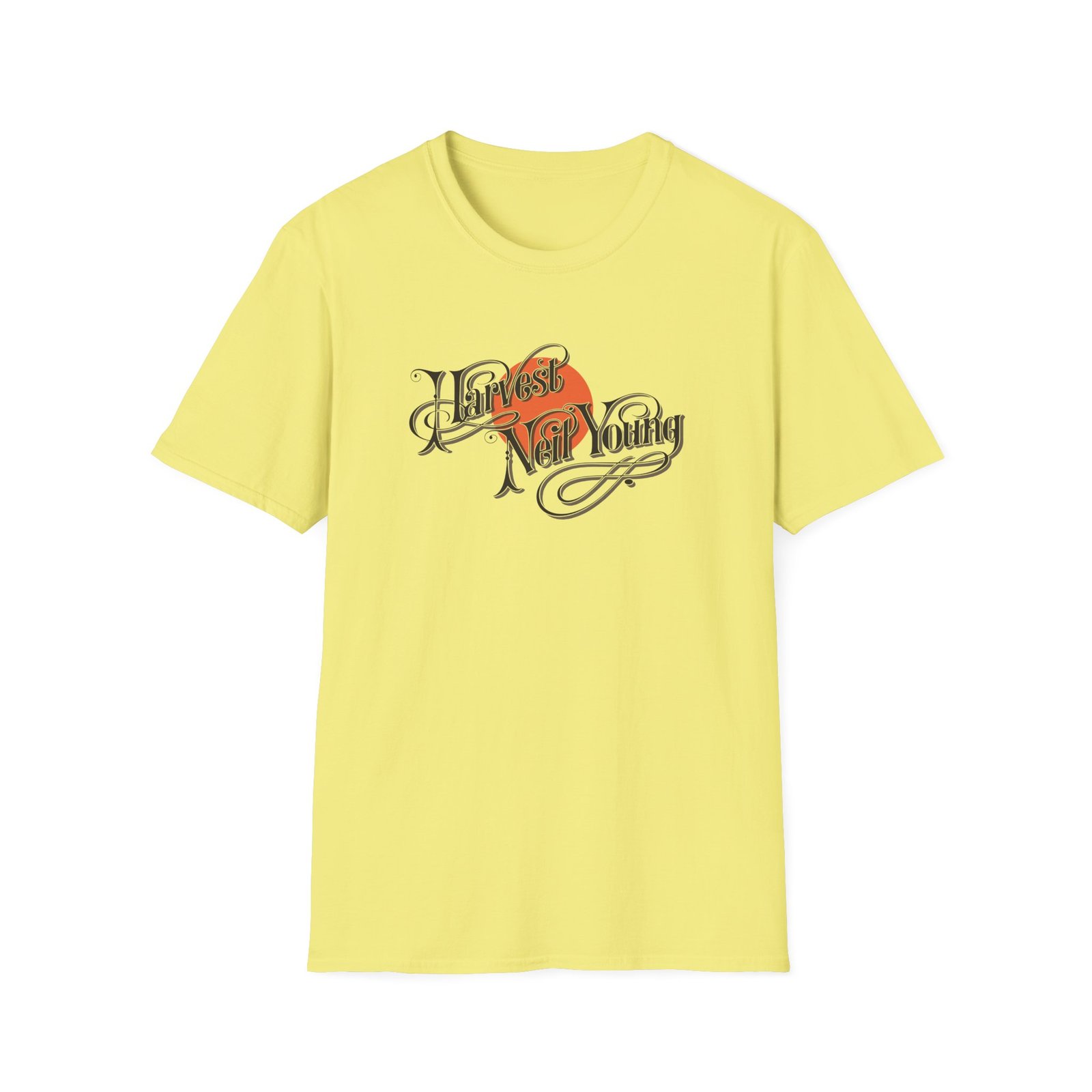 The Neil Young Harvest unisex soft-style t-shirt puts a new spin on casual comfort. Made from very soft materials, this tee is 100% cotton for solid colors. Heather colors and sports grey include polyester. The shoulders have twill tape for improved durability. There are no side seams. The collar is made with ribbed knitting to prevent curling damage.