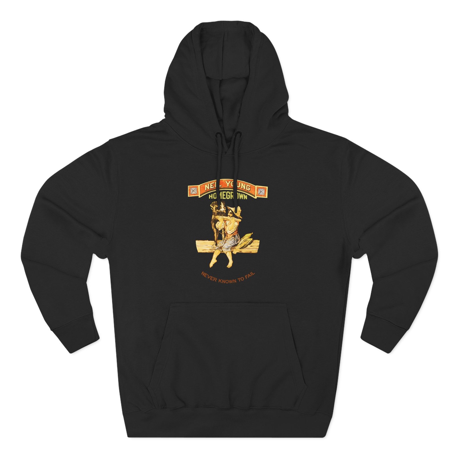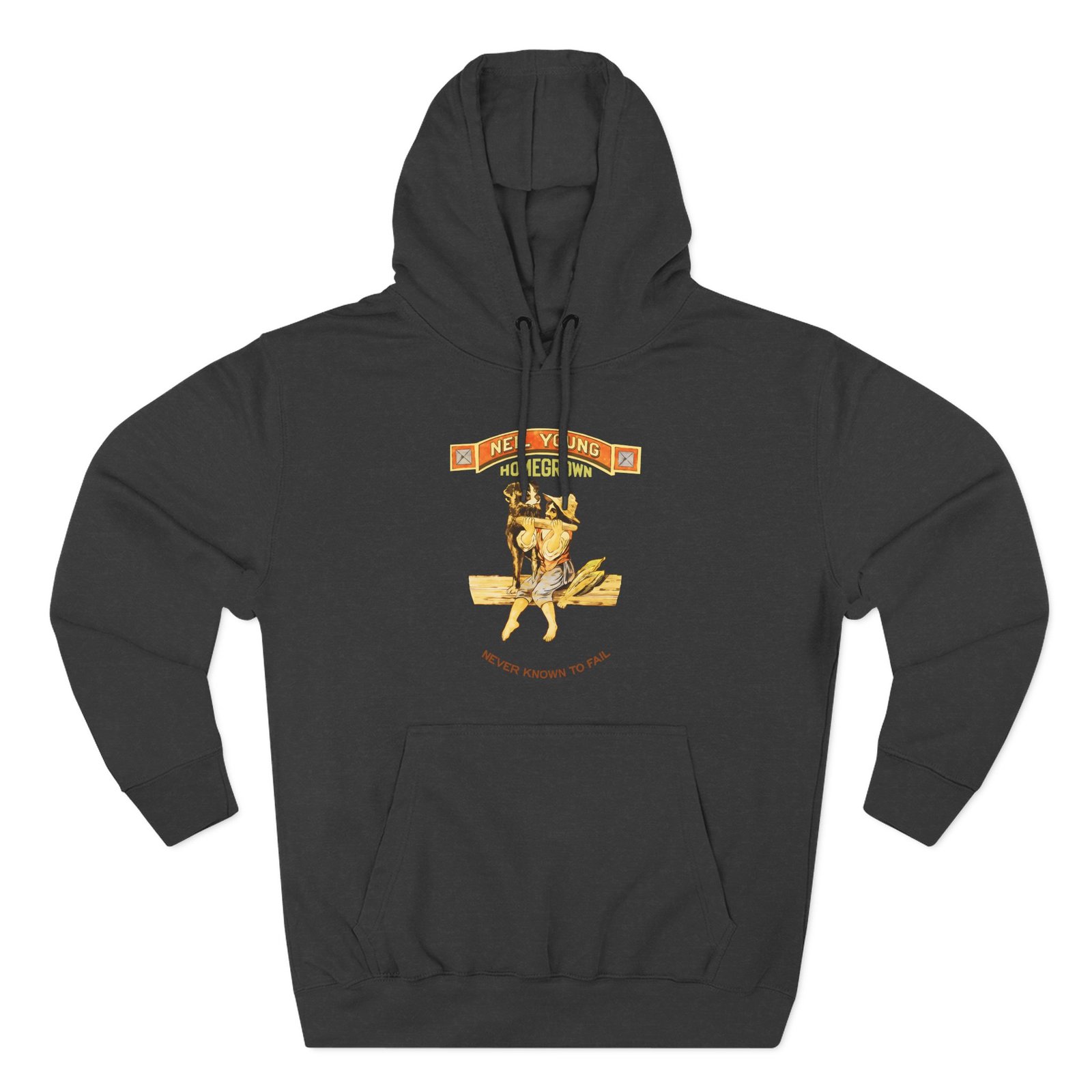 Beat the cold with this Neil Young Homegrown premium pullover hoodie that’s just the right layer of warm and cozy. Made with three-panel fleece lining, this pullover is double stitched for durability and roomy. Pick one in your favorite color to match your style.