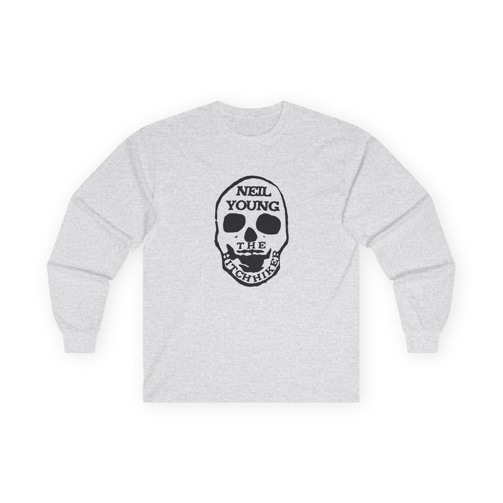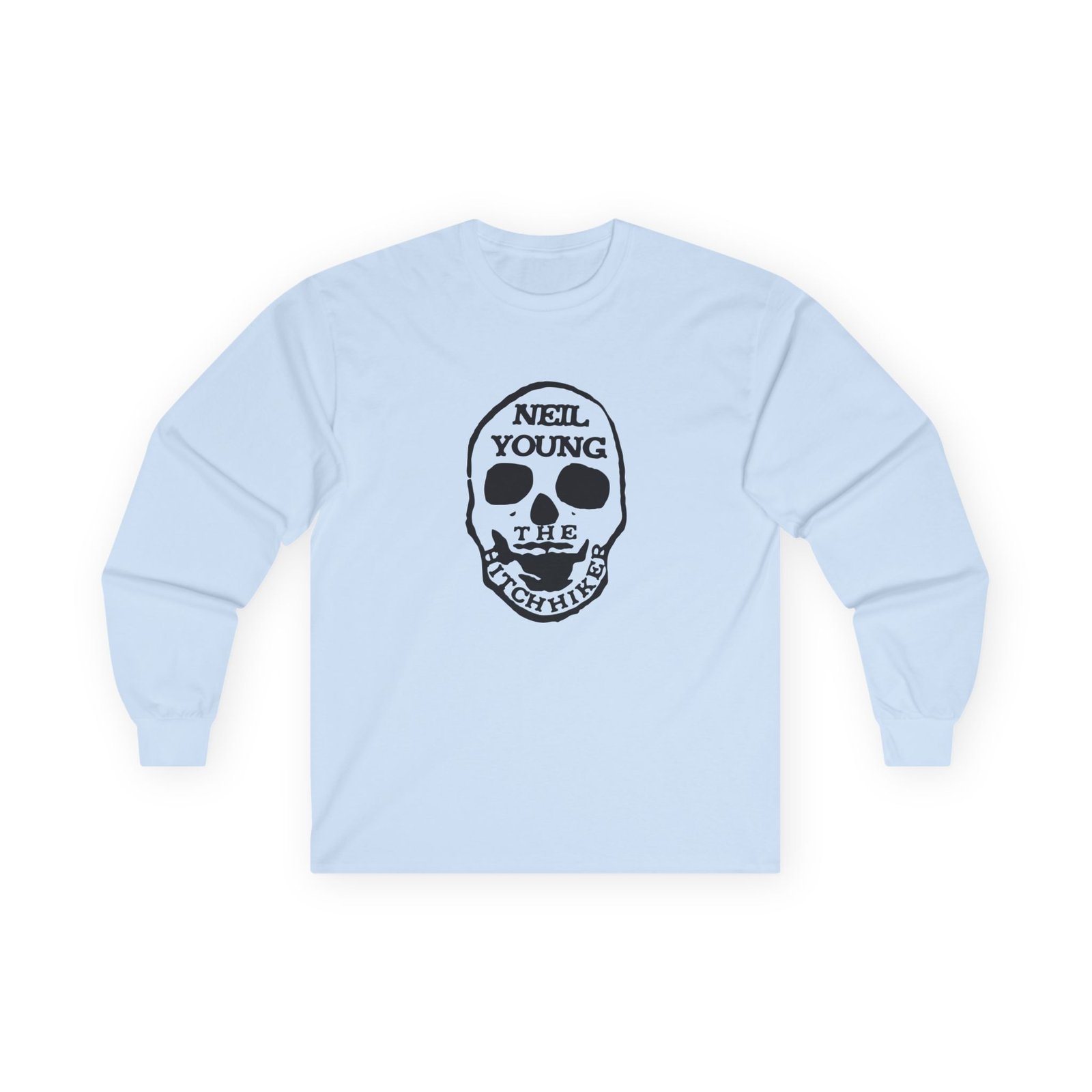 A bit more formal than a standard-issue t-shirt, the Neil Young the Hitchhiker ultra cotton long sleeve tee is a clear comfort winner. The sleeves also act as a nice frame. There are no side seams. The shoulders are taped for improved durability. This makes for a good fitting around the shoulders and neck. The cotton used for these shirts is environmentally friendly.