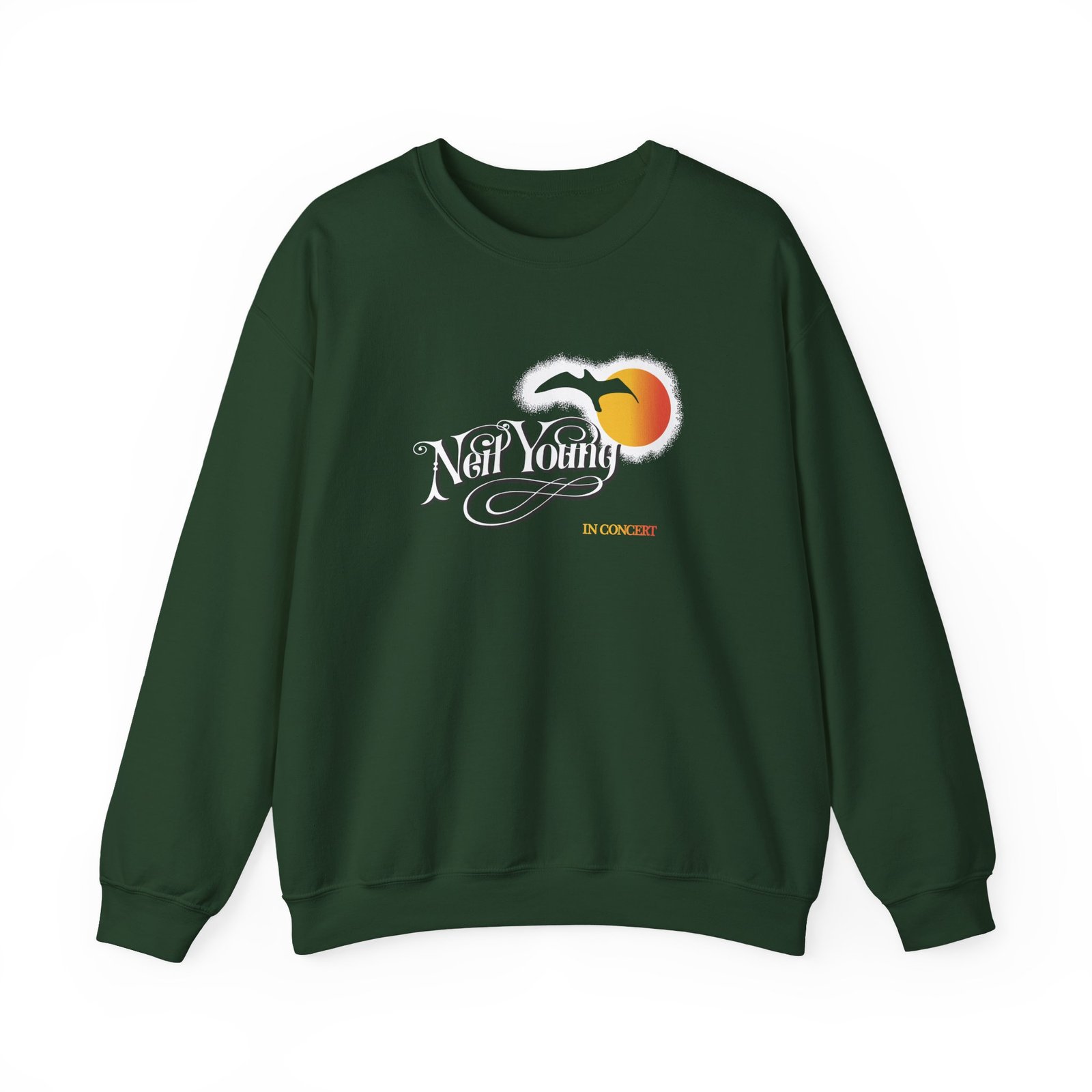 Ideal for any situation, a Neil Young Vintage in Concert unisex heavy blend crewneck sweatshirt is pure comfort. These garments are made from polyester and cotton. This combination helps designs come out looking fresh and beautiful. The collar is ribbed knit, so it retains its shape even after washing. There are no itchy side seams on these sweaters.