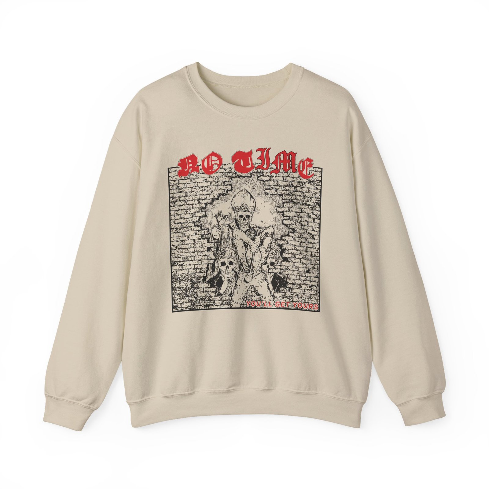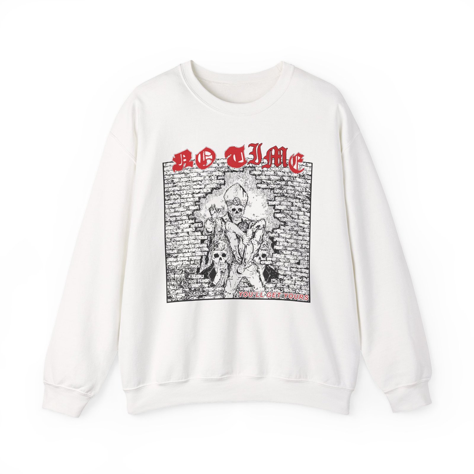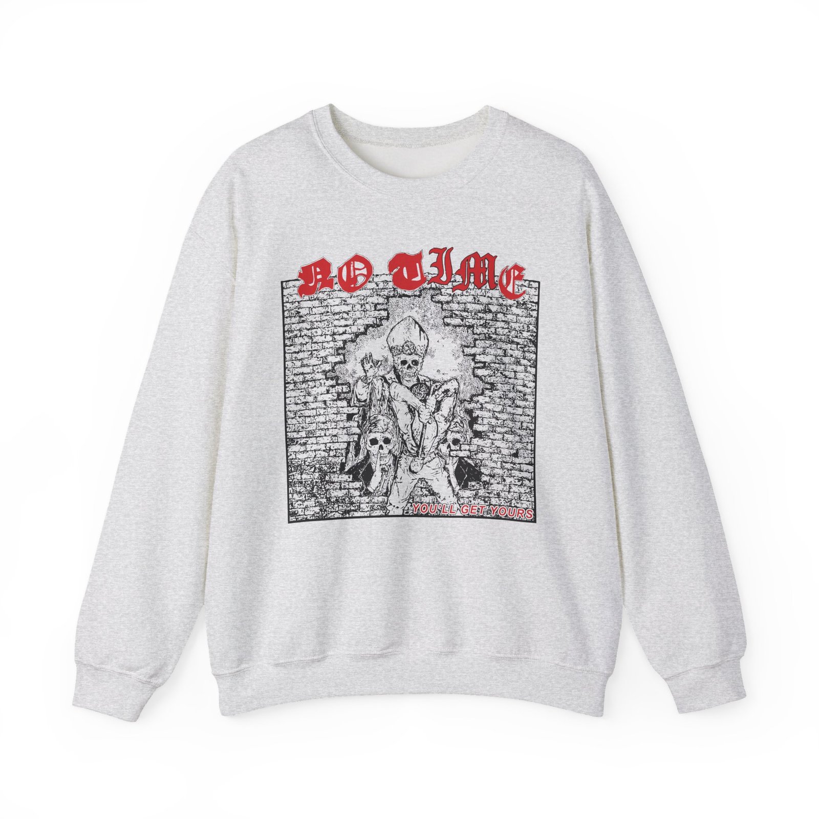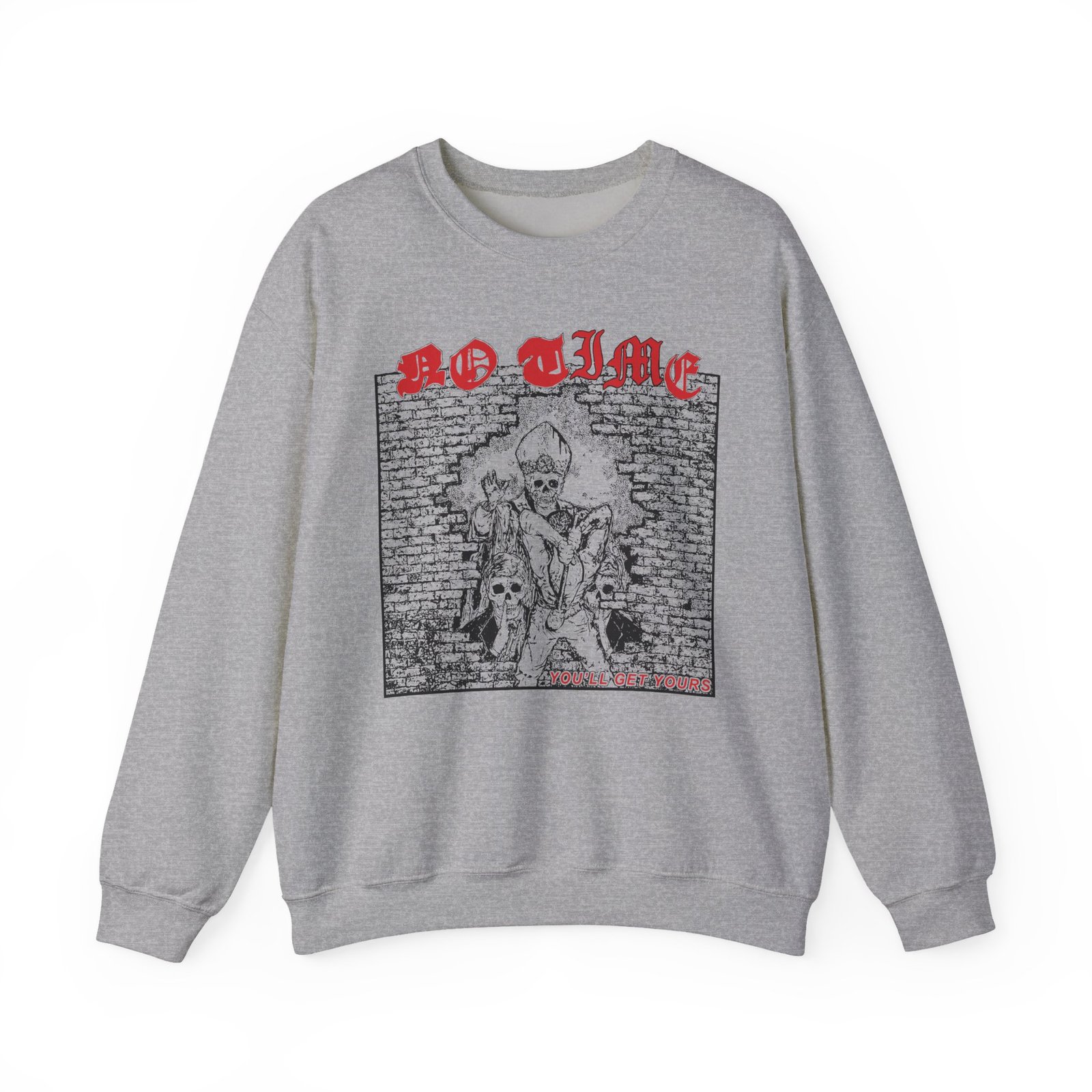 Ideal for any situation, a No Time Get Yours unisex heavy blend crewneck sweatshirt is pure comfort. These garments are made from polyester and cotton. This combination helps designs come out looking fresh and beautiful. The collar is ribbed knit, so it retains its shape even after washing. There are no itchy side seams on these sweaters.
