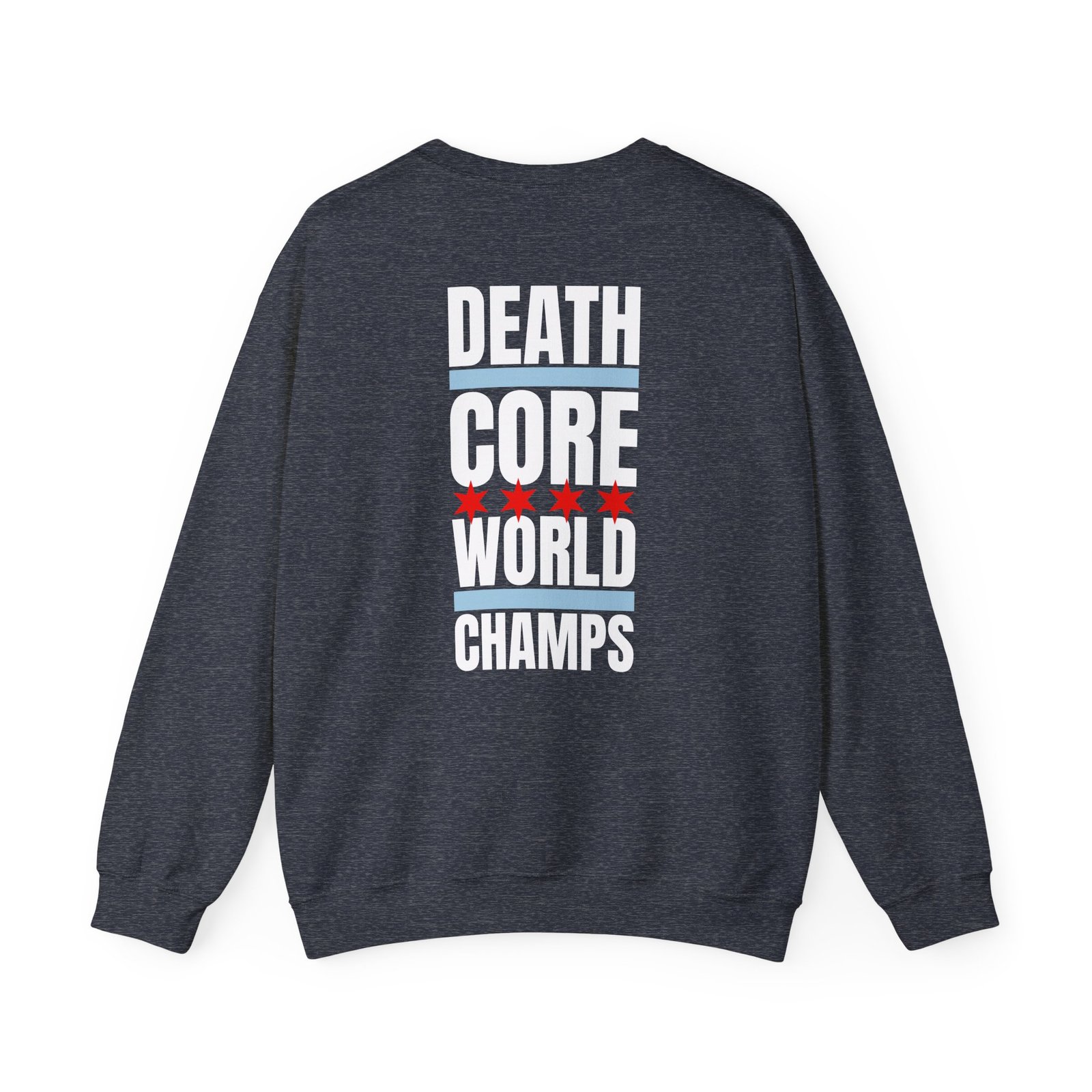 Ideal for any situation, a Oceano Death Core World Champs unisex heavy blend crewneck sweatshirt is pure comfort. These garments are made from polyester and cotton. This combination helps designs come out looking fresh and beautiful. The collar is ribbed knit, so it retains its shape even after washing. There are no itchy side seams on these sweaters.