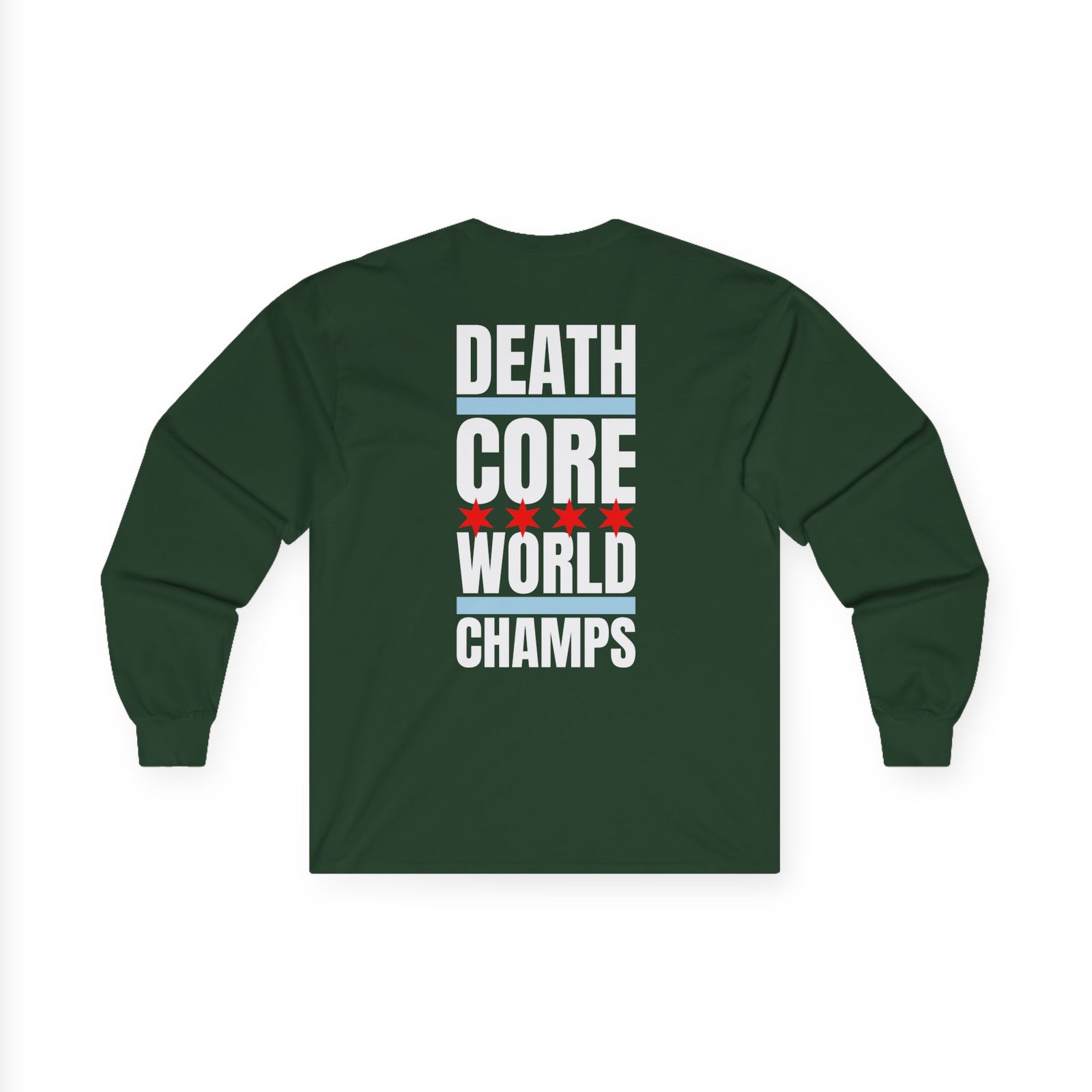 A bit more formal than a standard-issue t-shirt, the Oceano Death Core World Champs ultra cotton long sleeve tee is a clear comfort winner. The sleeves also act as a nice frame. There are no side seams. The shoulders are taped for improved durability. This makes for a good fitting around the shoulders and neck. The cotton used for these shirts is environmentally friendly.
