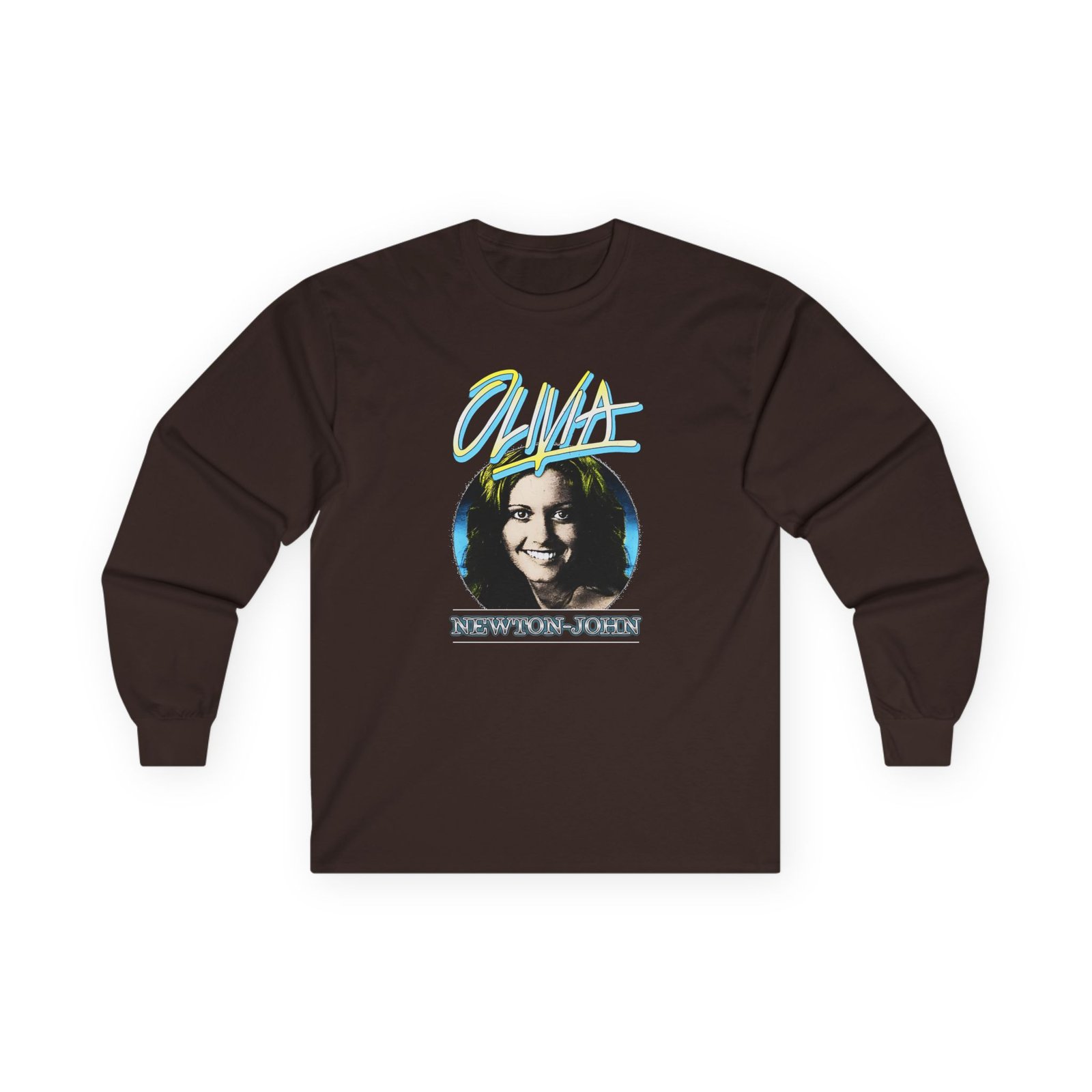 A bit more formal than a standard-issue t-shirt, the Olivia Newton John Bold ultra cotton long sleeve tee is a clear comfort winner. The sleeves also act as a nice frame. There are no side seams. The shoulders are taped for improved durability. This makes for a good fitting around the shoulders and neck. The cotton used for these shirts is environmentally friendly.