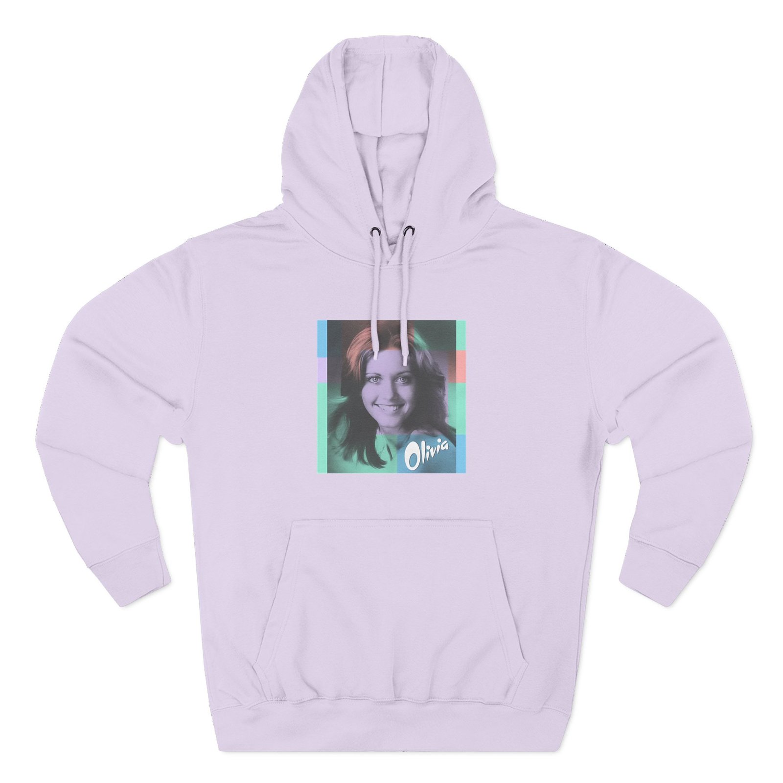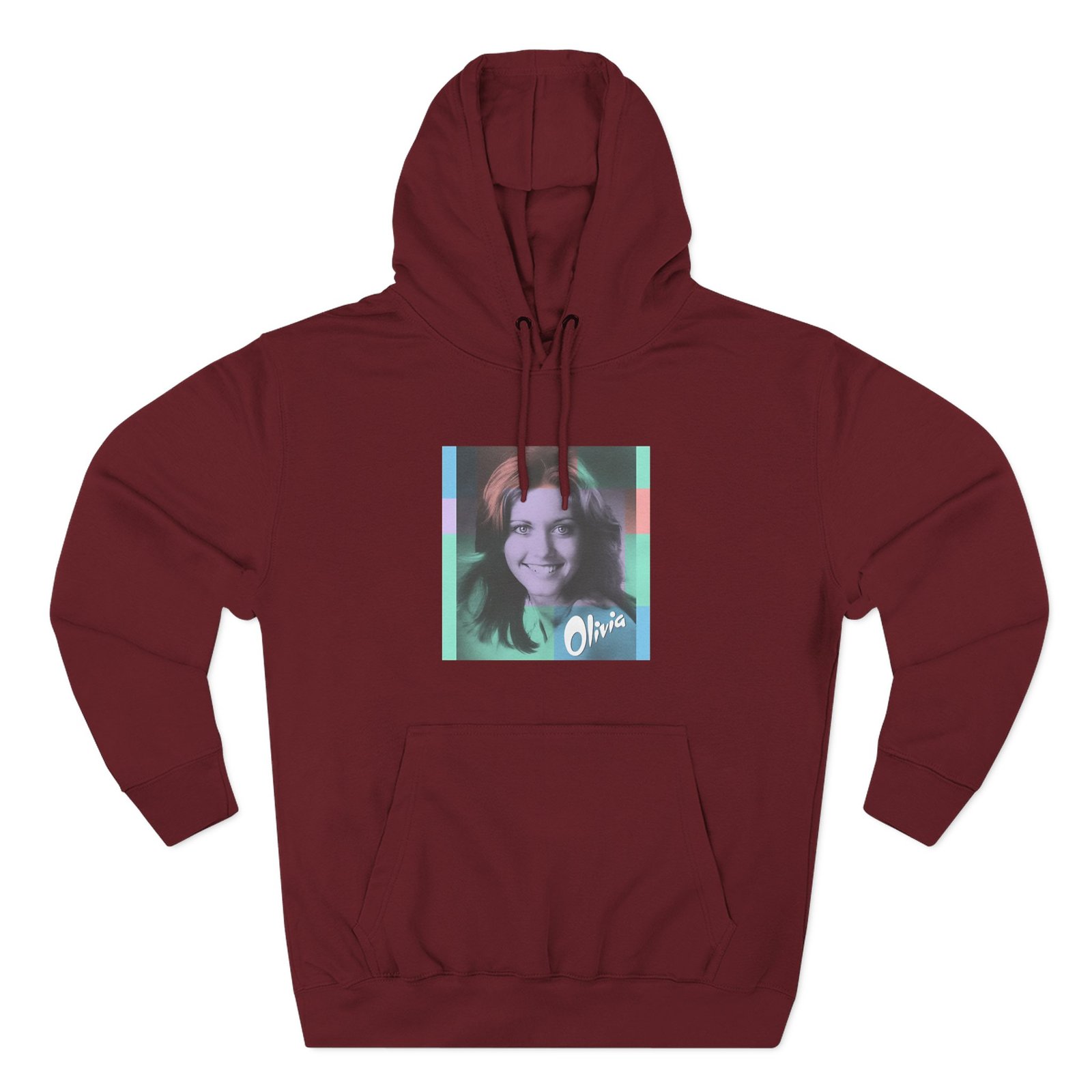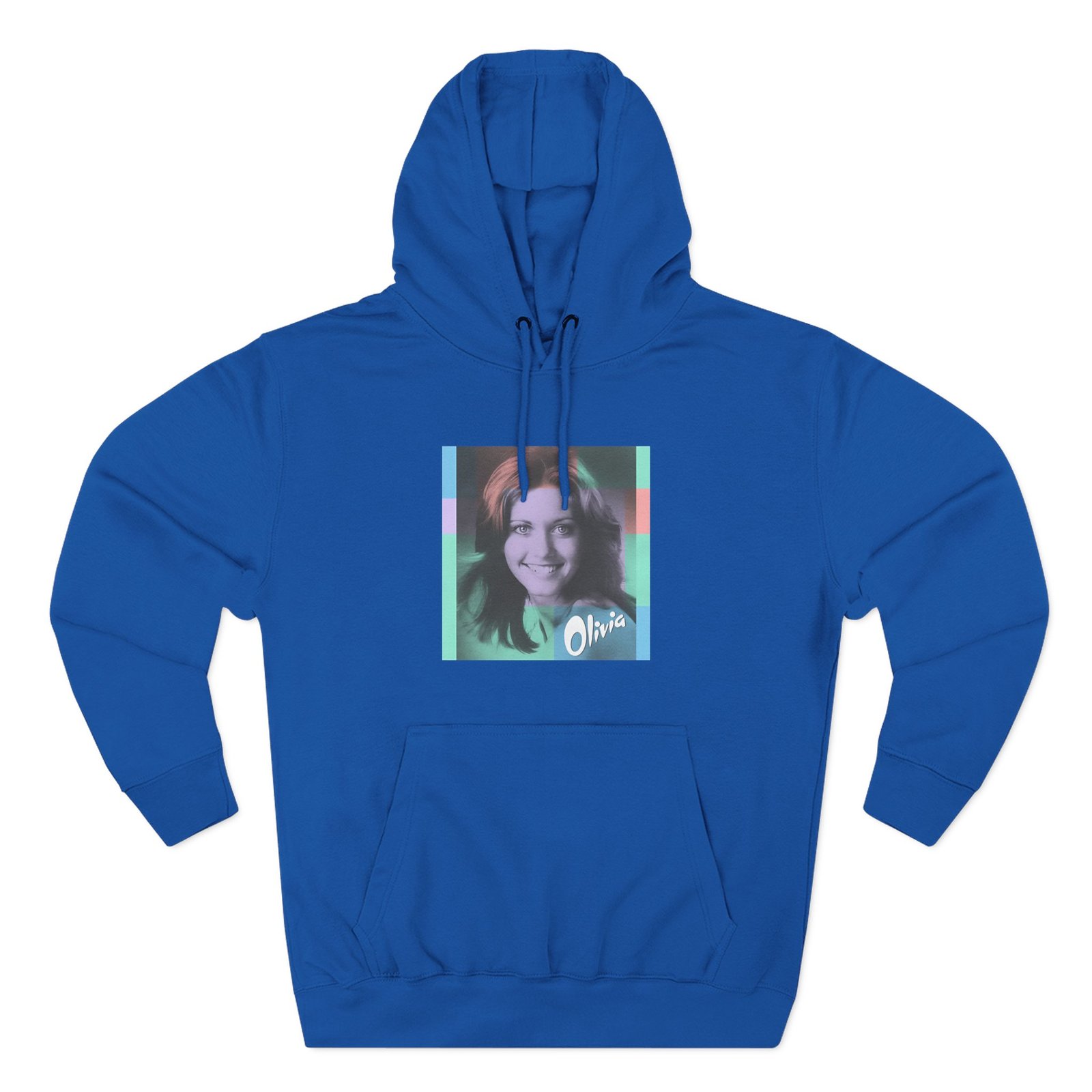 Beat the cold with this Olivia Newton John Color Block premium pullover hoodie that’s just the right layer of warm and cozy. Made with three-panel fleece lining, this pullover is double stitched for durability and roomy. Pick one in your favorite color to match your style.