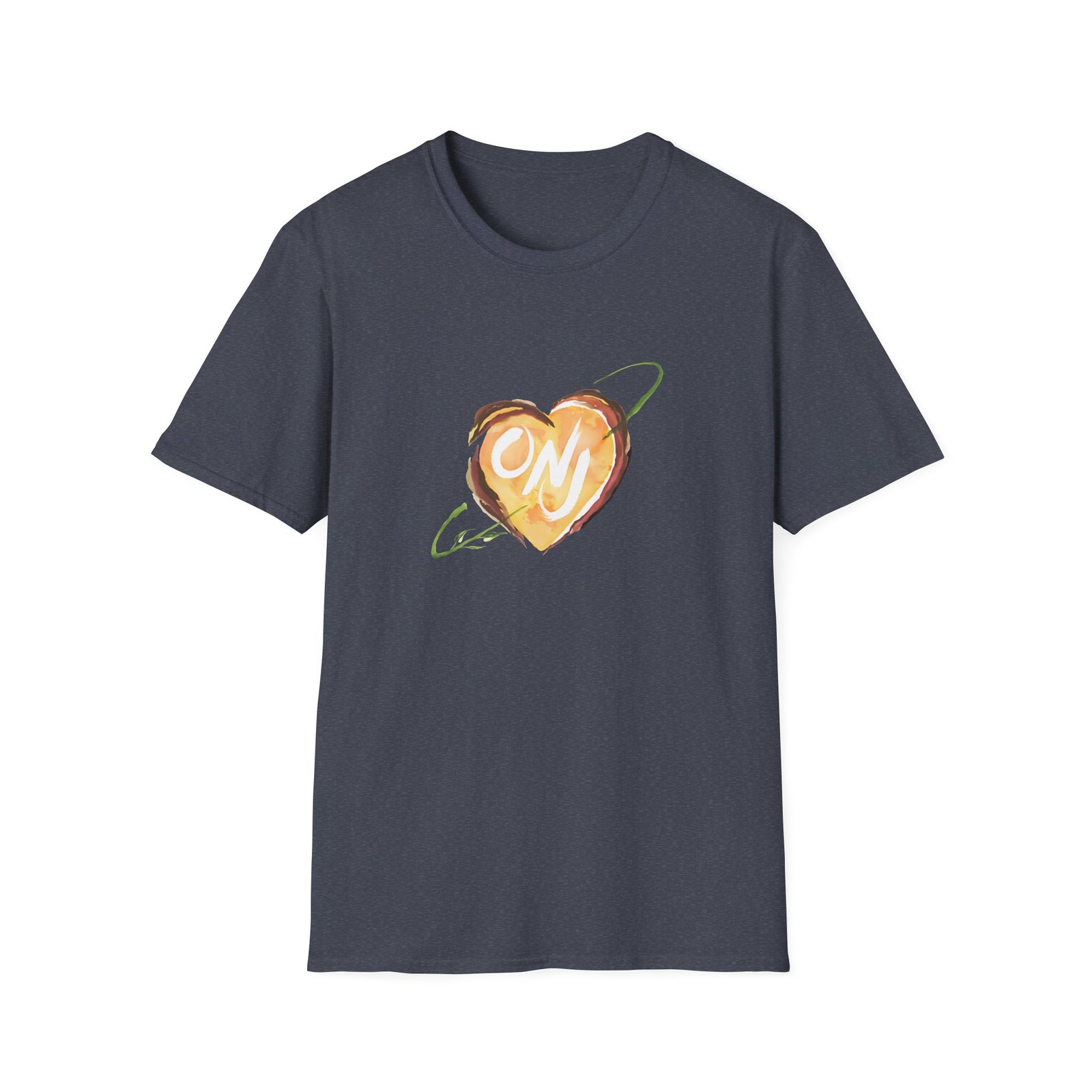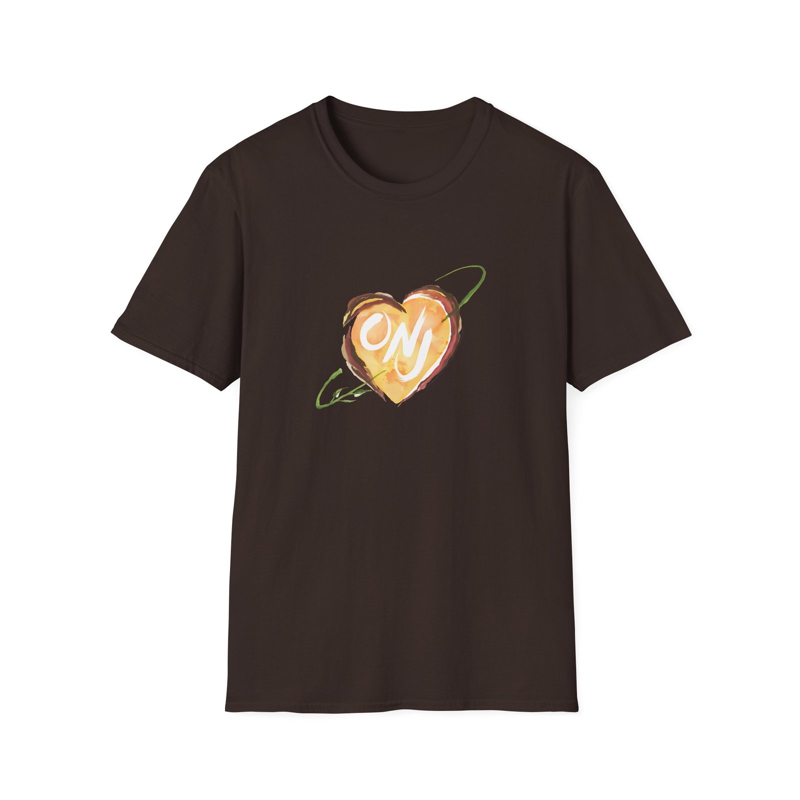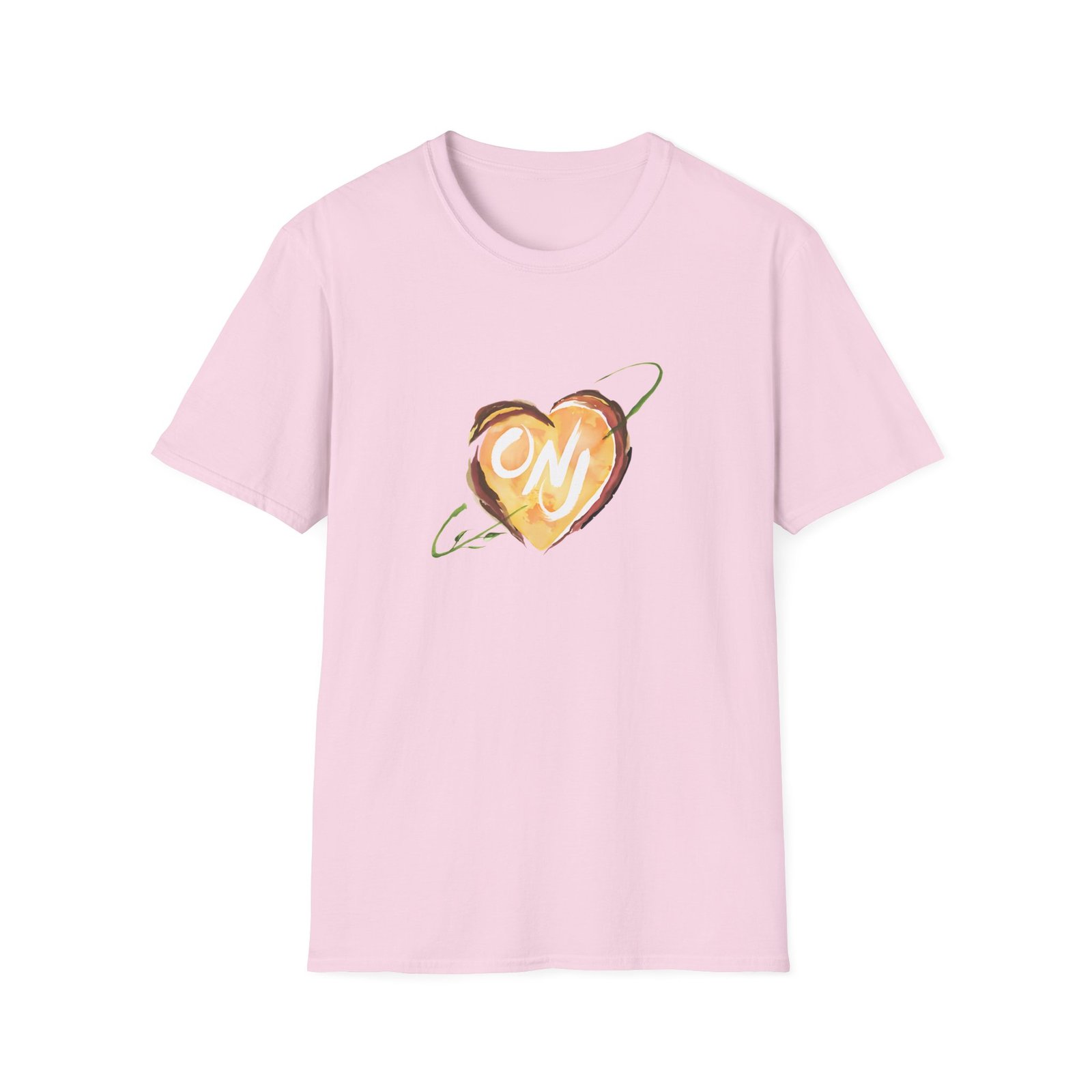 The Olivia Newton John Heart Logo unisex soft-style t-shirt puts a new spin on casual comfort. Made from very soft materials, this tee is 100% cotton for solid colors. Heather colors and sports grey include polyester. The shoulders have twill tape for improved durability. There are no side seams. The collar is made with ribbed knitting to prevent curling damage.