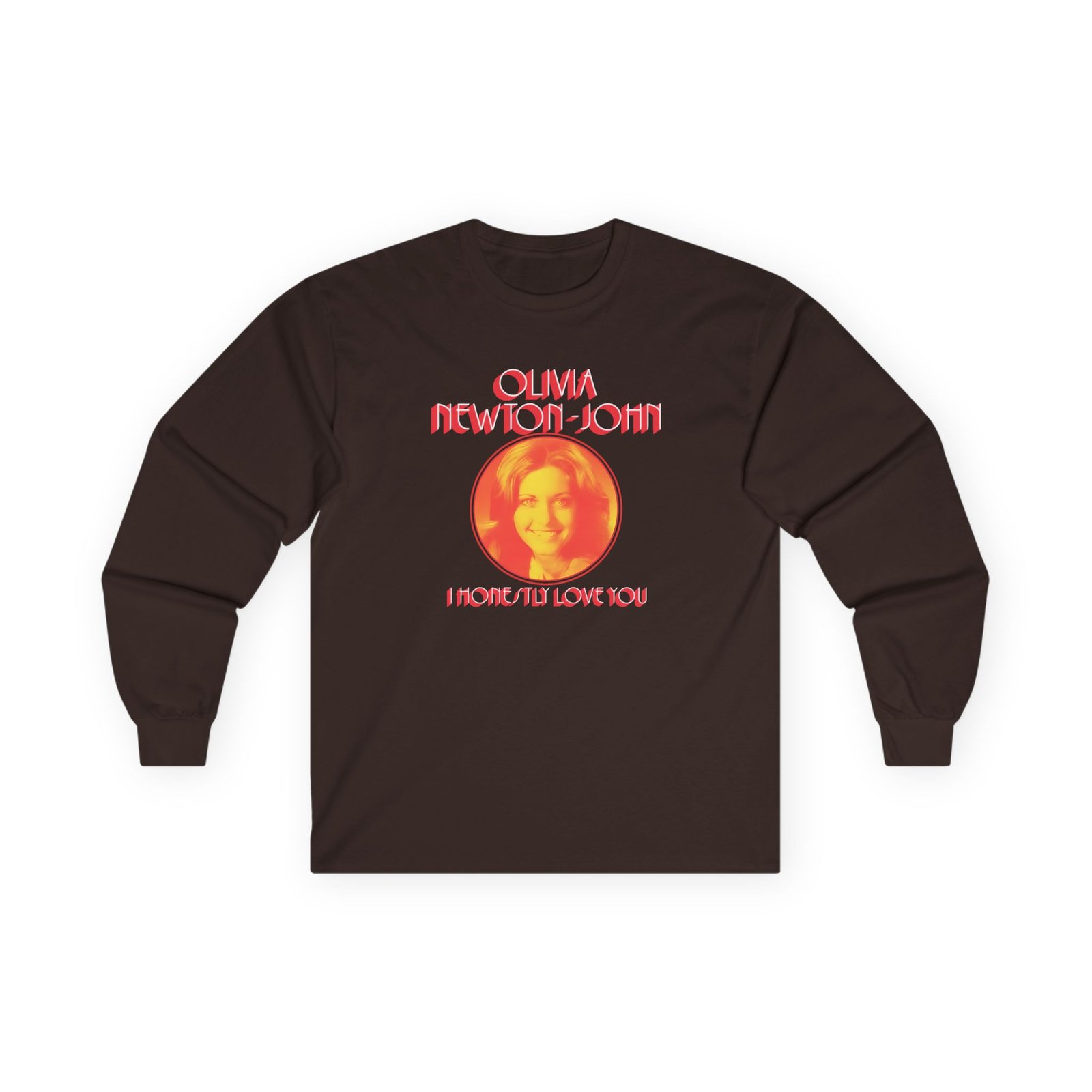A bit more formal than a standard-issue t-shirt, the Olivia Newton John I Honestly Love You ultra cotton long sleeve tee is a clear comfort winner. The sleeves also act as a nice frame. There are no side seams. The shoulders are taped for improved durability. This makes for a good fitting around the shoulders and neck. The cotton used for these shirts is environmentally friendly.