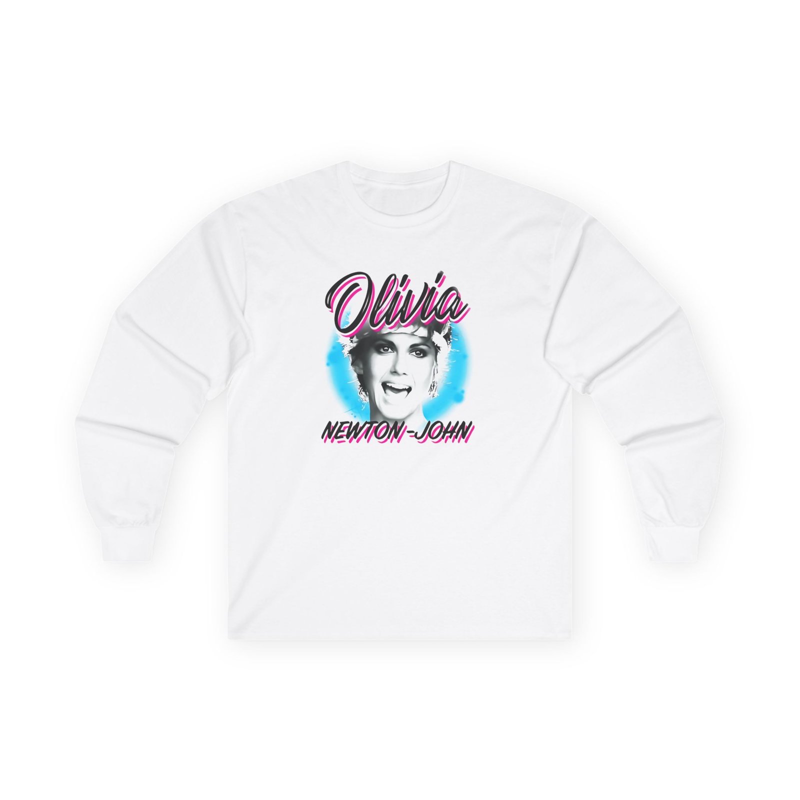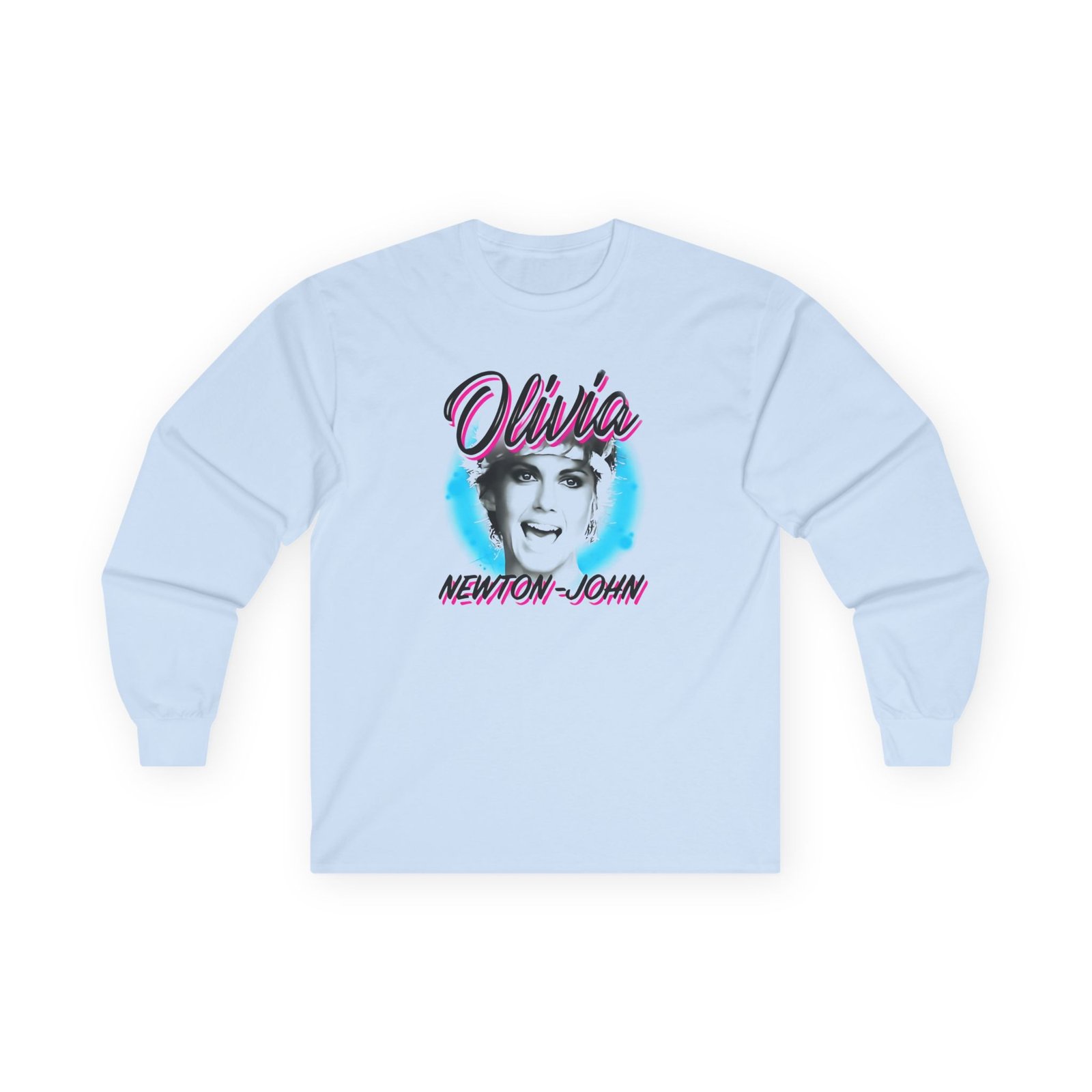 A bit more formal than a standard-issue t-shirt, the Olivia Newton John Pastel Paint ultra cotton long sleeve tee is a clear comfort winner. The sleeves also act as a nice frame. There are no side seams. The shoulders are taped for improved durability. This makes for a good fitting around the shoulders and neck. The cotton used for these shirts is environmentally friendly.
