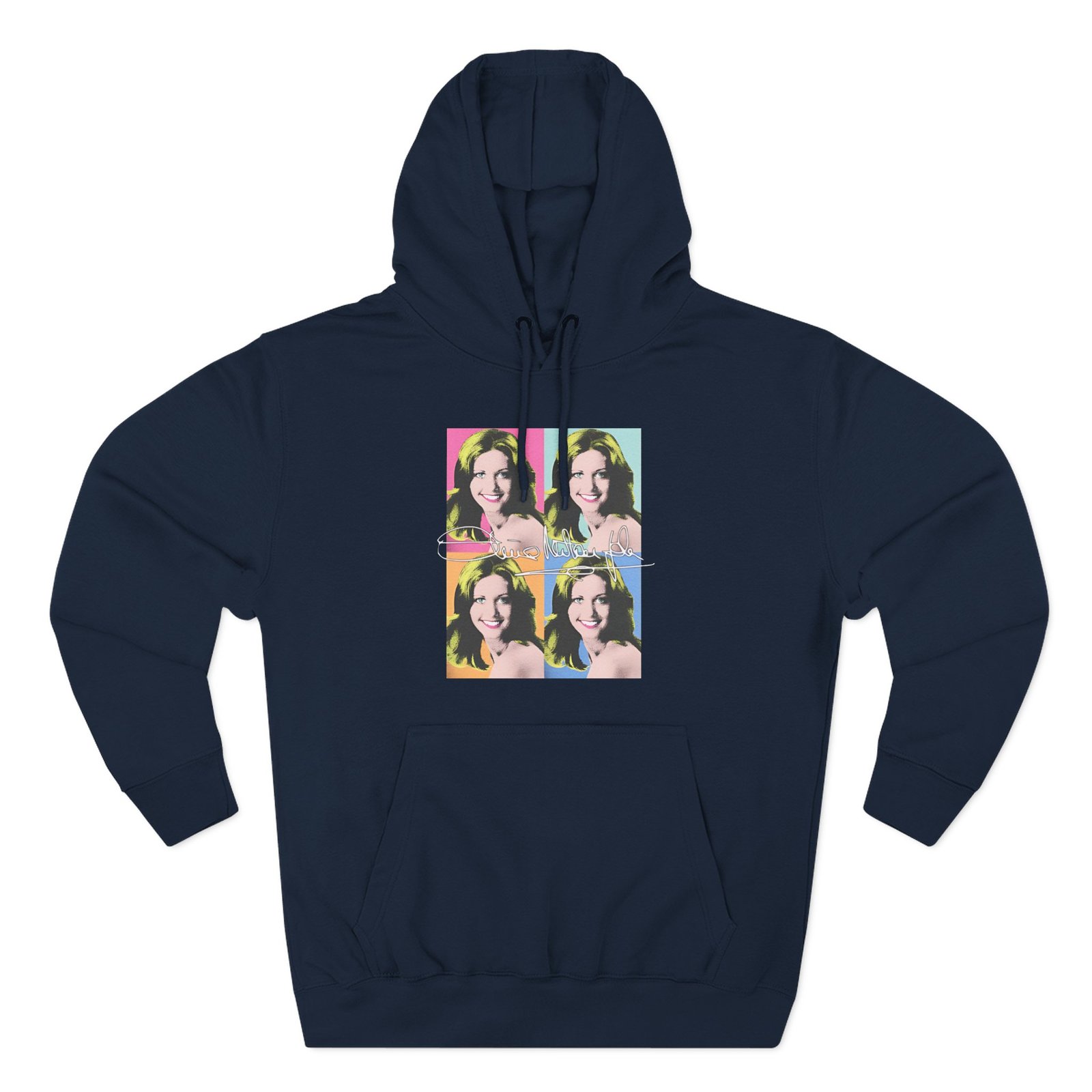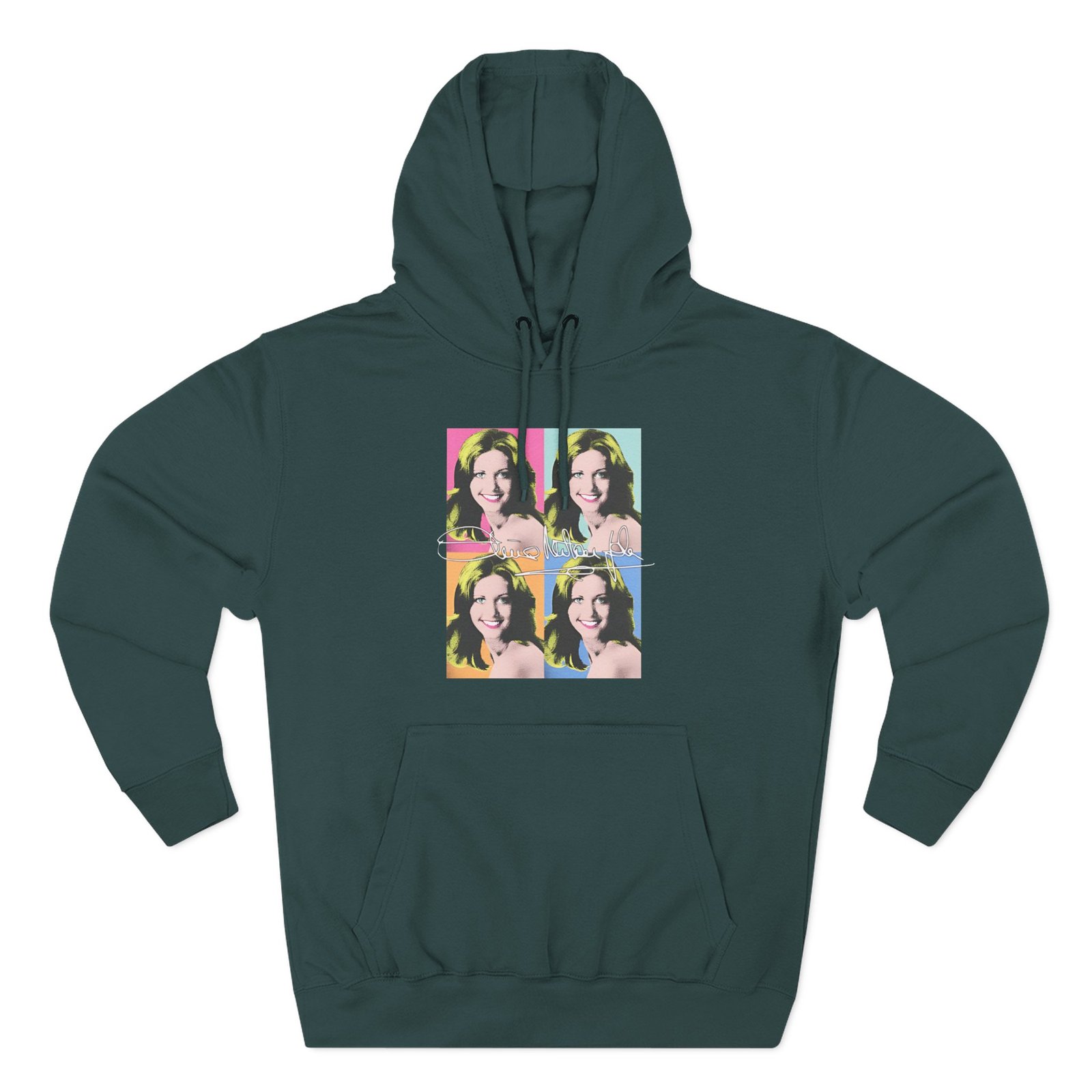 Beat the cold with this Olivia Newton John Pop Art premium pullover hoodie that’s just the right layer of warm and cozy. Made with three-panel fleece lining, this pullover is double stitched for durability and roomy. Pick one in your favorite color to match your style.