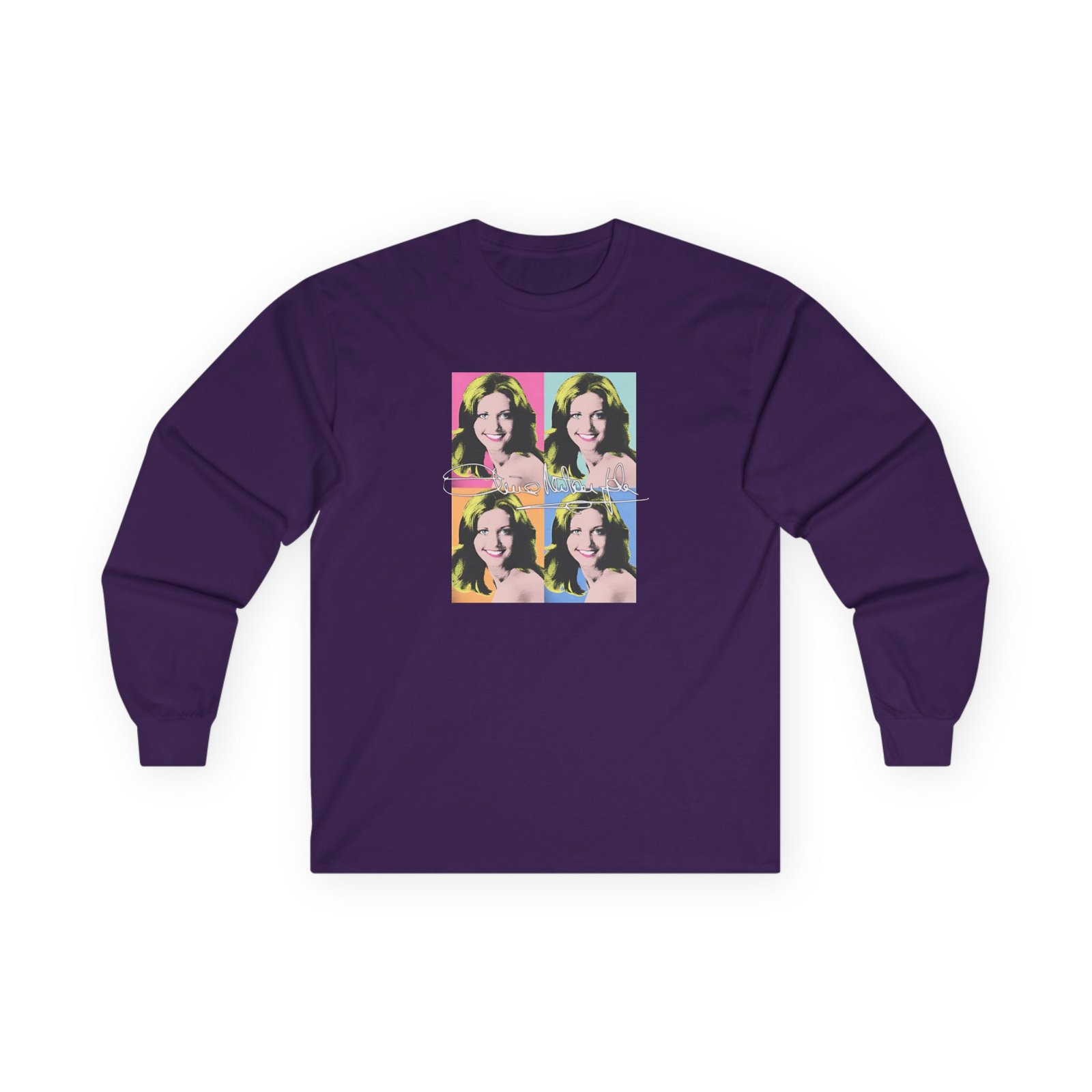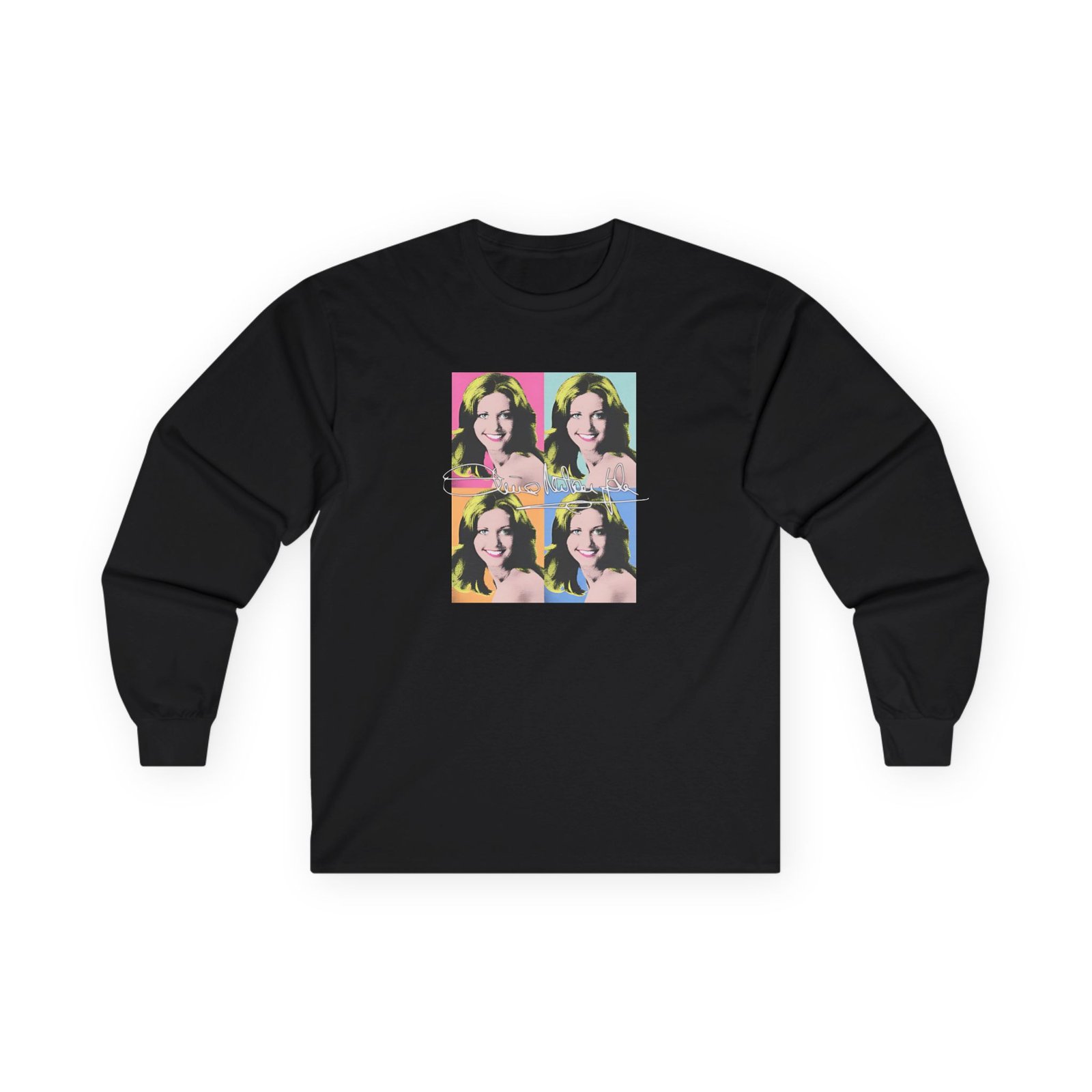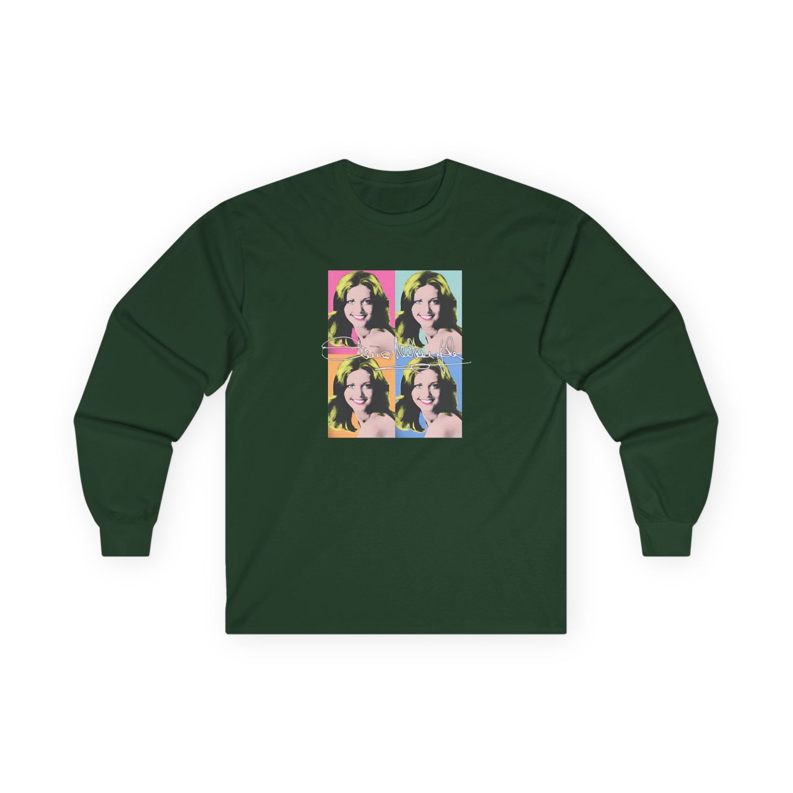 A bit more formal than a standard-issue t-shirt, the Olivia Newton John Pop Art ultra cotton long sleeve tee is a clear comfort winner. The sleeves also act as a nice frame. There are no side seams. The shoulders are taped for improved durability. This makes for a good fitting around the shoulders and neck. The cotton used for these shirts is environmentally friendly.