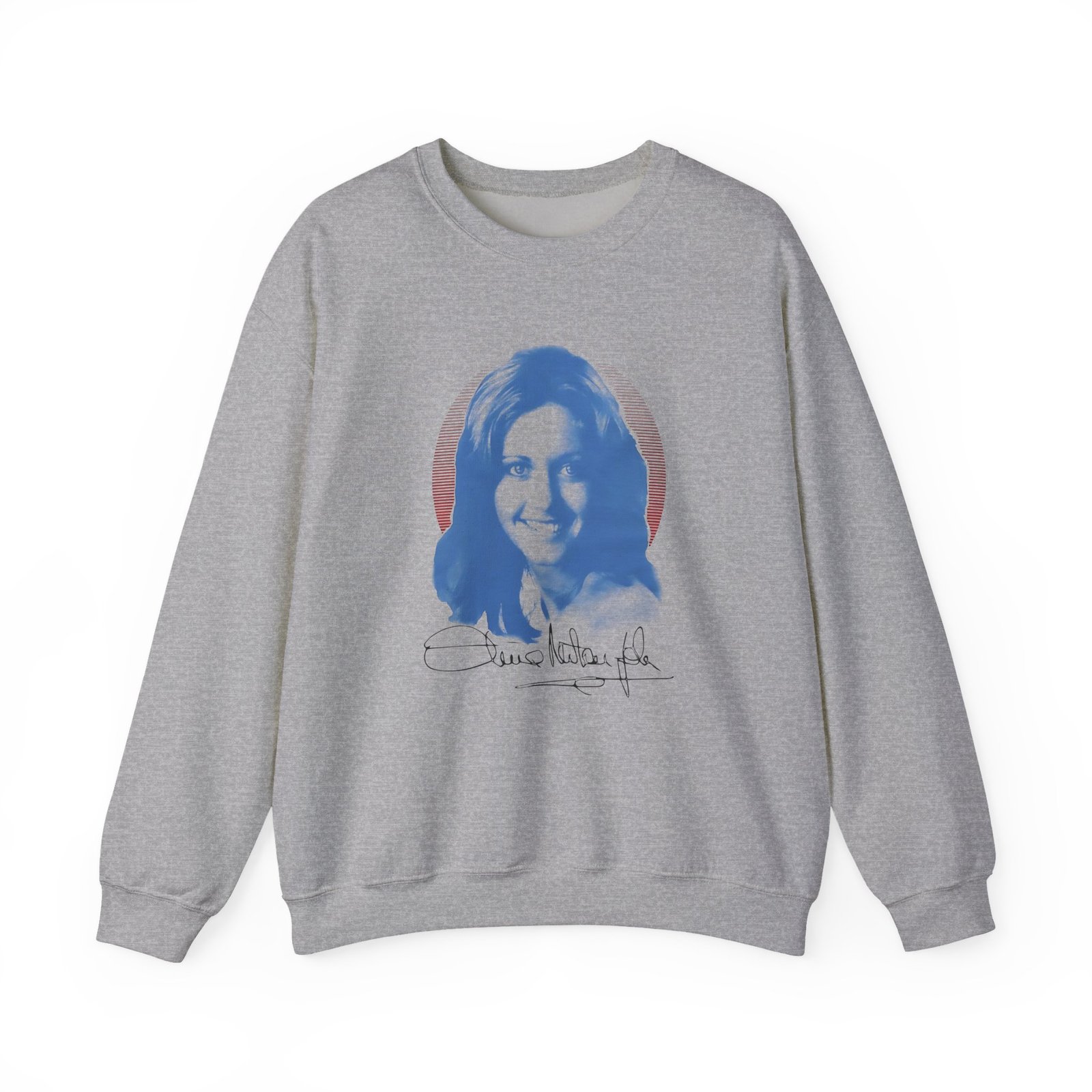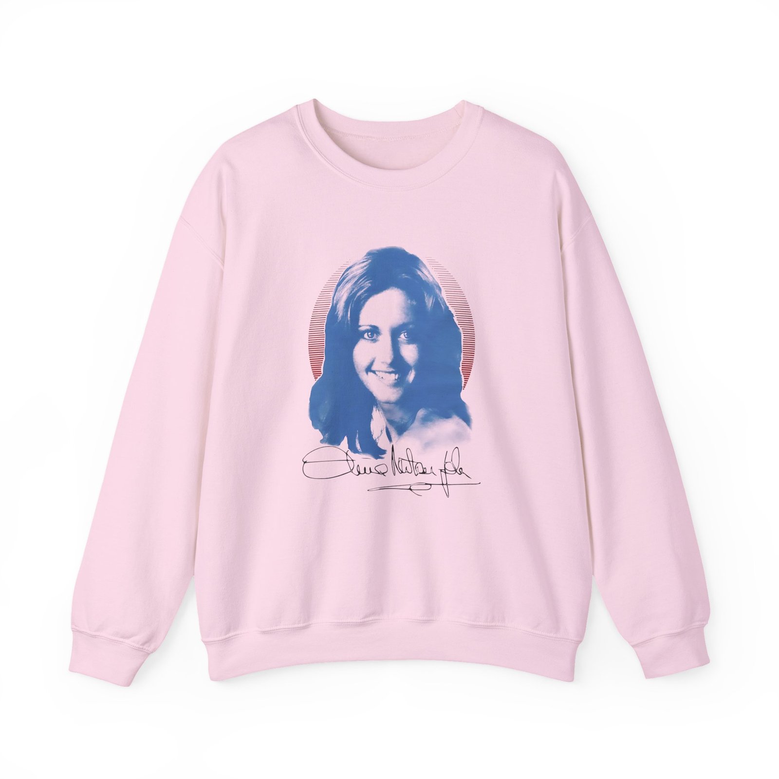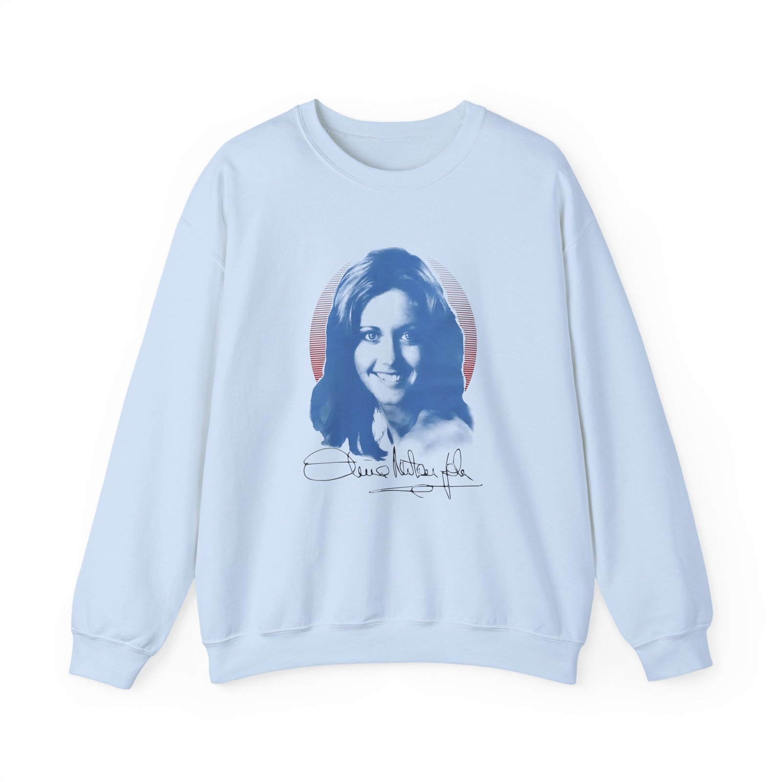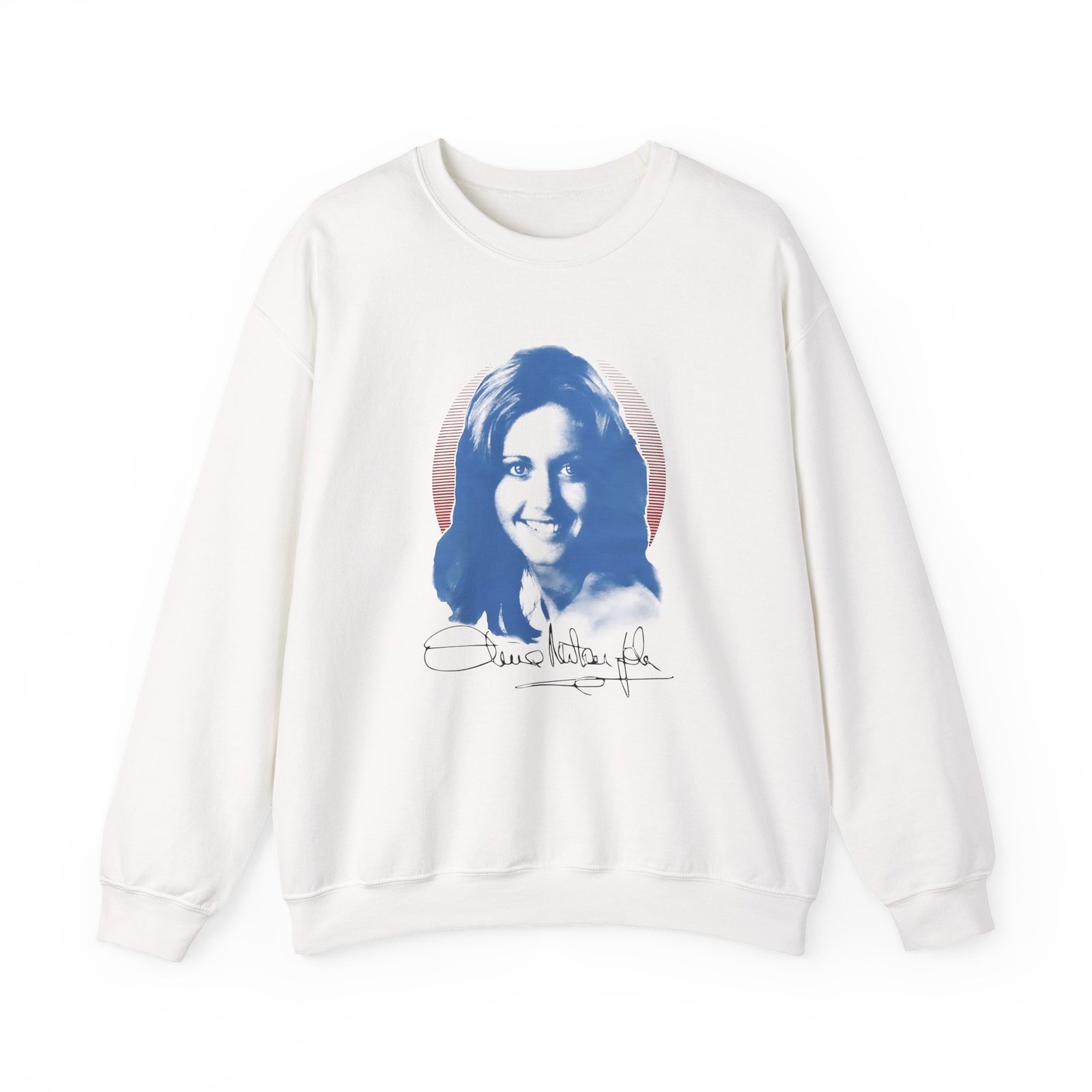 Ideal for any situation, a Olivia Newton John Smiles & Signs unisex heavy blend crewneck sweatshirt is pure comfort. These garments are made from polyester and cotton. This combination helps designs come out looking fresh and beautiful. The collar is ribbed knit, so it retains its shape even after washing. There are no itchy side seams on these sweaters.