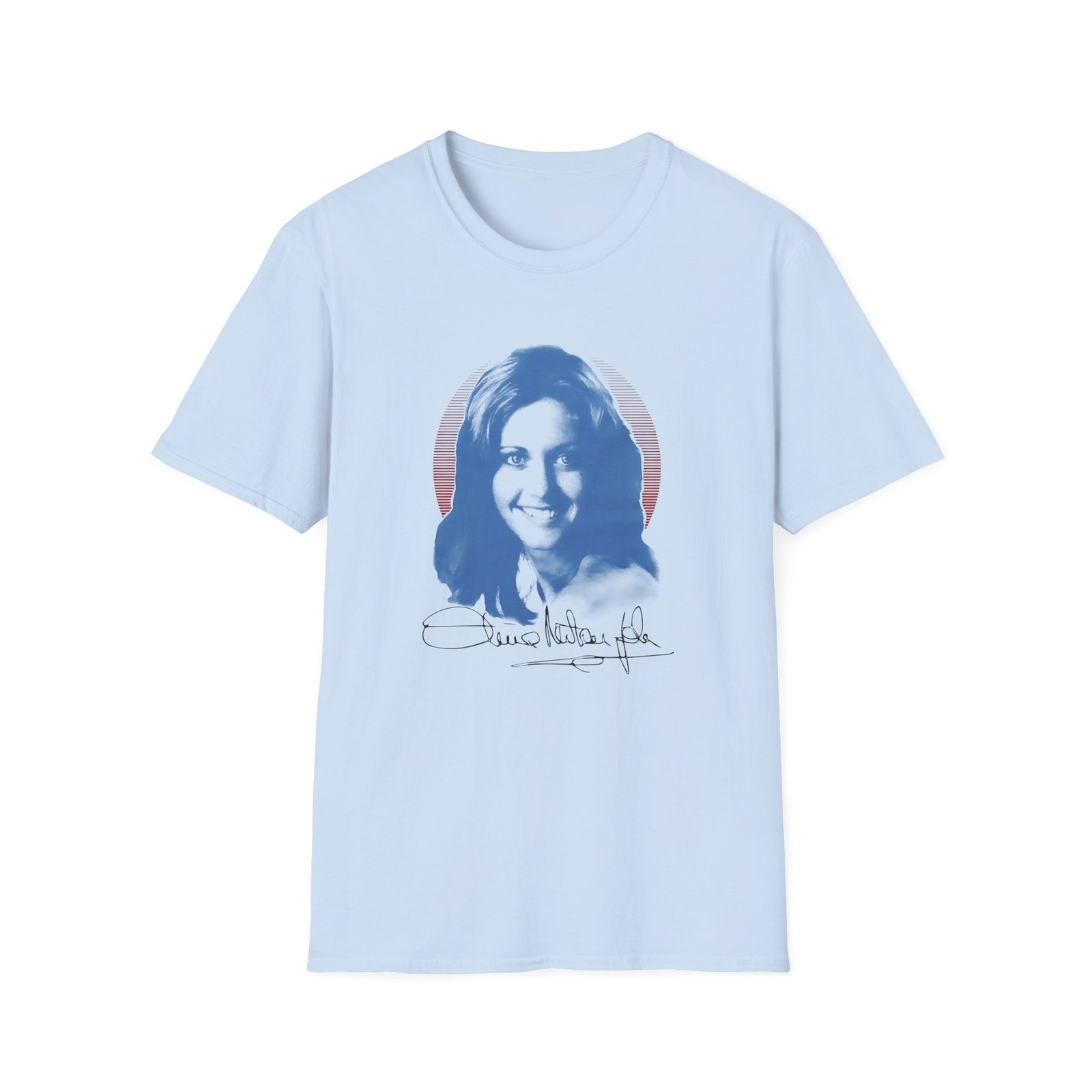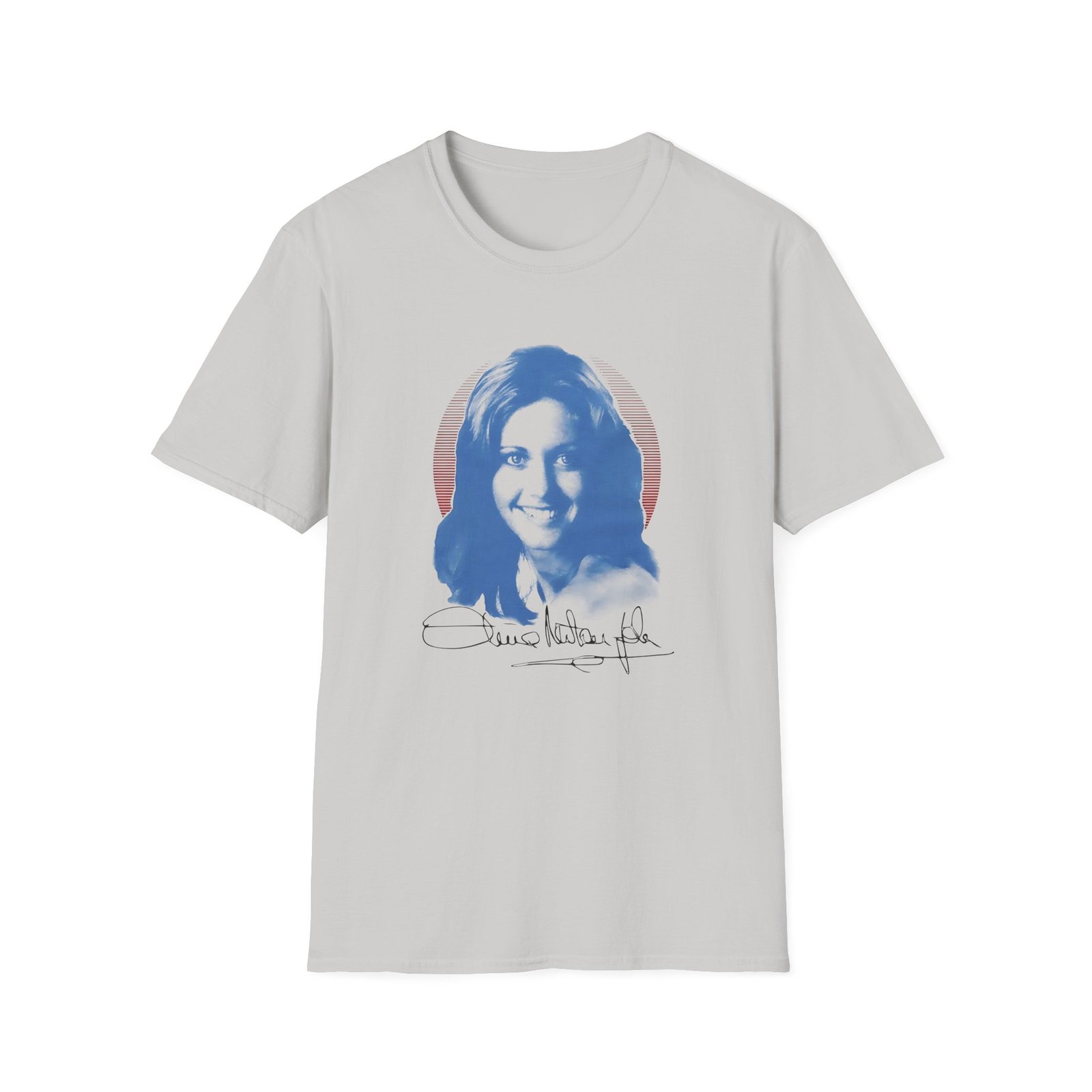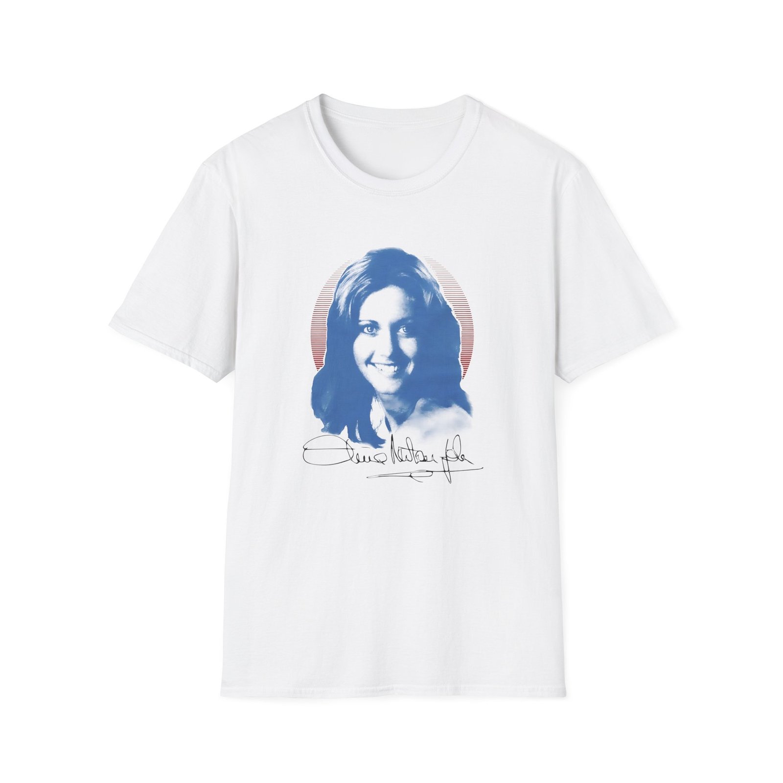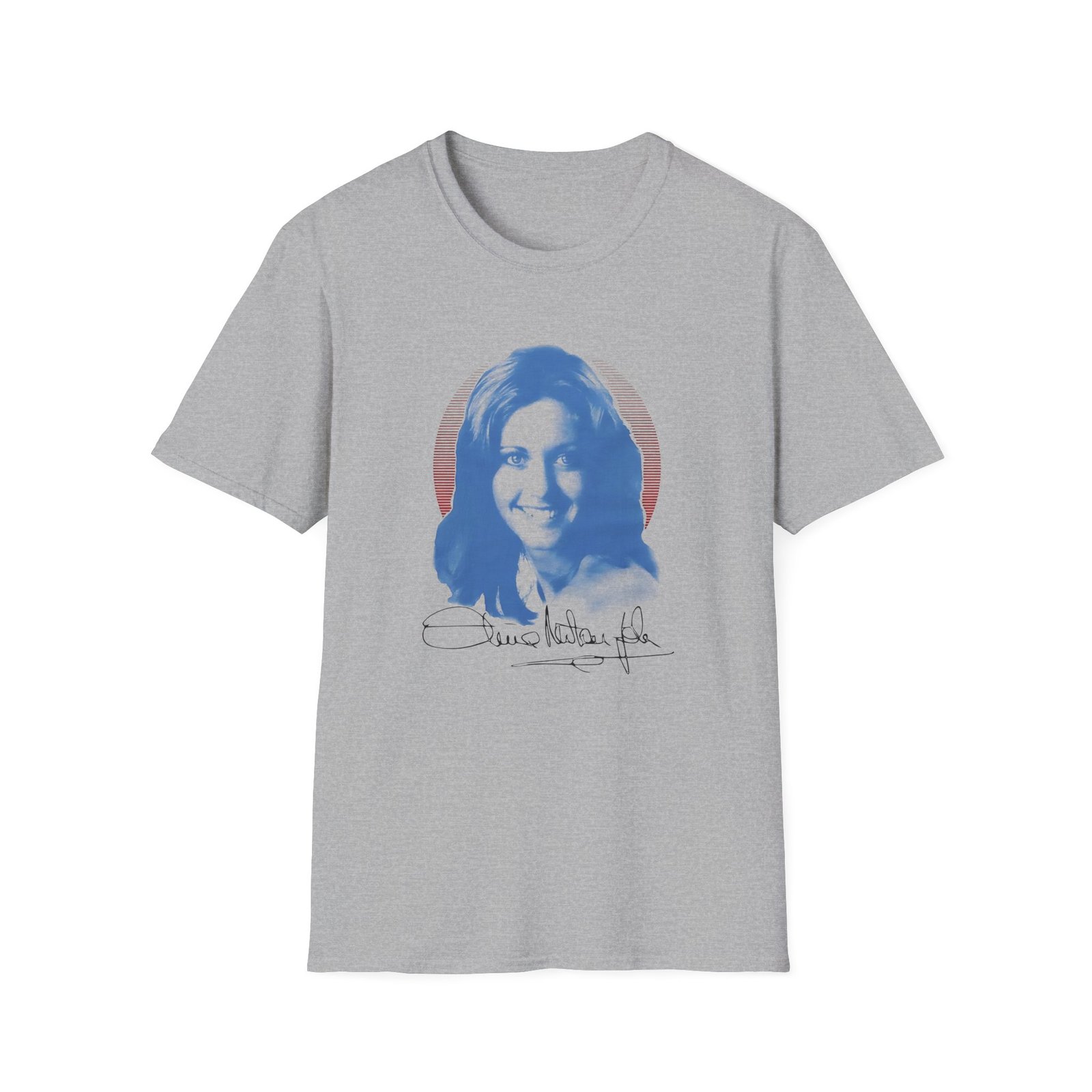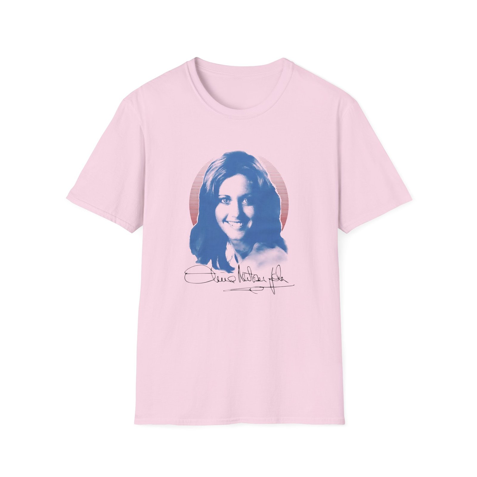 The Olivia Newton John Smiles & Signs unisex soft-style t-shirt puts a new spin on casual comfort. Made from very soft materials, this tee is 100% cotton for solid colors. Heather colors and sports grey include polyester. The shoulders have twill tape for improved durability. There are no side seams. The collar is made with ribbed knitting to prevent curling damage.