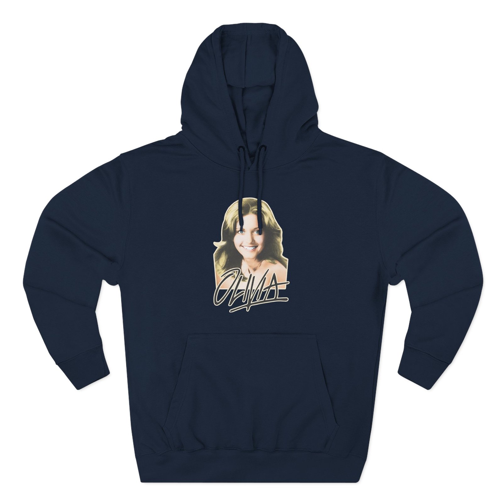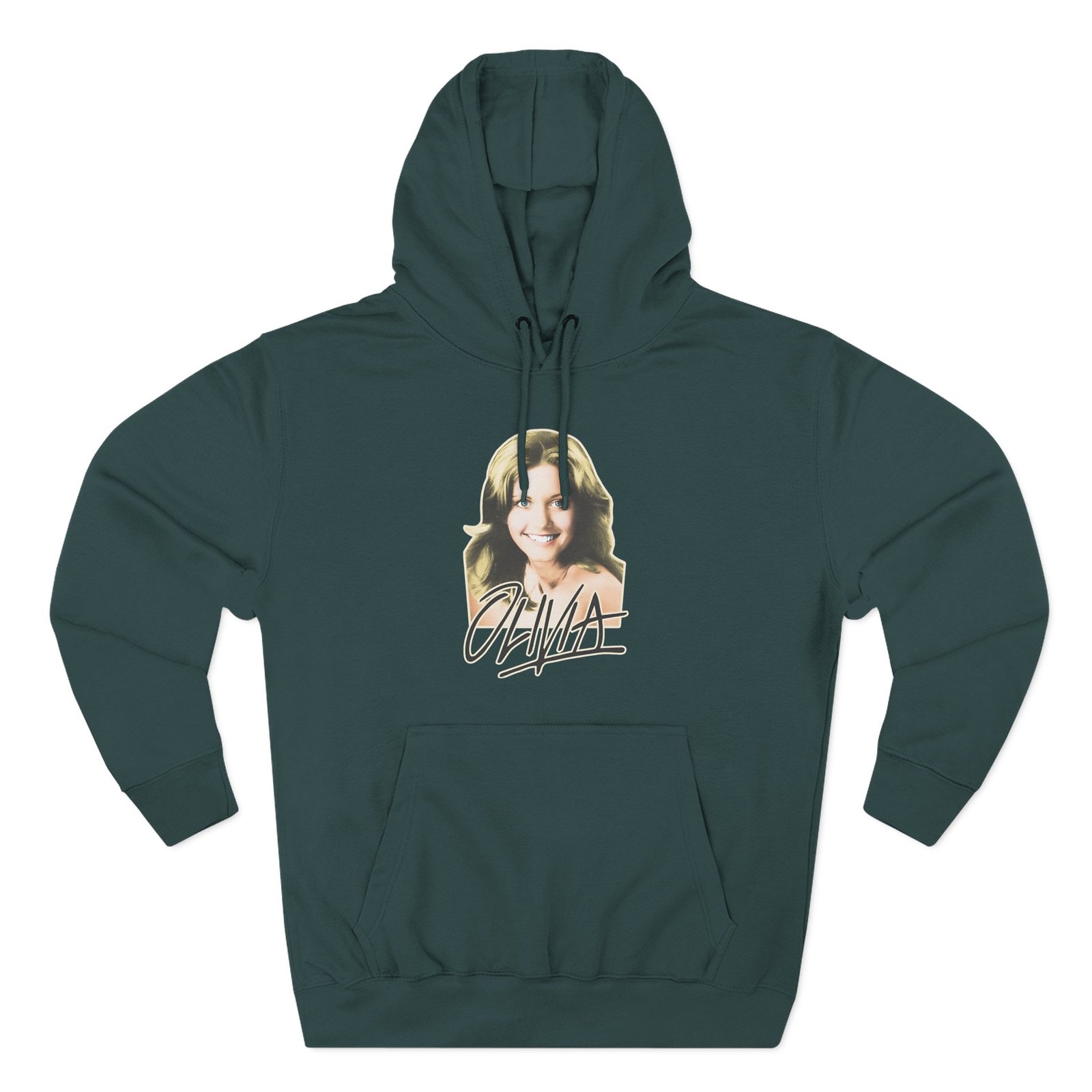 Beat the cold with this Olivia Newton John premium pullover hoodie that’s just the right layer of warm and cozy. Made with three-panel fleece lining, this pullover is double stitched for durability and roomy. Pick one in your favorite color to match your style.