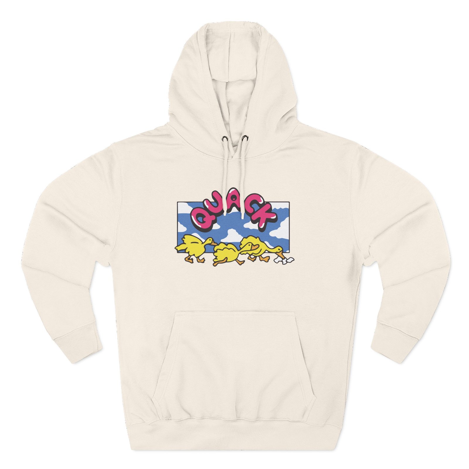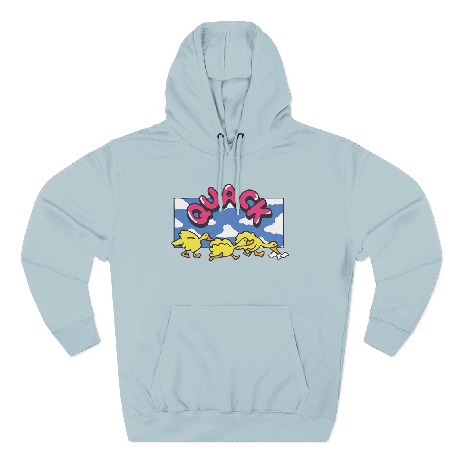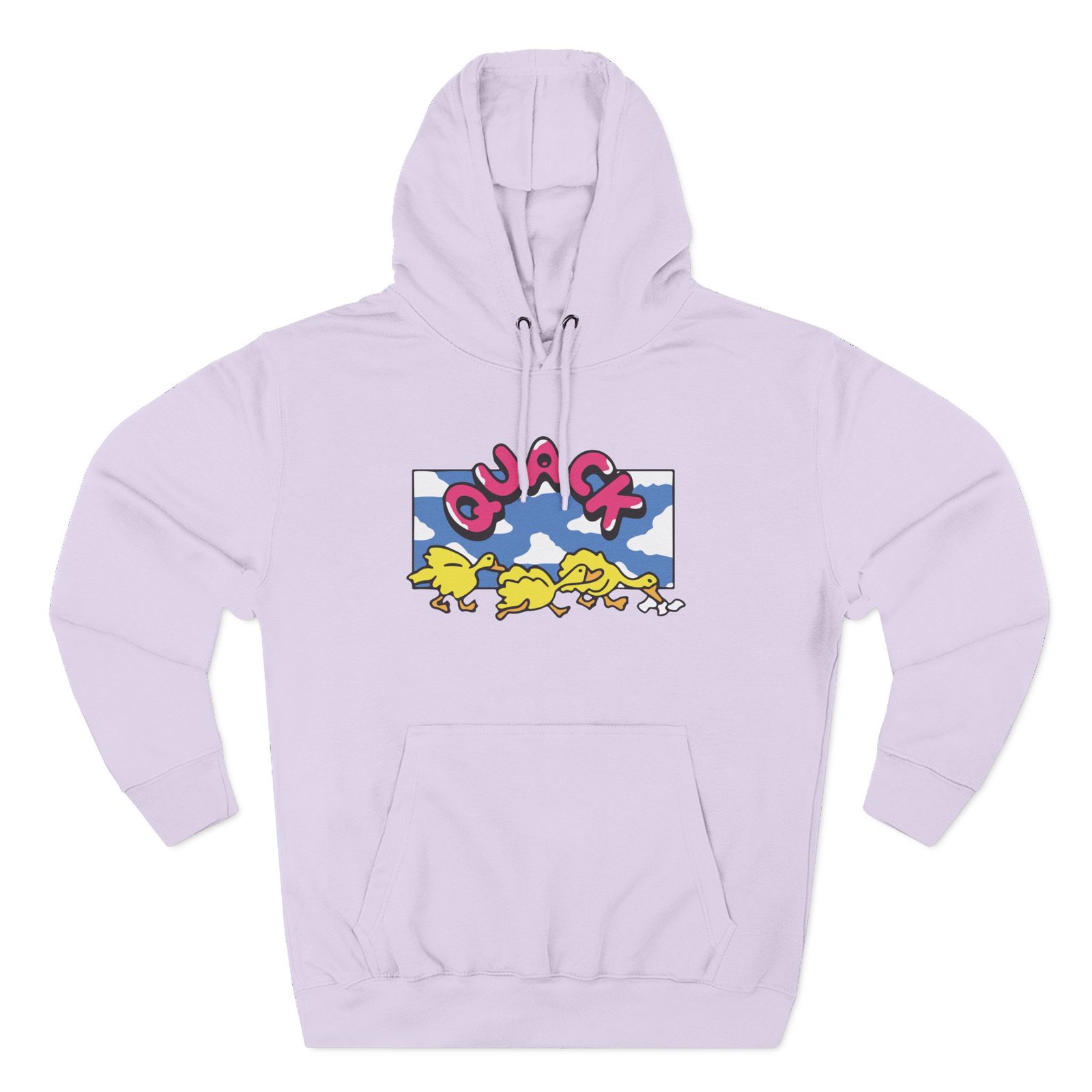 Beat the cold with this Quackity premium pullover hoodie that’s just the right layer of warm and cozy. Made with three-panel fleece lining, this pullover is double stitched for durability and roomy. Pick one in your favorite color to match your style.