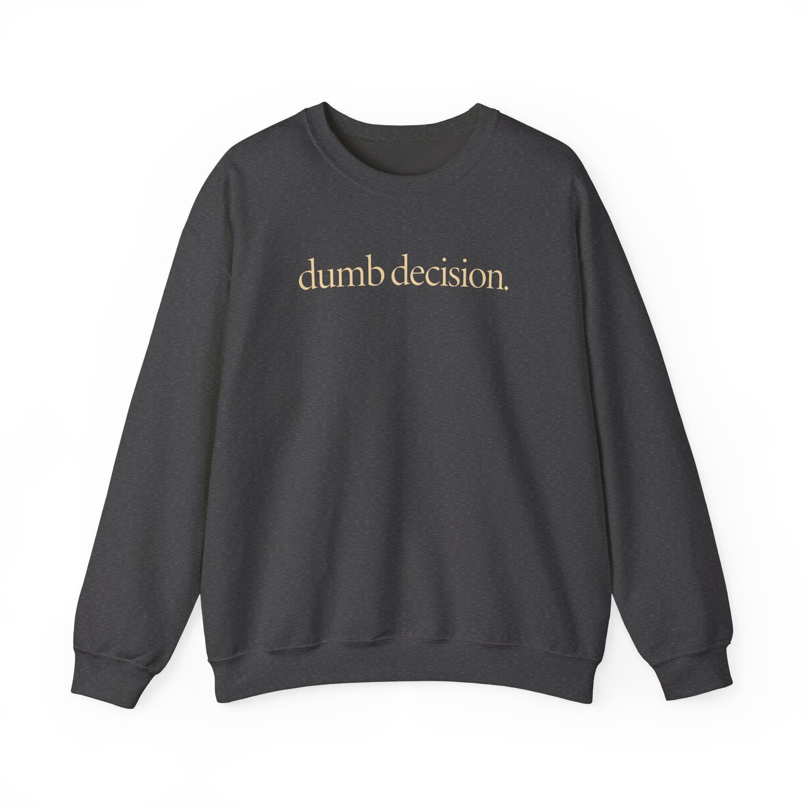 Ideal for any situation, a Raye Dumb Decision unisex heavy blend crewneck sweatshirt is pure comfort. These garments are made from polyester and cotton. This combination helps designs come out looking fresh and beautiful. The collar is ribbed knit, so it retains its shape even after washing. There are no itchy side seams on these sweaters.