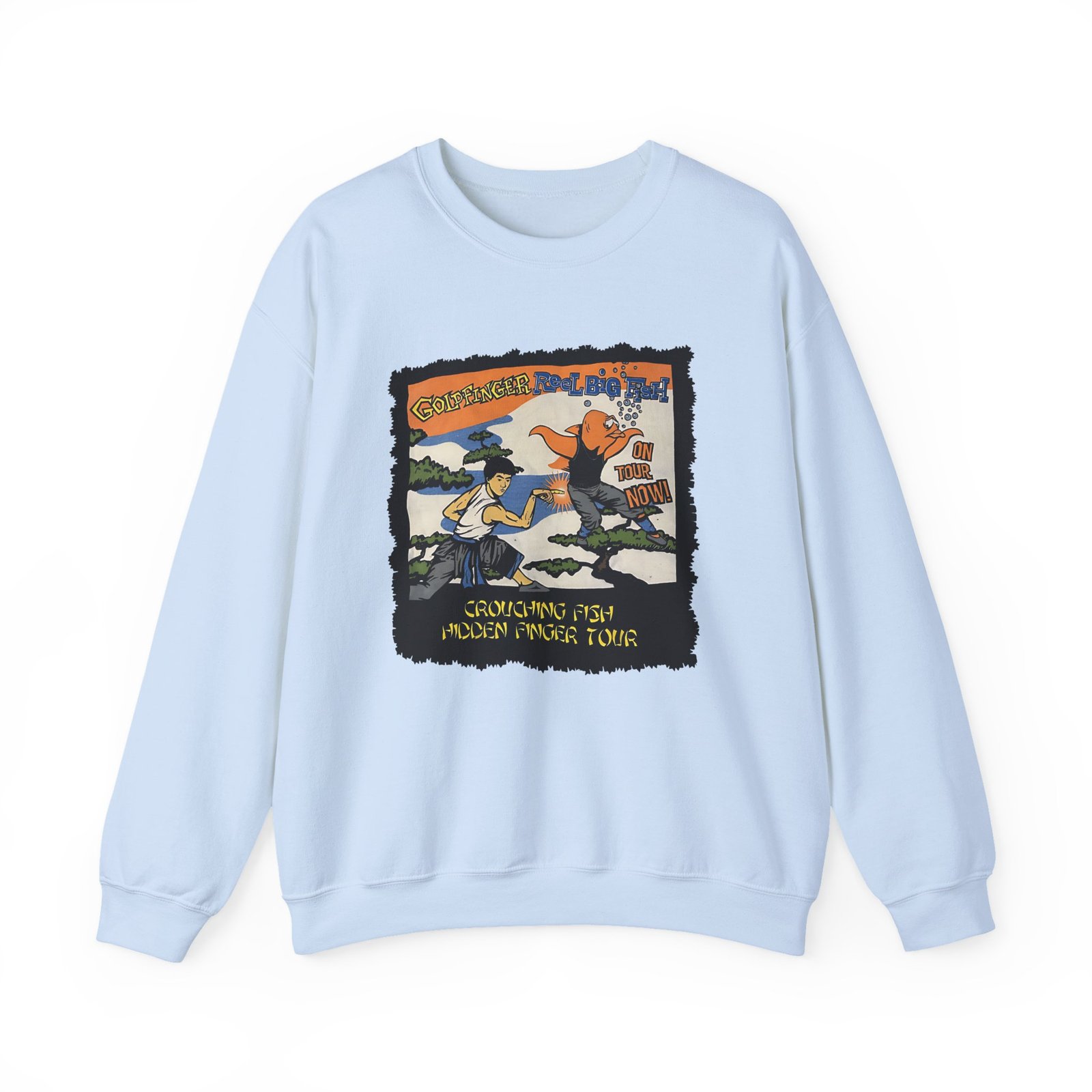 Ideal for any situation, a Reel Big Fish Band Tour unisex heavy blend crewneck sweatshirt is pure comfort. These garments are made from polyester and cotton. This combination helps designs come out looking fresh and beautiful. The collar is ribbed knit, so it retains its shape even after washing. There are no itchy side seams on these sweaters.