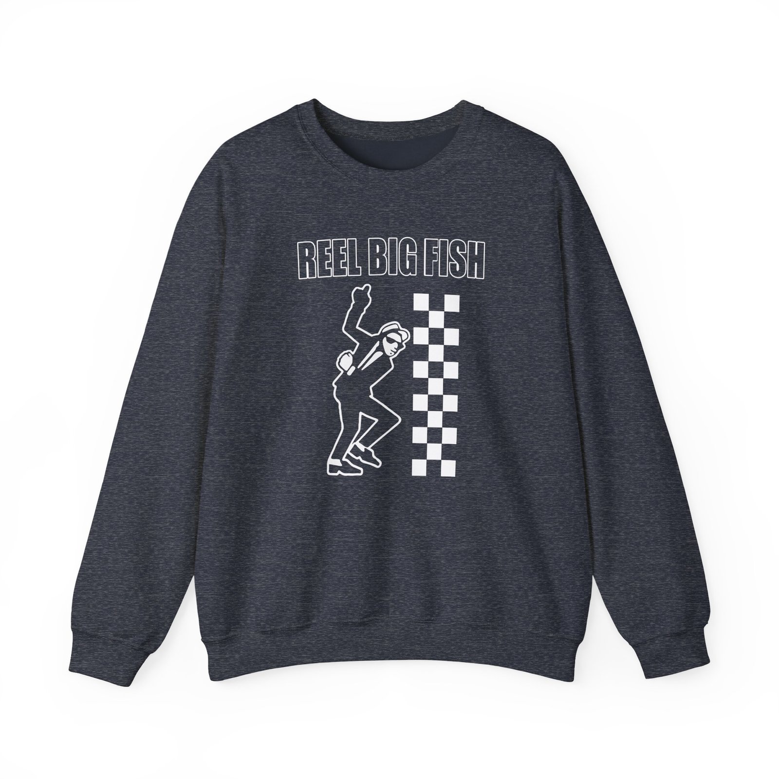 Ideal for any situation, a Reel Big Fish unisex heavy blend crewneck sweatshirt is pure comfort. These garments are made from polyester and cotton. This combination helps designs come out looking fresh and beautiful. The collar is ribbed knit, so it retains its shape even after washing. There are no itchy side seams on these sweaters.