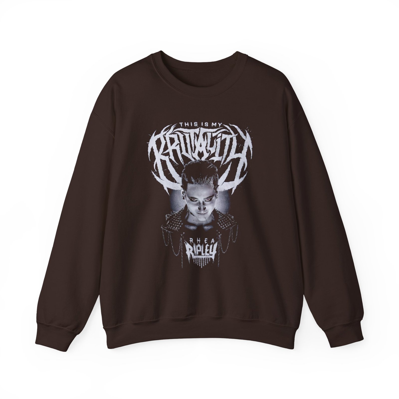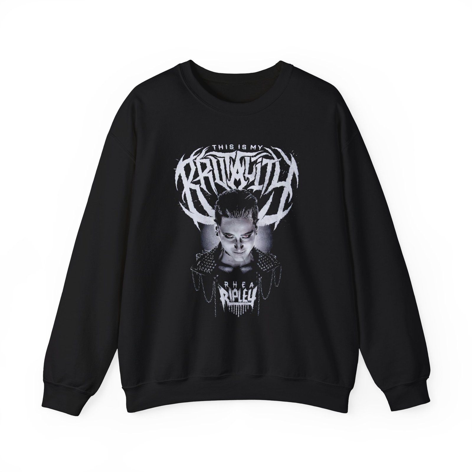 Ideal for any situation, a Rhea Ripley This Is My Brutality unisex heavy blend crewneck sweatshirt is pure comfort. These garments are made from polyester and cotton. This combination helps designs come out looking fresh and beautiful. The collar is ribbed knit, so it retains its shape even after washing. There are no itchy side seams on these sweaters.
