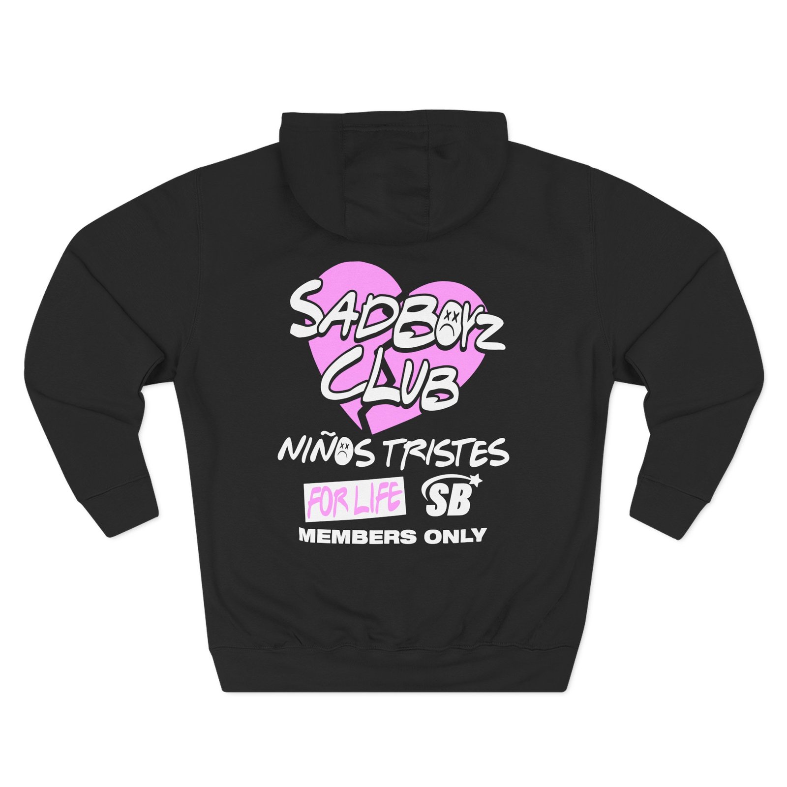 Beat the cold with this Sad Boyz by Junior H Club premium pullover hoodie that’s just the right layer of warm and cozy. Made with three-panel fleece lining, this pullover is double stitched for durability and roomy. Pick one in your favorite color to match your style.