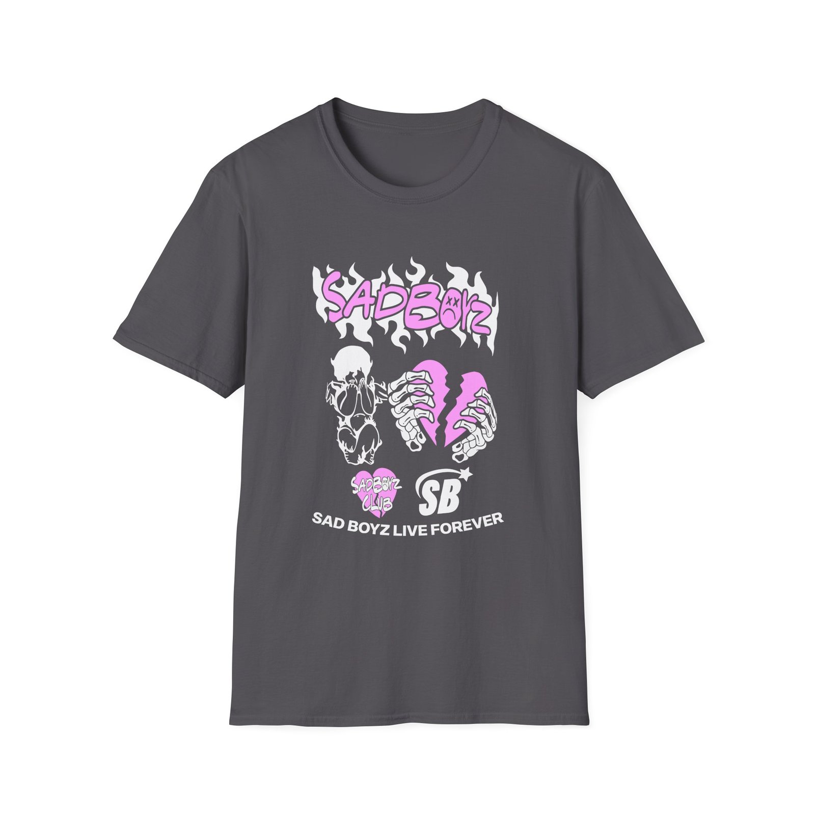 The Sad Boyz by Junior H Club unisex soft-style t-shirt puts a new spin on casual comfort. Made from very soft materials, this tee is 100% cotton for solid colors. Heather colors and sports grey include polyester. The shoulders have twill tape for improved durability. There are no side seams. The collar is made with ribbed knitting to prevent curling damage.