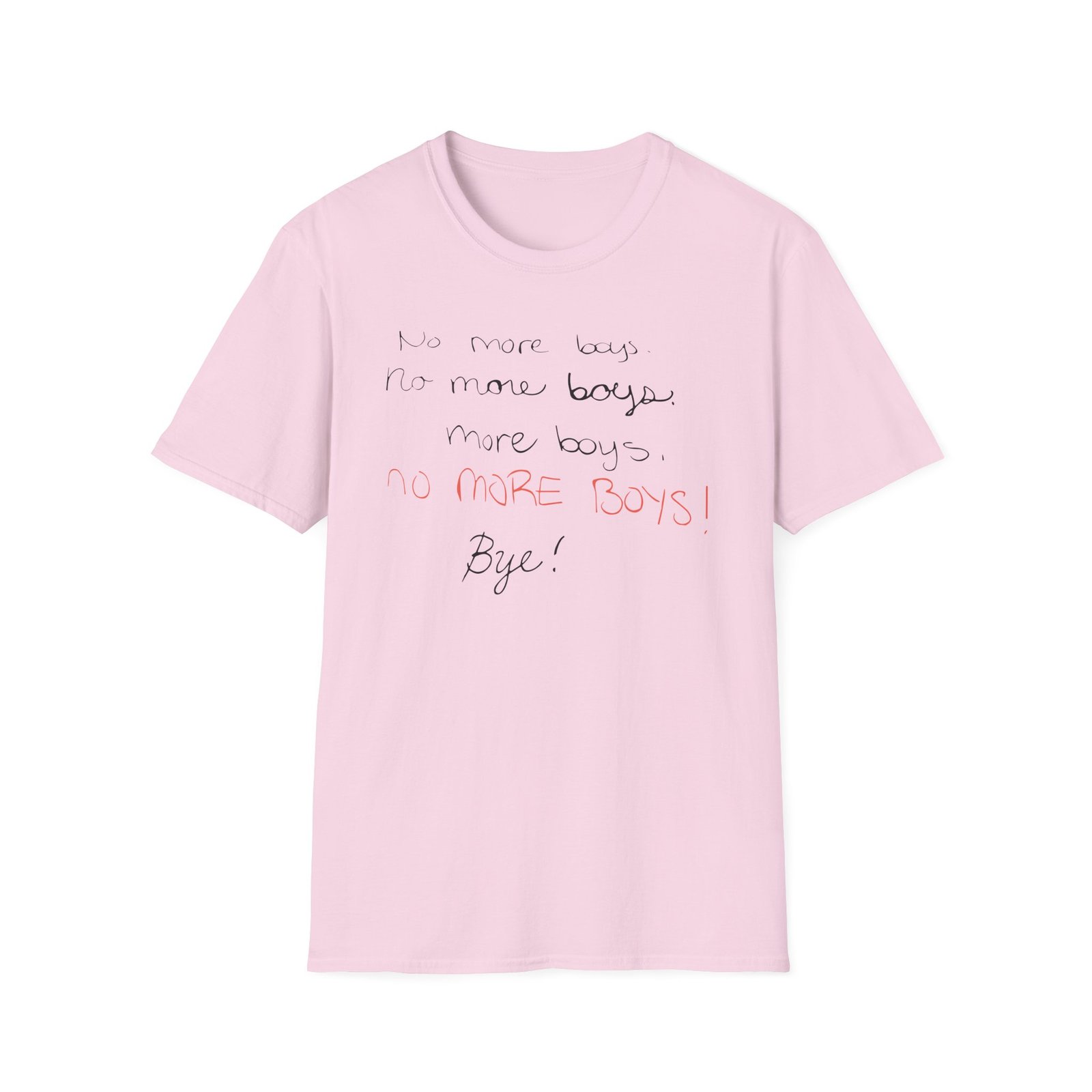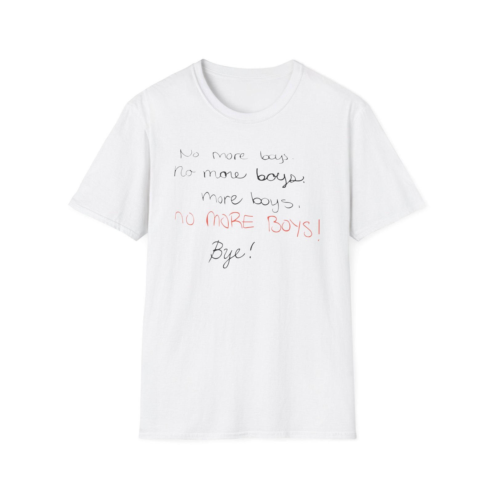 The Smosh No More Boys unisex soft-style t-shirt puts a new spin on casual comfort. Made from very soft materials, this tee is 100% cotton for solid colors. Heather colors and sports grey include polyester. The shoulders have twill tape for improved durability. There are no side seams. The collar is made with ribbed knitting to prevent curling damage.