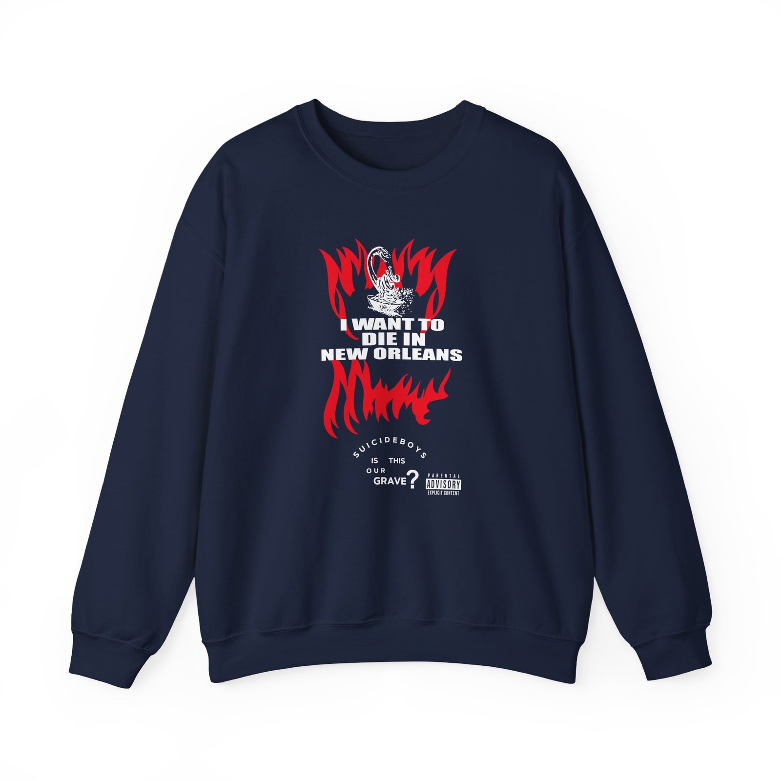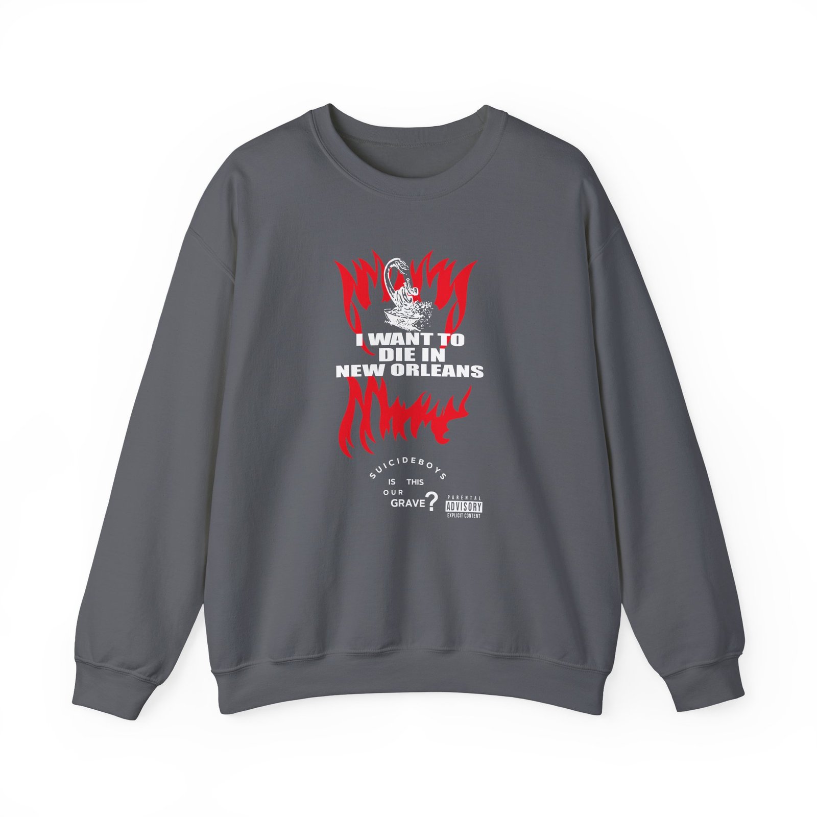 Ideal for any situation, a Suicide Boys I Want To Die in New Orleans unisex heavy blend crewneck sweatshirt is pure comfort. These garments are made from polyester and cotton. This combination helps designs come out looking fresh and beautiful. The collar is ribbed knit, so it retains its shape even after washing. There are no itchy side seams on these sweaters.