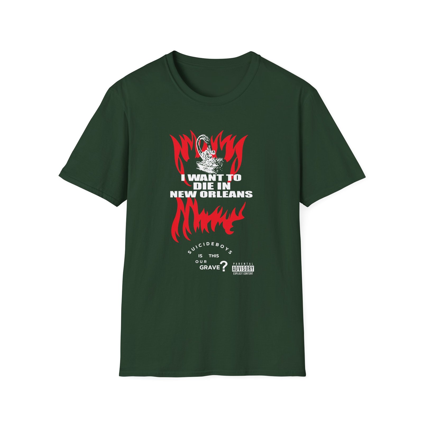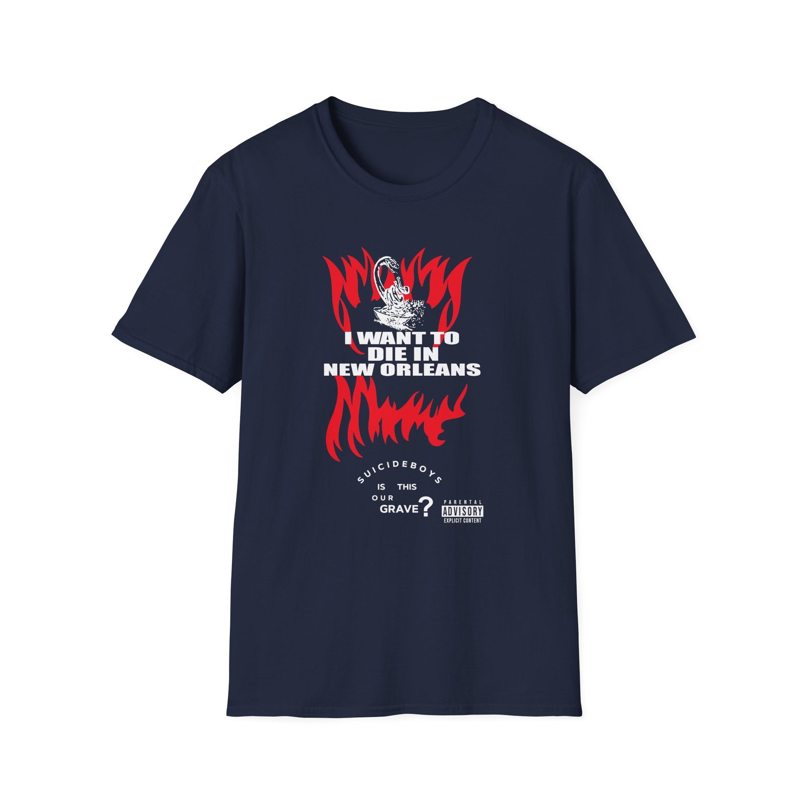 The Suicide Boys I Want To Die in New Orleans unisex soft-style t-shirt puts a new spin on casual comfort. Made from very soft materials, this tee is 100% cotton for solid colors. Heather colors and sports grey include polyester. The shoulders have twill tape for improved durability. There are no side seams. The collar is made with ribbed knitting to prevent curling damage.