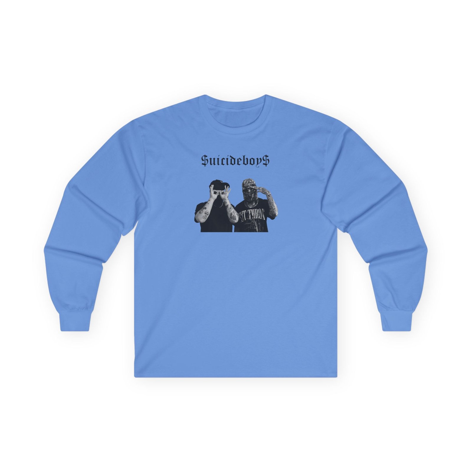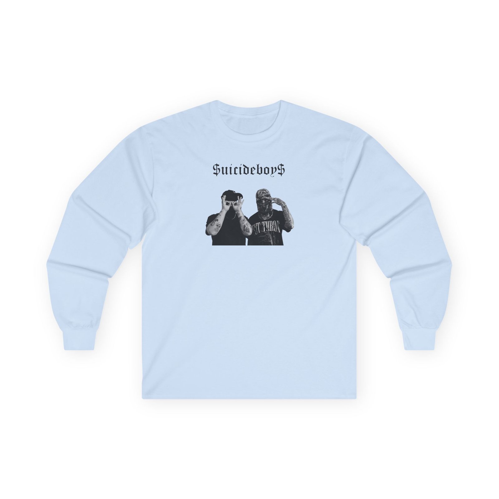 A bit more formal than a standard-issue t-shirt, the Suicide Boys Ruby & Scrim ultra cotton long sleeve tee is a clear comfort winner. The sleeves also act as a nice frame. There are no side seams. The shoulders are taped for improved durability. This makes for a good fitting around the shoulders and neck. The cotton used for these shirts is environmentally friendly.