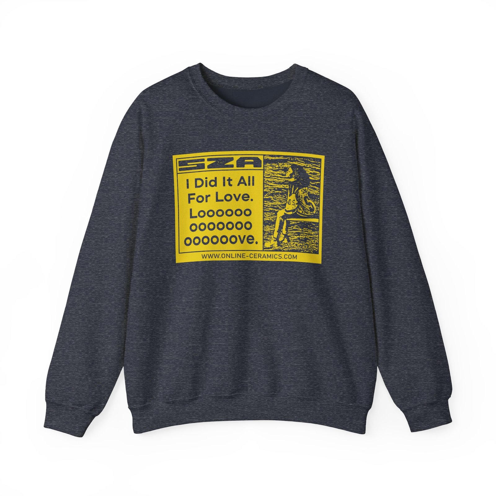 Ideal for any situation, a Sza Sos I Did It All for Love North America Tour unisex heavy blend crewneck sweatshirt is pure comfort. These garments are made from polyester and cotton. This combination helps designs come out looking fresh and beautiful. The collar is ribbed knit, so it retains its shape even after washing. There are no itchy side seams on these sweaters.
