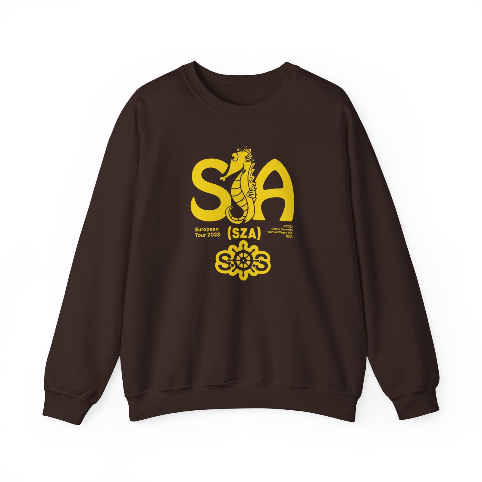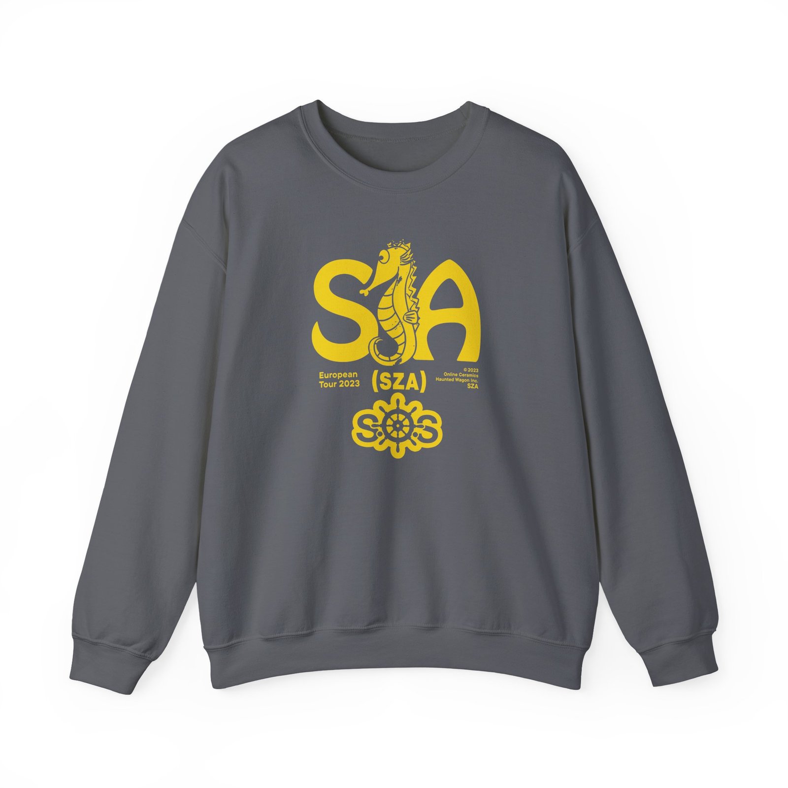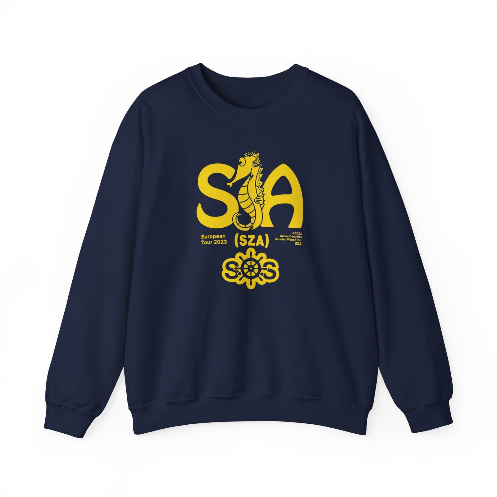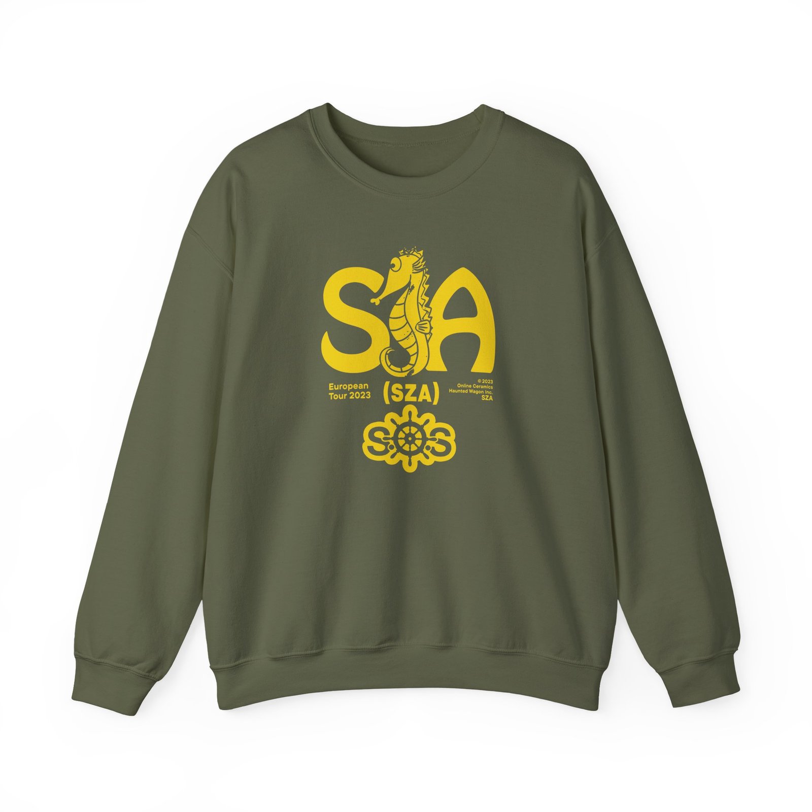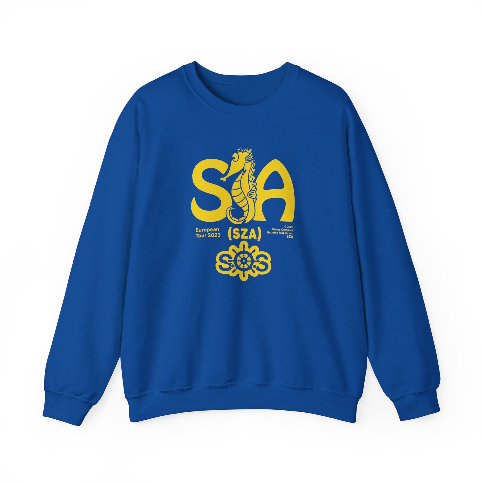 Ideal for any situation, a Sza Sos Seahouse Tour unisex heavy blend crewneck sweatshirt is pure comfort. These garments are made from polyester and cotton. This combination helps designs come out looking fresh and beautiful. The collar is ribbed knit, so it retains its shape even after washing. There are no itchy side seams on these sweaters.