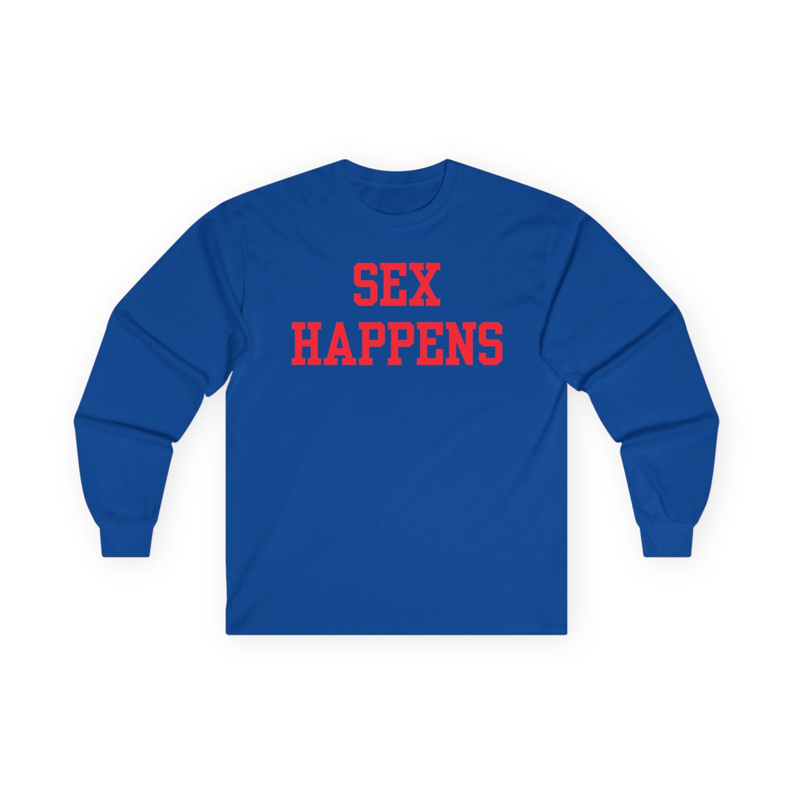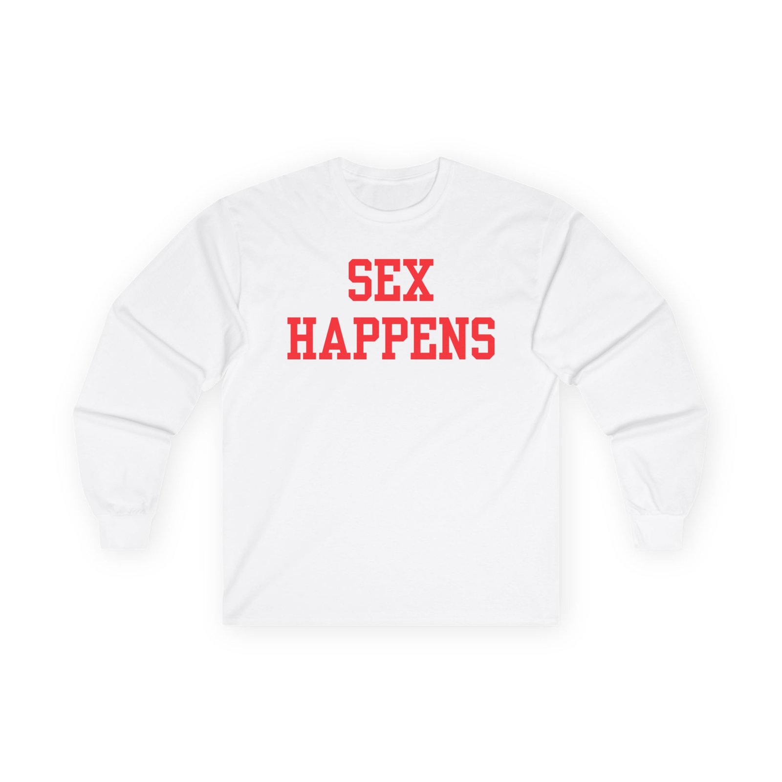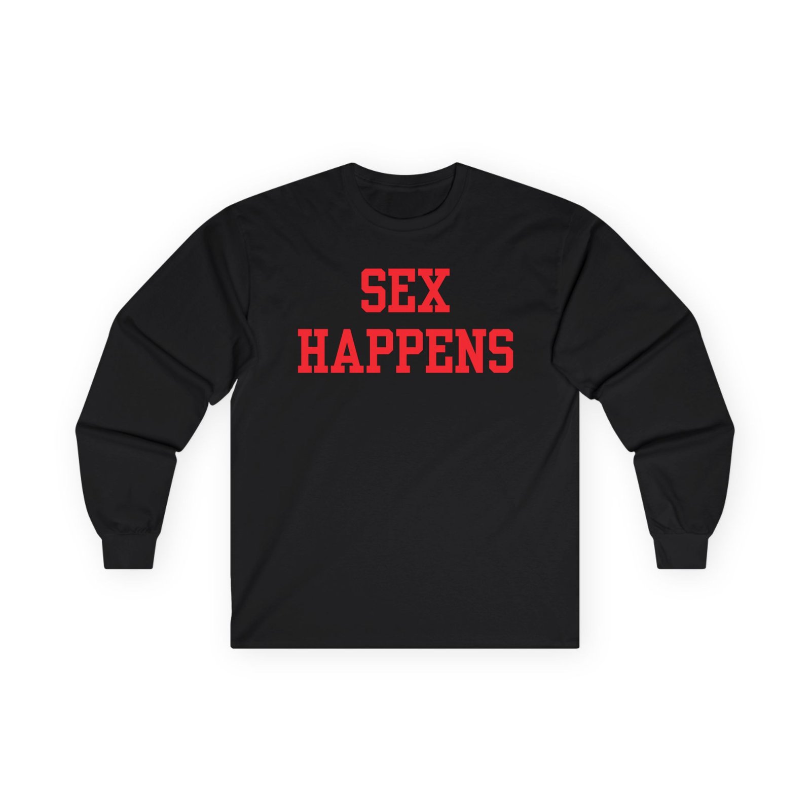 A bit more formal than a standard-issue t-shirt, the Tana Mongeau Sex Happens ultra cotton long sleeve tee is a clear comfort winner. The sleeves also act as a nice frame. There are no side seams. The shoulders are taped for improved durability. This makes for a good fitting around the shoulders and neck. The cotton used for these shirts is environmentally friendly.