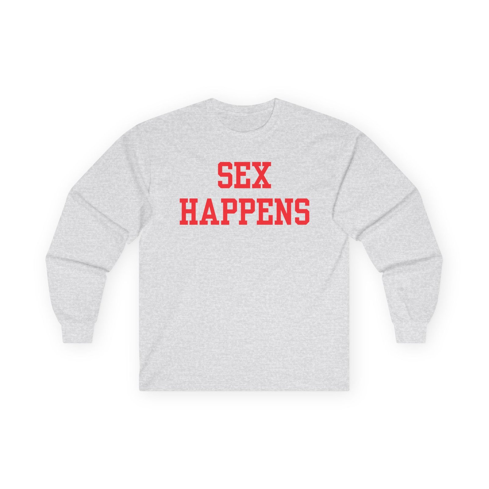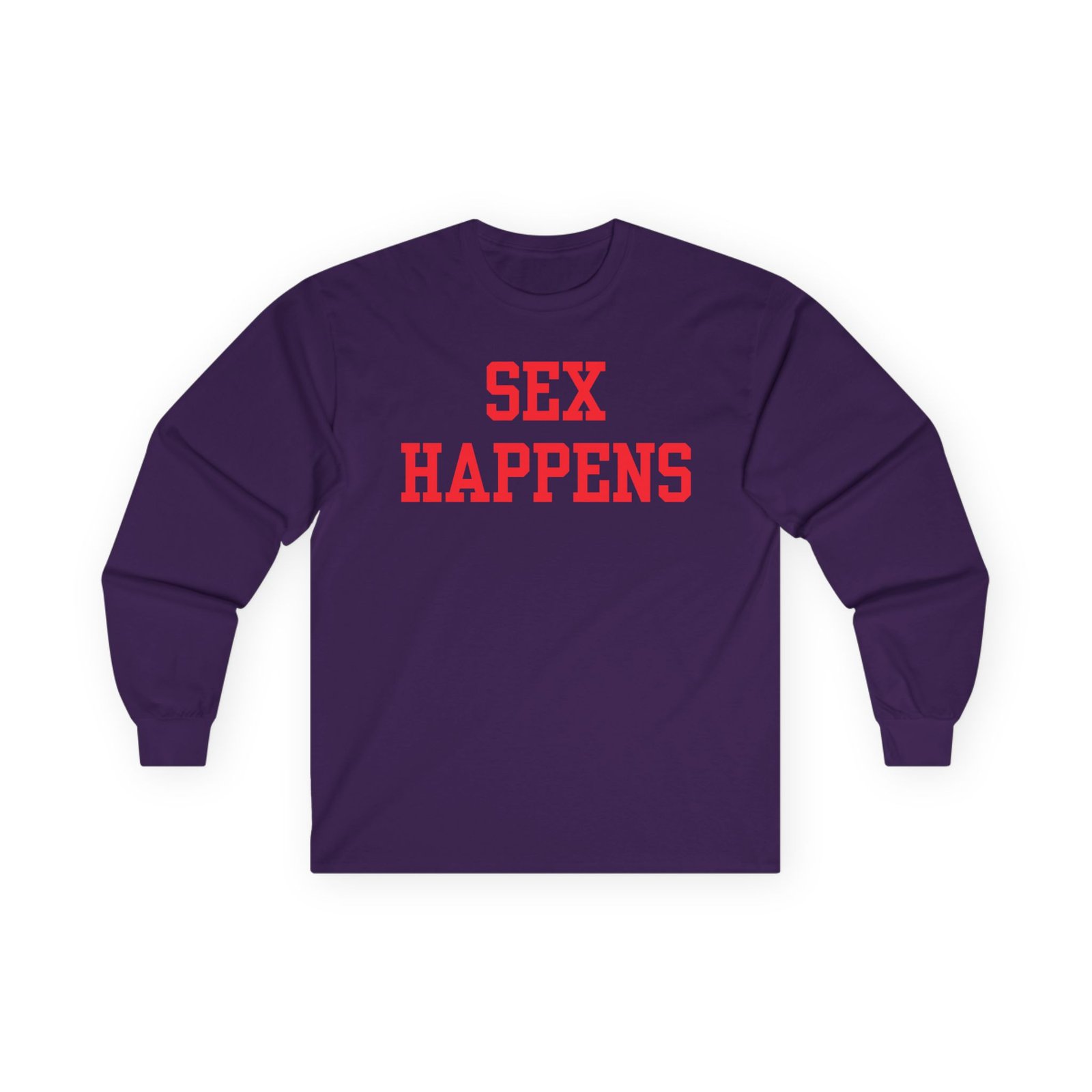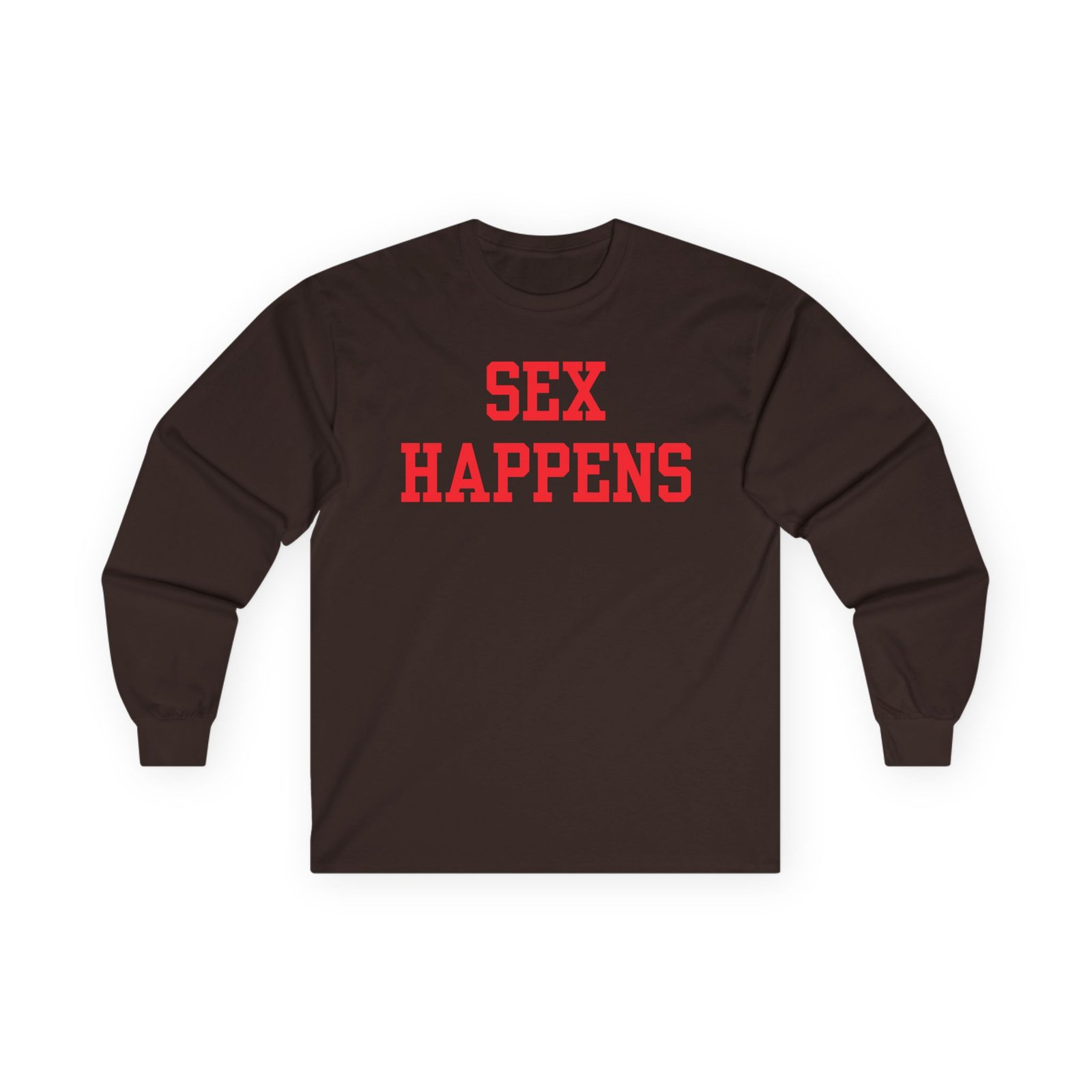 A bit more formal than a standard-issue t-shirt, the Tana Mongeau Sex Happens ultra cotton long sleeve tee is a clear comfort winner. The sleeves also act as a nice frame. There are no side seams. The shoulders are taped for improved durability. This makes for a good fitting around the shoulders and neck. The cotton used for these shirts is environmentally friendly.