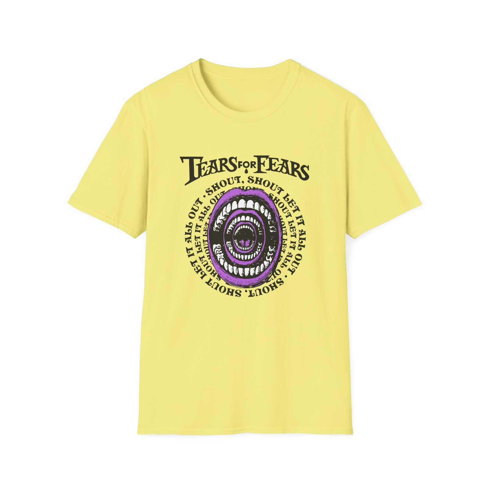 The Tears for Fears Shout Let It All Out unisex soft-style t-shirt puts a new spin on casual comfort. Made from very soft materials, this tee is 100% cotton for solid colors. Heather colors and sports grey include polyester. The shoulders have twill tape for improved durability. There are no side seams. The collar is made with ribbed knitting to prevent curling damage.