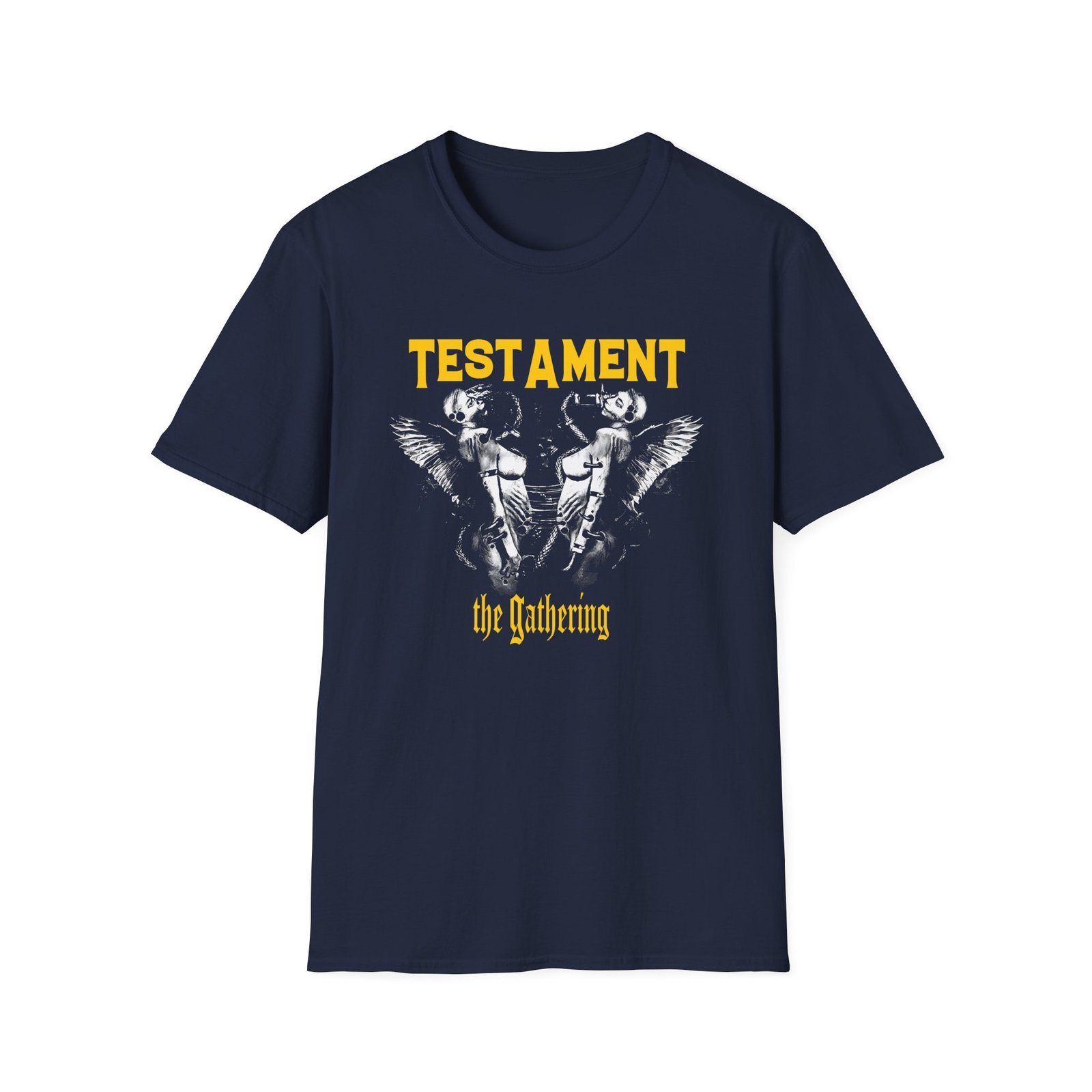 The Testament the Gathering unisex soft-style t-shirt puts a new spin on casual comfort. Made from very soft materials, this tee is 100% cotton for solid colors. Heather colors and sports grey include polyester. The shoulders have twill tape for improved durability. There are no side seams. The collar is made with ribbed knitting to prevent curling damage.