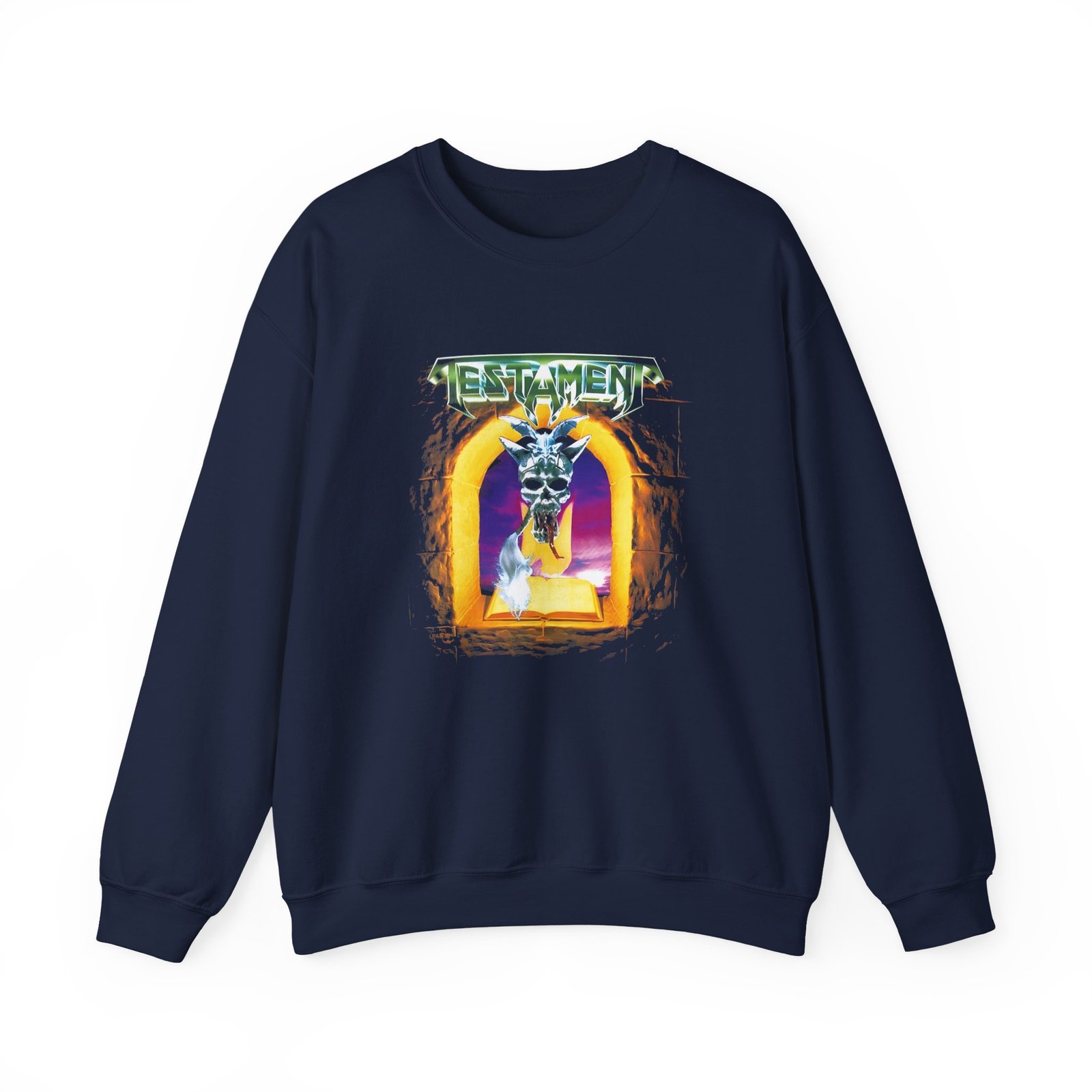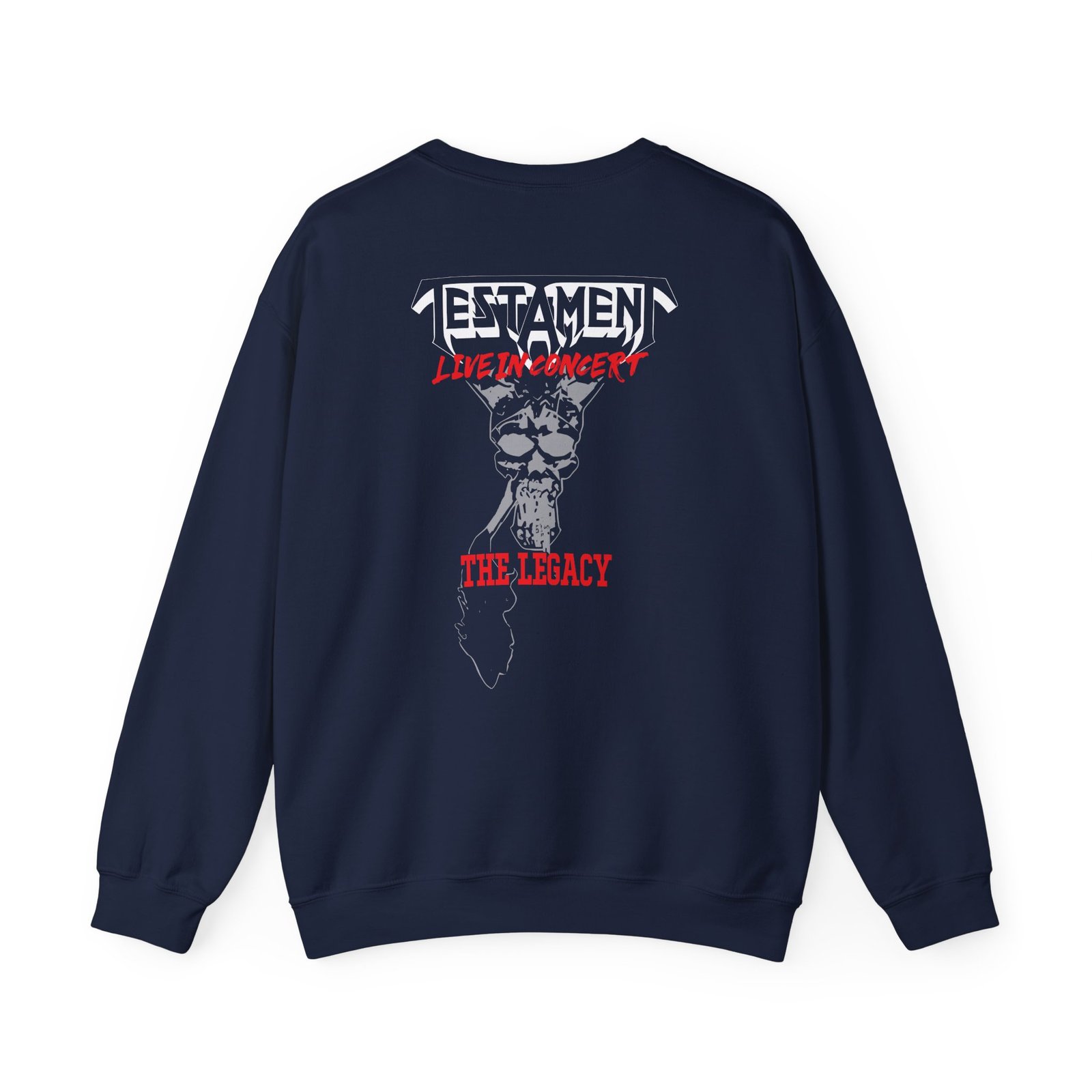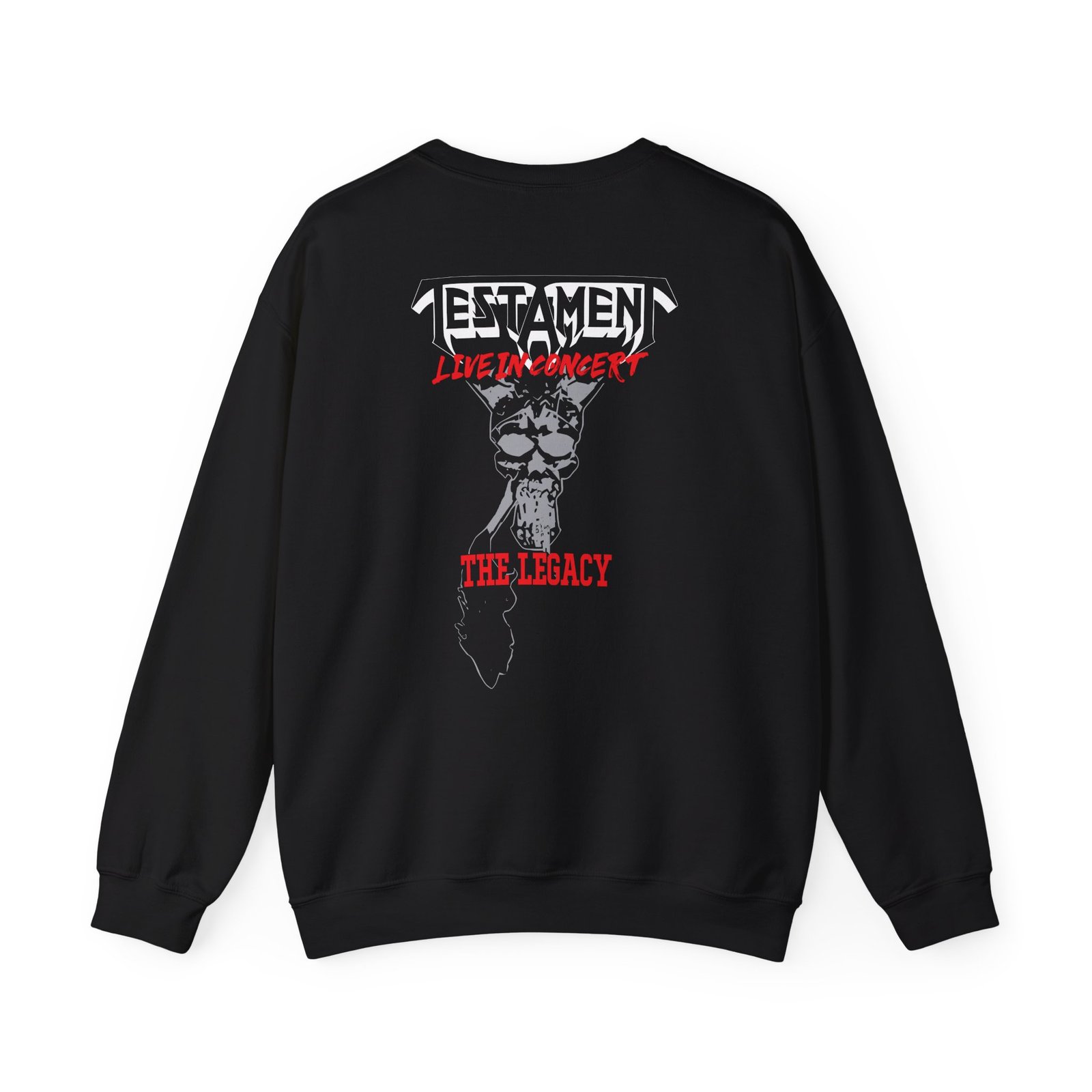 Ideal for any situation, a Testament the Legacy Live in Concert unisex heavy blend crewneck sweatshirt is pure comfort. These garments are made from polyester and cotton. This combination helps designs come out looking fresh and beautiful. The collar is ribbed knit, so it retains its shape even after washing. There are no itchy side seams on these sweaters.