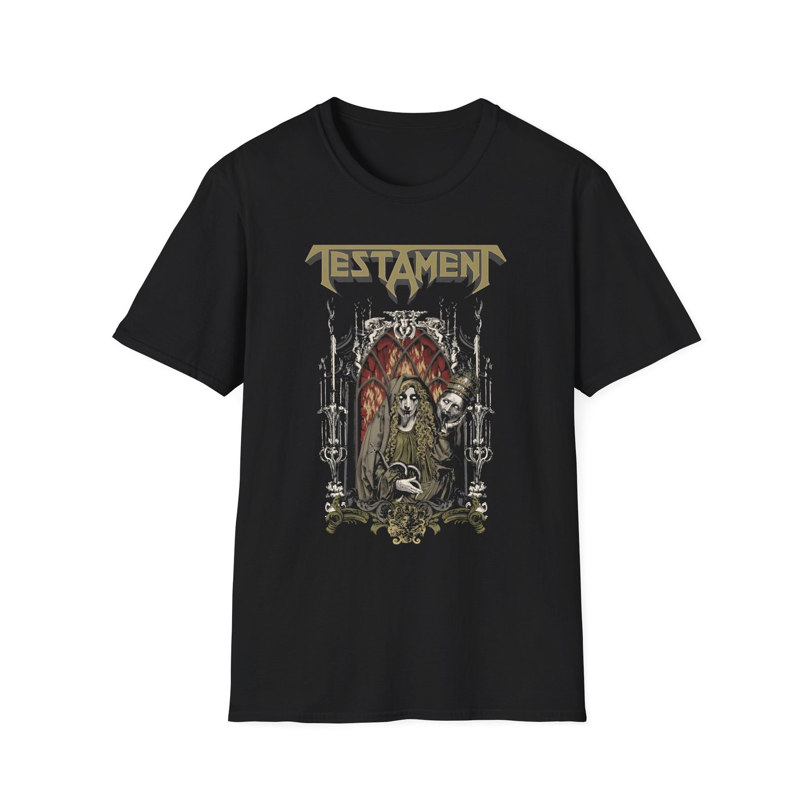 The Testament Witch unisex soft-style t-shirt puts a new spin on casual comfort. Made from very soft materials, this tee is 100% cotton for solid colors. Heather colors and sports grey include polyester. The shoulders have twill tape for improved durability. There are no side seams. The collar is made with ribbed knitting to prevent curling damage.