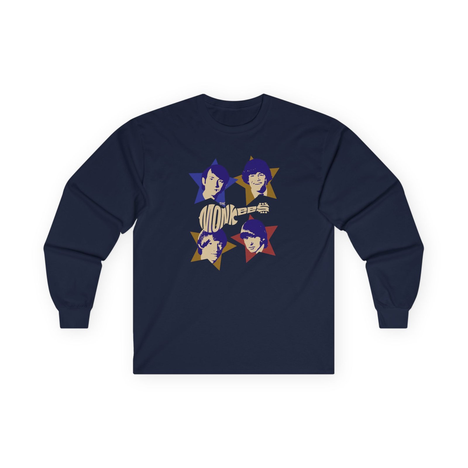 A bit more formal than a standard-issue t-shirt, The Monkees Stars ultra cotton long sleeve tee is a clear comfort winner. The sleeves also act as a nice frame. There are no side seams. The shoulders are taped for improved durability. This makes for a good fitting around the shoulders and neck. The cotton used for these shirts is environmentally friendly.