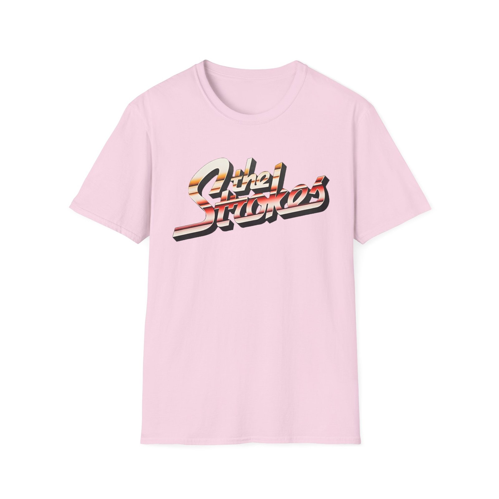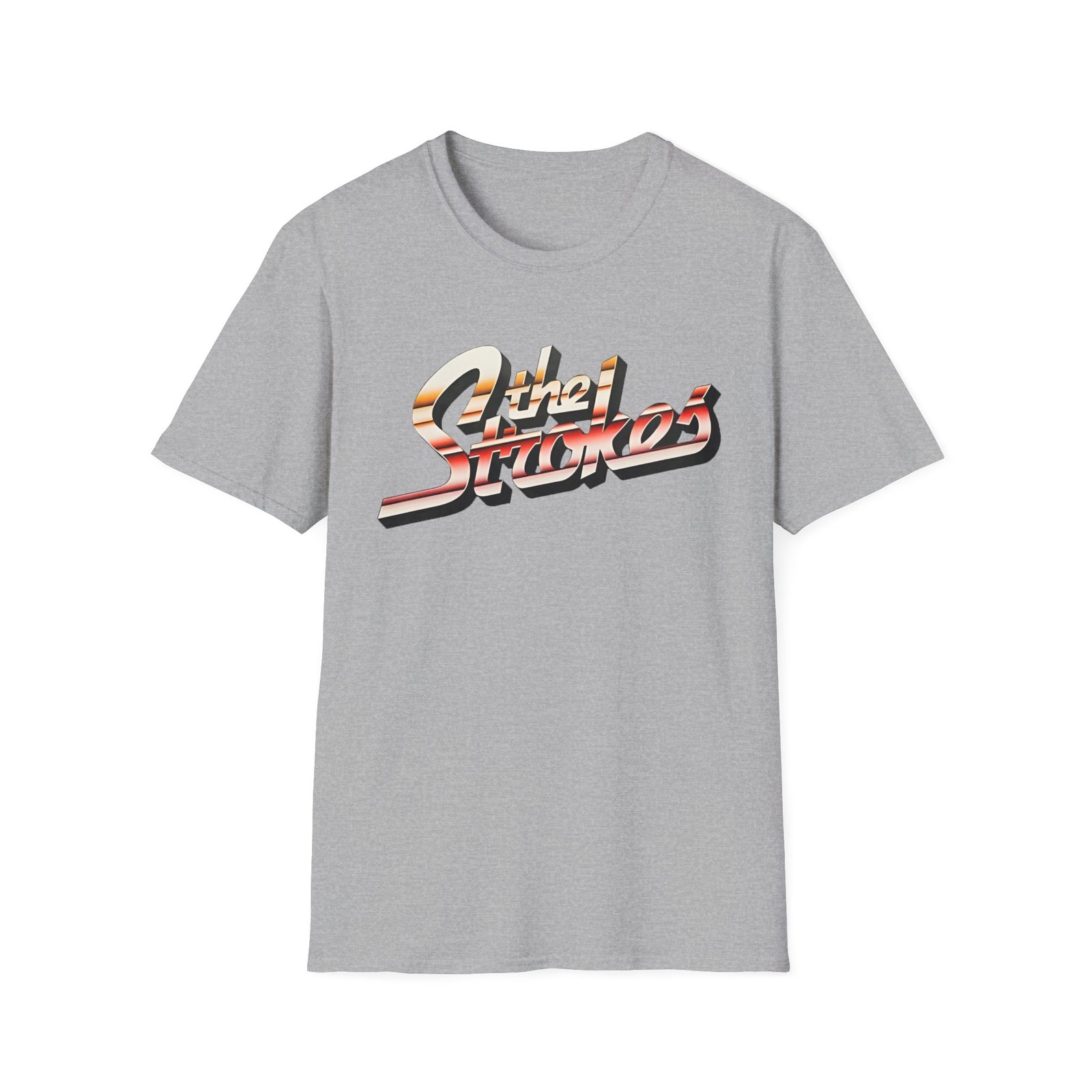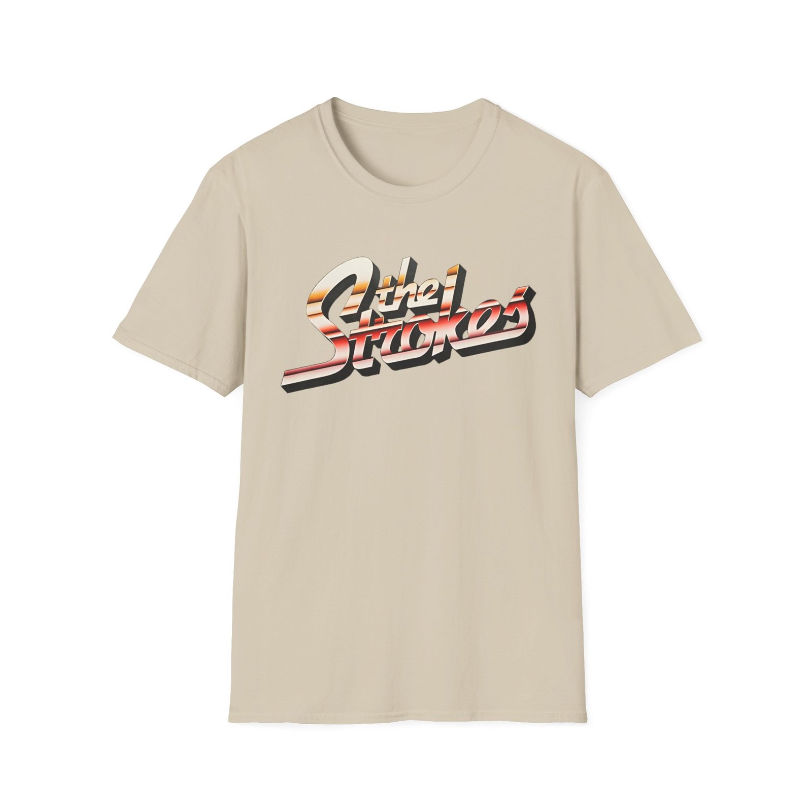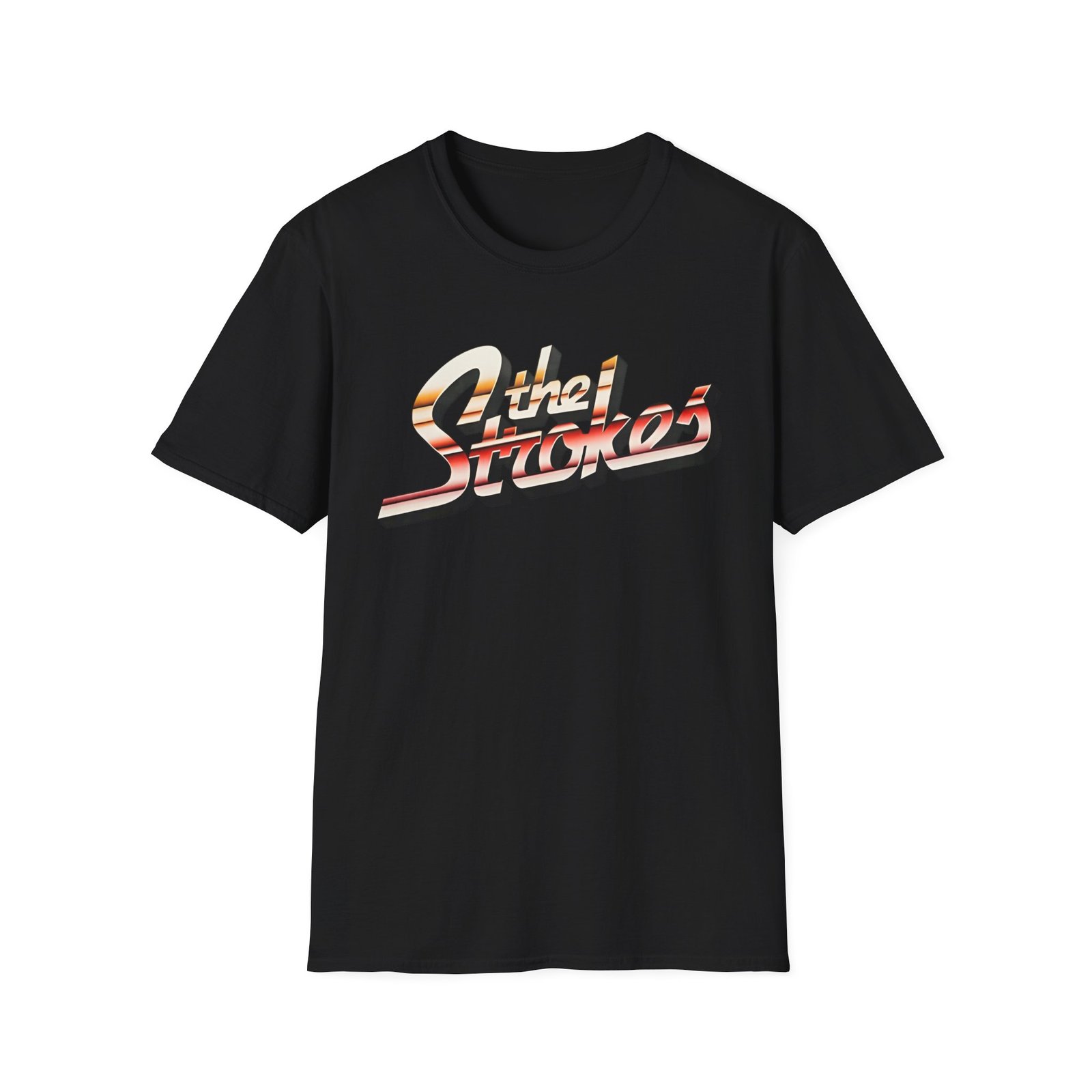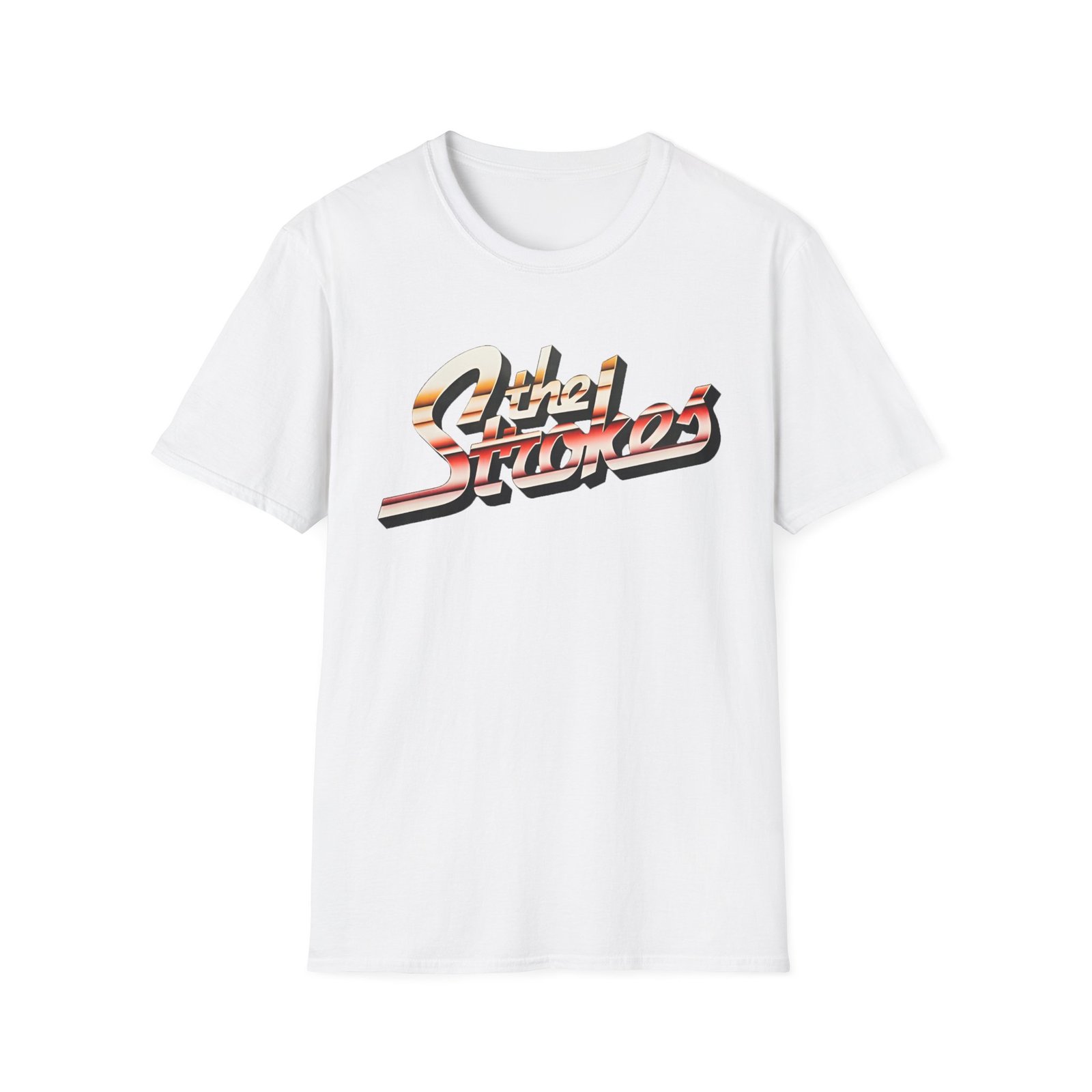The The Stroke Striped Logo unisex soft-style t-shirt puts a new spin on casual comfort. Made from very soft materials, this tee is 100% cotton for solid colors. Heather colors and sports grey include polyester. The shoulders have twill tape for improved durability. There are no side seams. The collar is made with ribbed knitting to prevent curling damage.