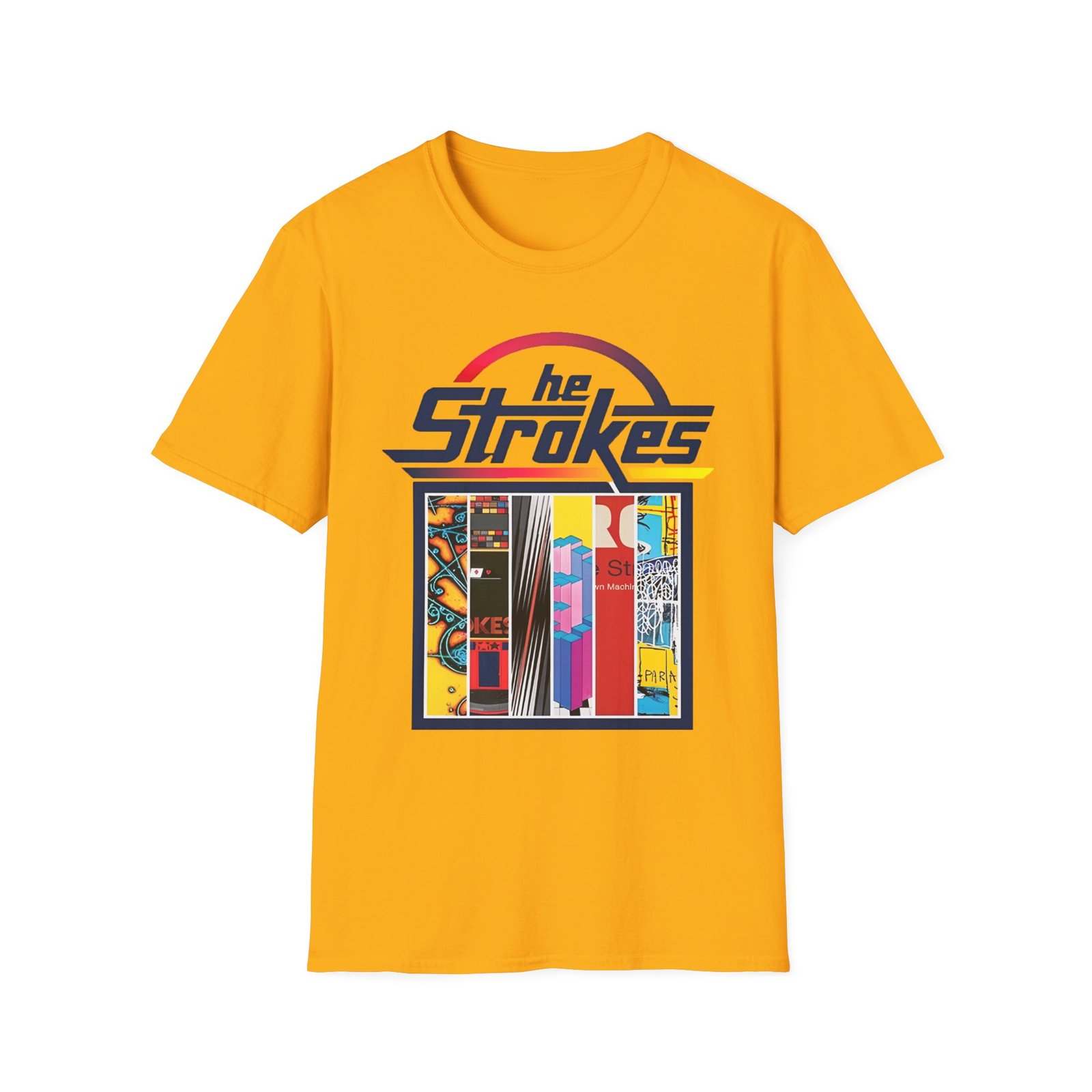 The The Stroke unisex soft-style t-shirt puts a new spin on casual comfort. Made from very soft materials, this tee is 100% cotton for solid colors. Heather colors and sports grey include polyester. The shoulders have twill tape for improved durability. There are no side seams. The collar is made with ribbed knitting to prevent curling damage.