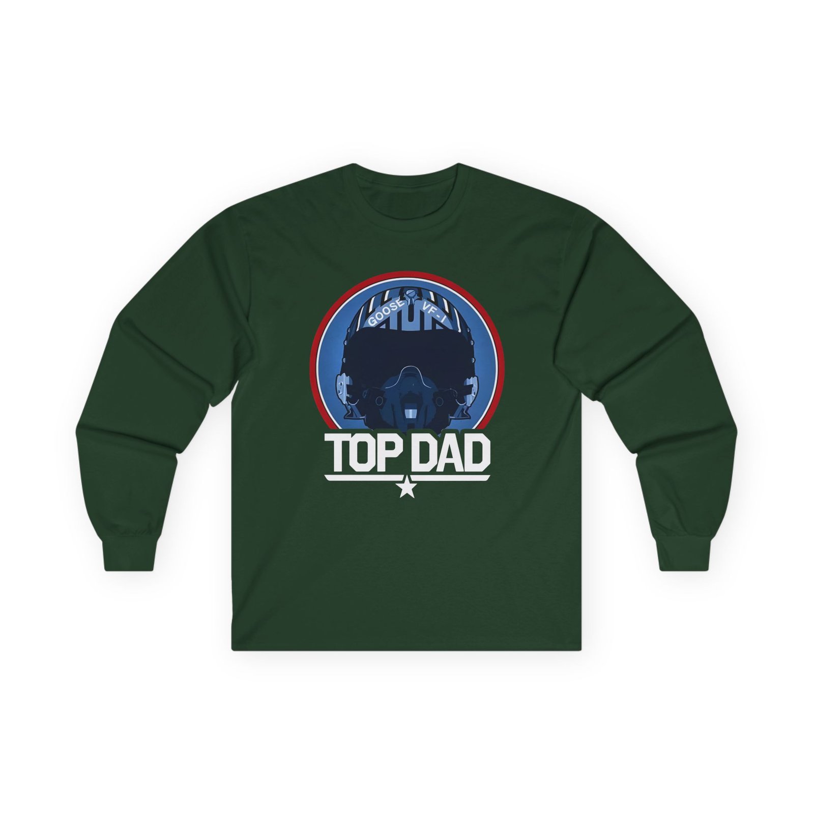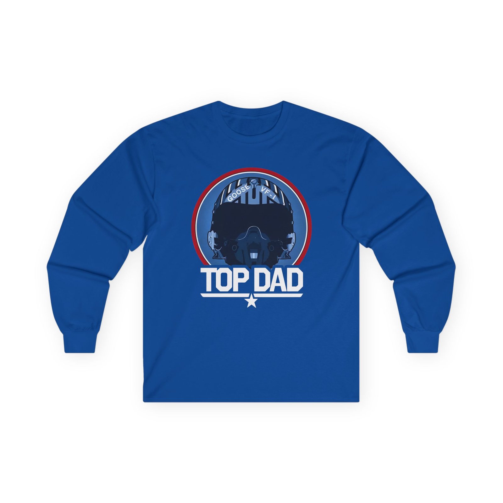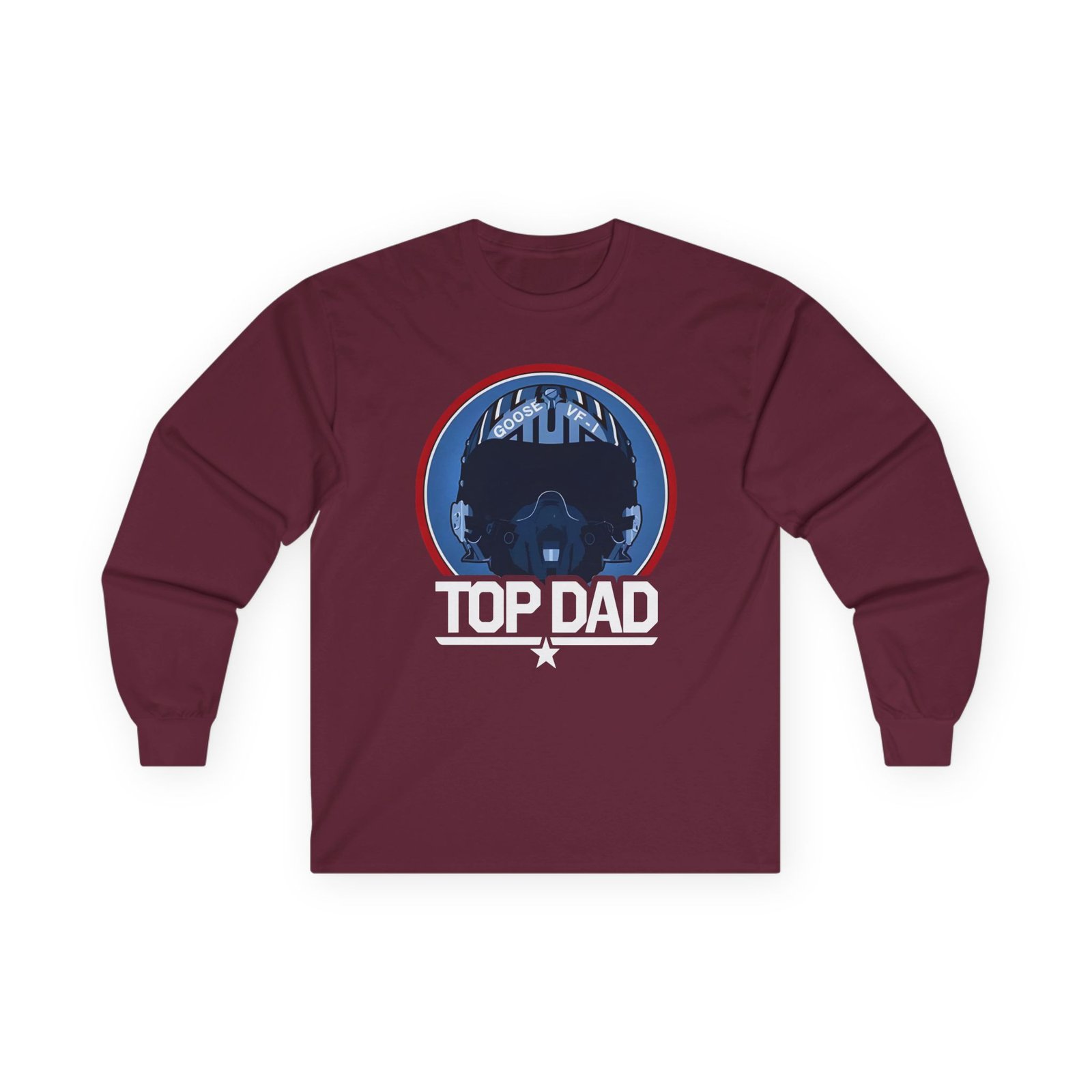 A bit more formal than a standard-issue t-shirt, the Top Gun Top Dad Helmet ultra cotton long sleeve tee is a clear comfort winner. The sleeves also act as a nice frame. There are no side seams. The shoulders are taped for improved durability. This makes for a good fitting around the shoulders and neck. The cotton used for these shirts is environmentally friendly.