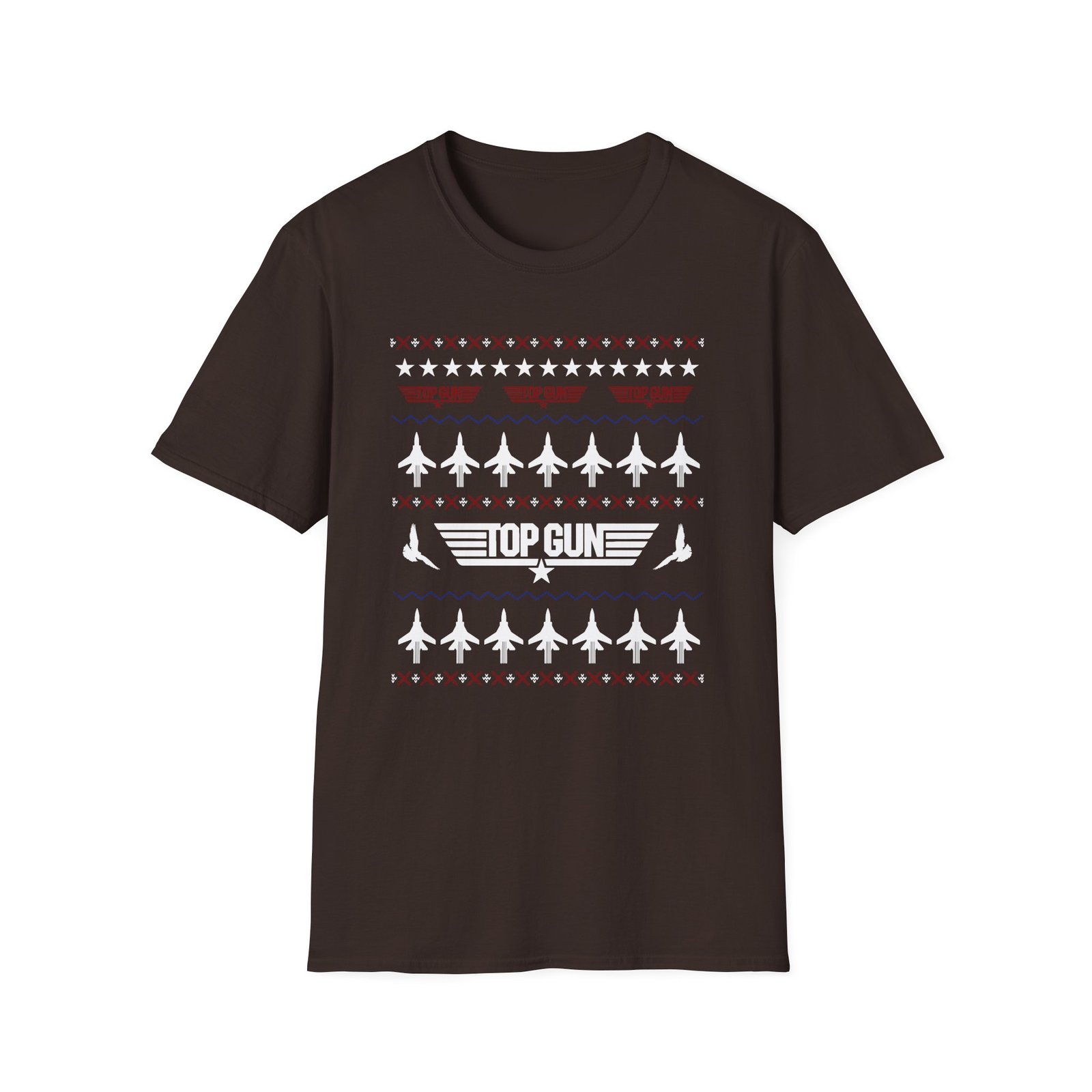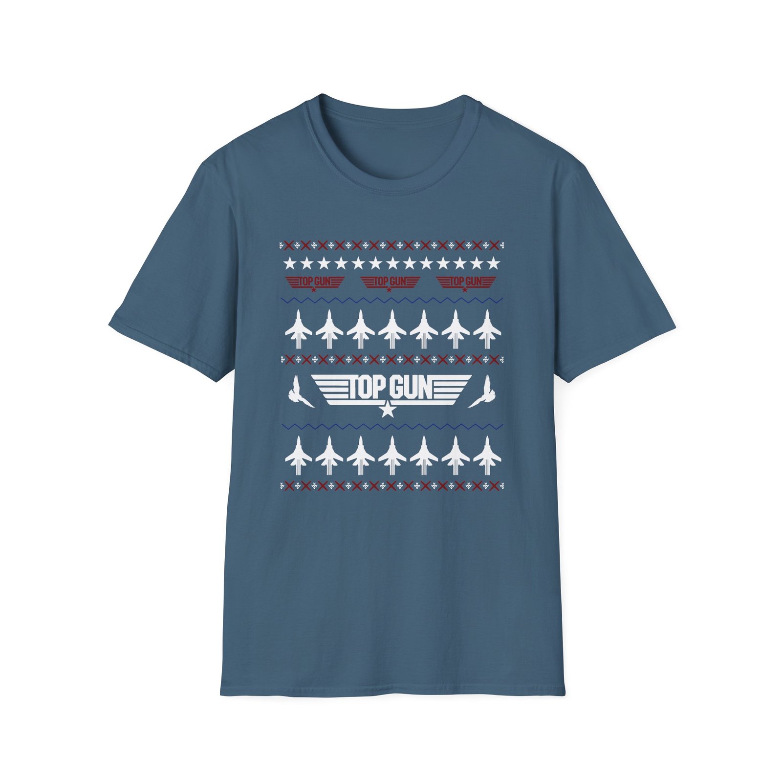 The Top Gun Ugly Christmas unisex soft-style t-shirt puts a new spin on casual comfort. Made from very soft materials, this tee is 100% cotton for solid colors. Heather colors and sports grey include polyester. The shoulders have twill tape for improved durability. There are no side seams. The collar is made with ribbed knitting to prevent curling damage.
