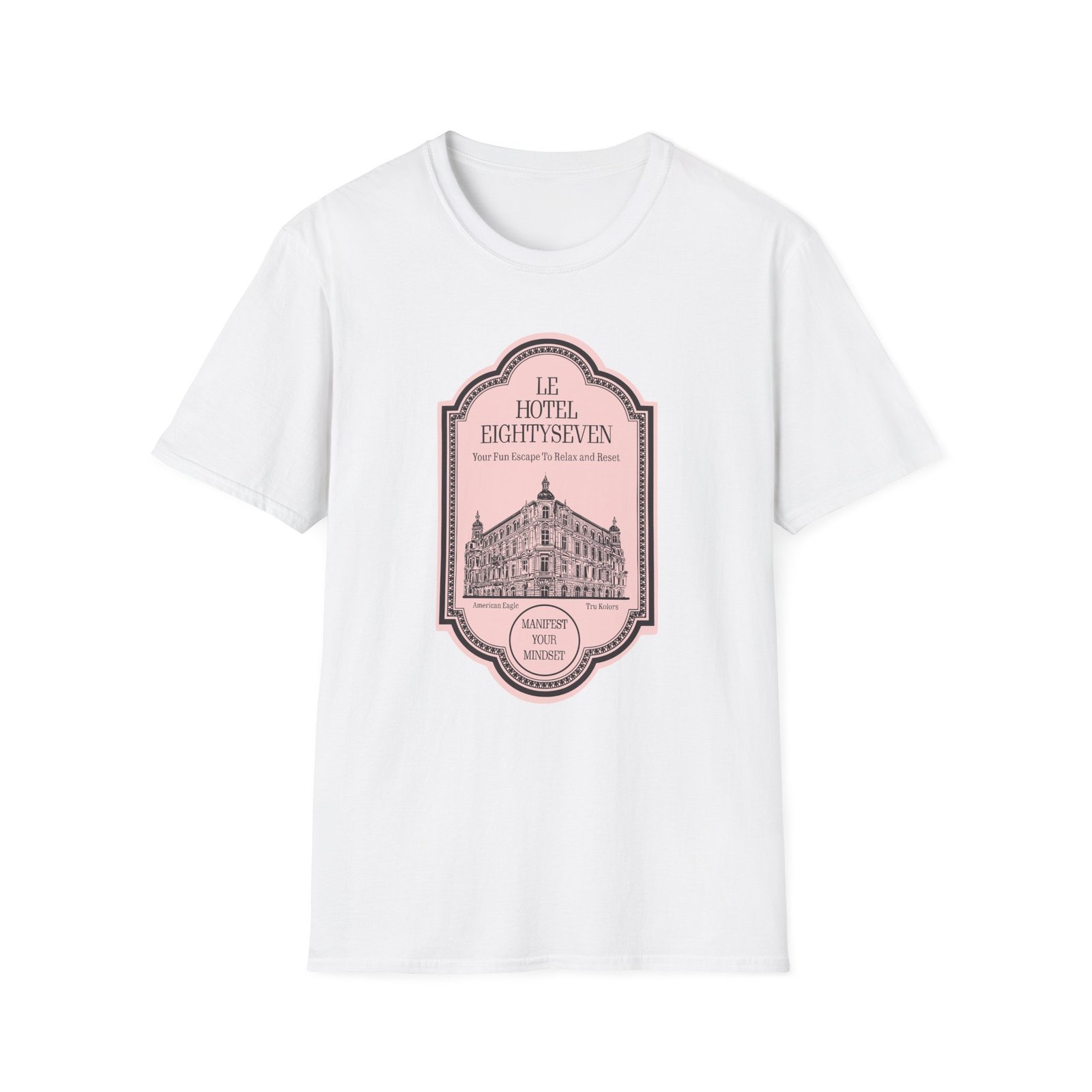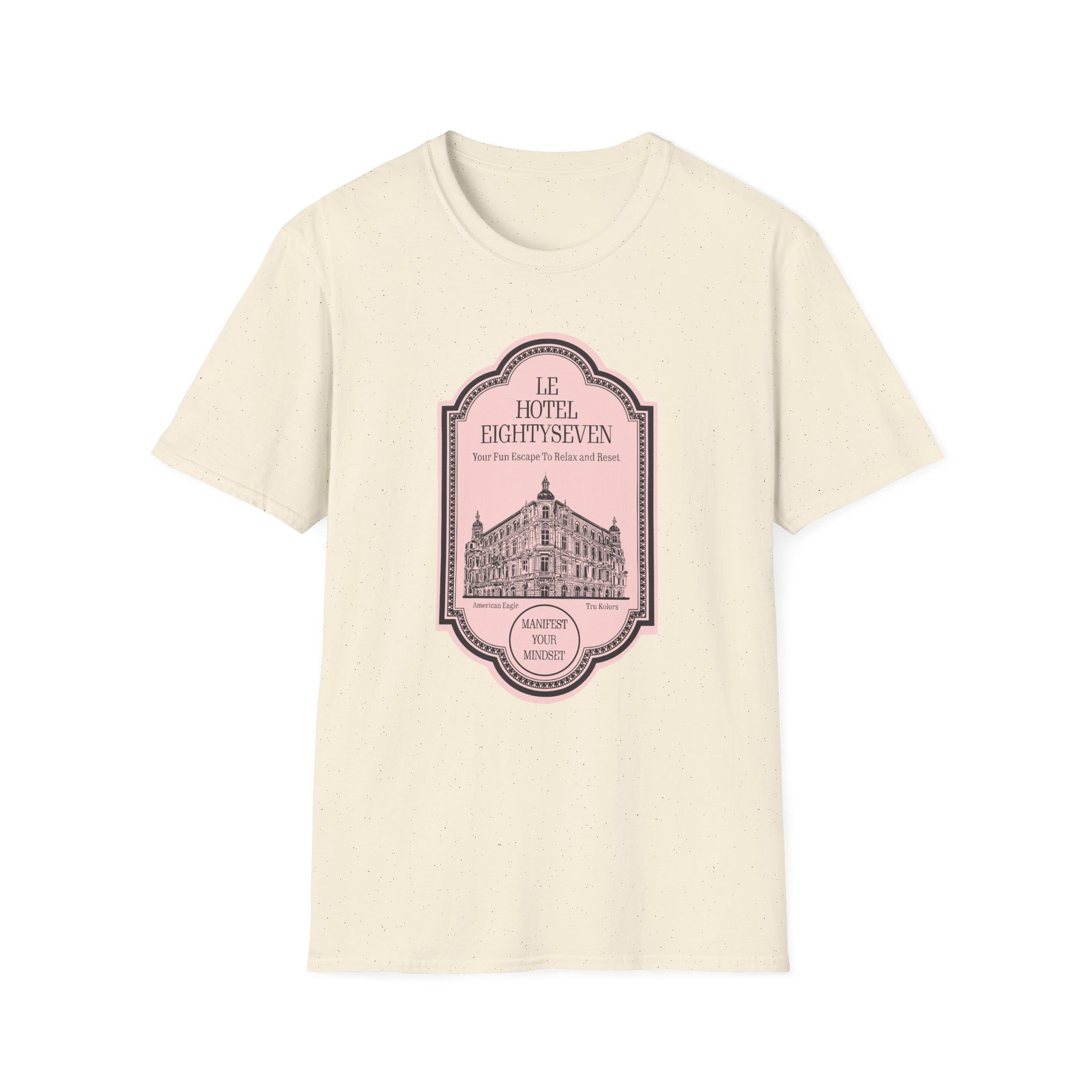 The Travis Kelce Hotel unisex soft-style t-shirt puts a new spin on casual comfort. Made from very soft materials, this tee is 100% cotton for solid colors. Heather colors and sports grey include polyester. The shoulders have twill tape for improved durability. There are no side seams. The collar is made with ribbed knitting to prevent curling damage.
