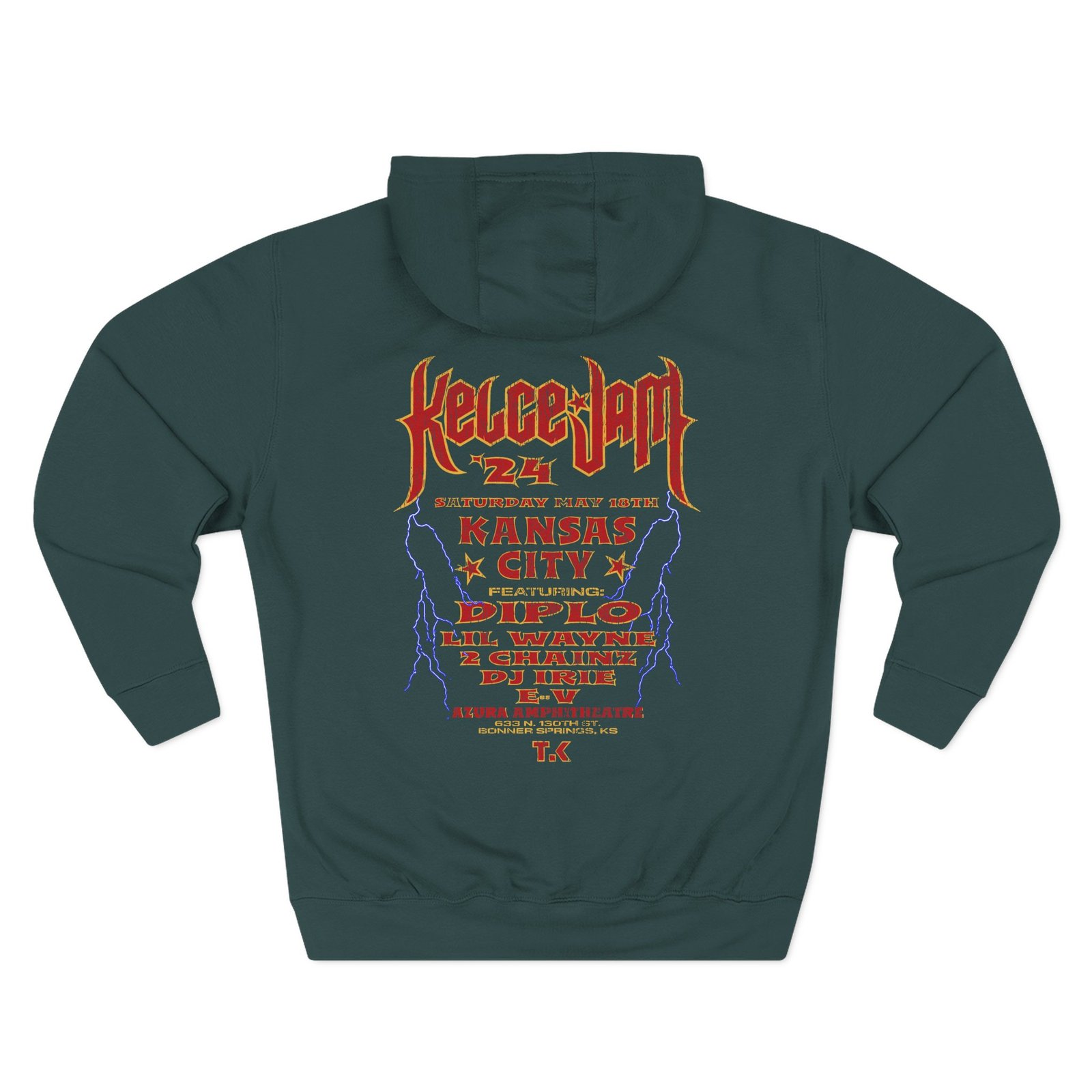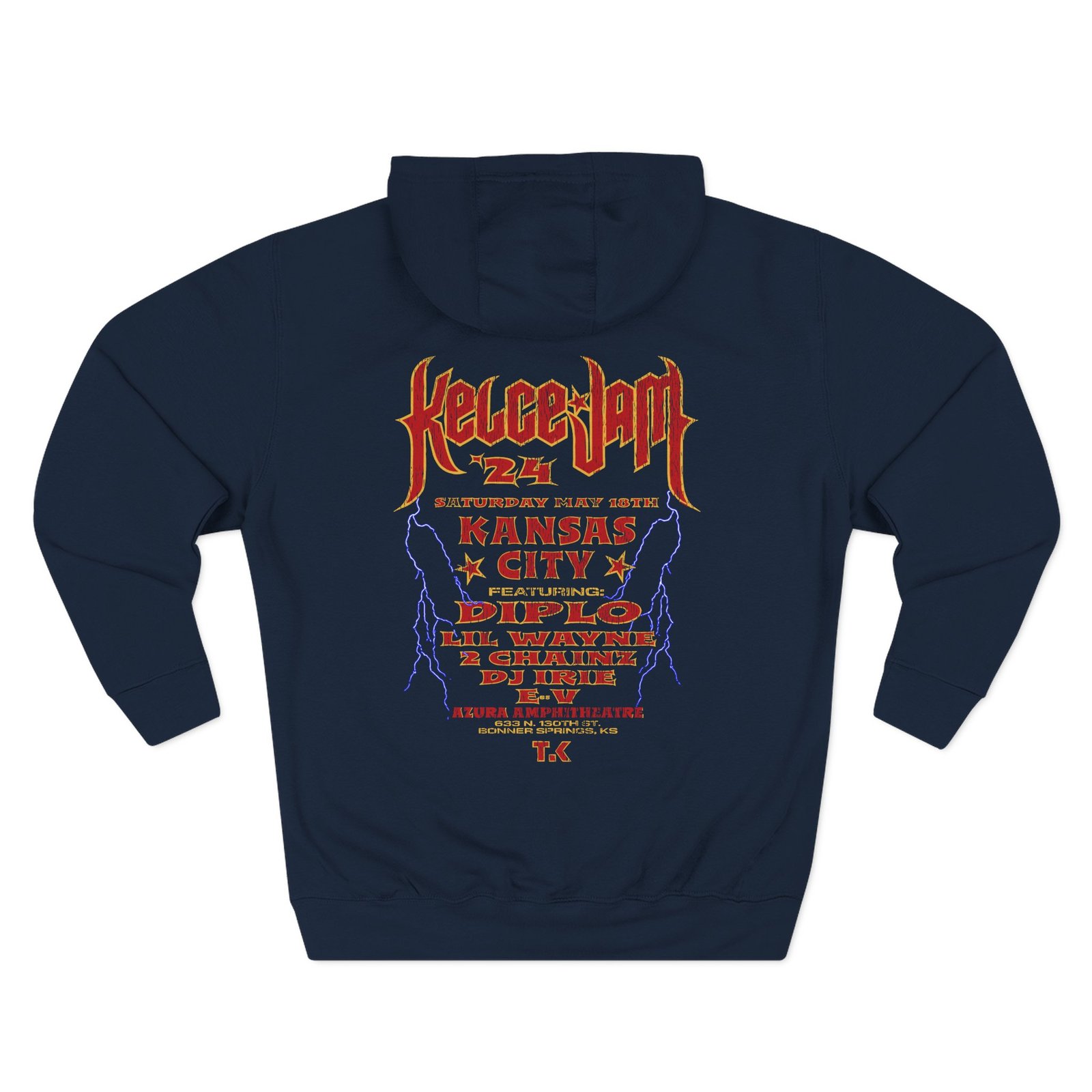 Beat the cold with this Travis Kelce Jam Tour premium pullover hoodie that’s just the right layer of warm and cozy. Made with three-panel fleece lining, this pullover is double stitched for durability and roomy. Pick one in your favorite color to match your style.