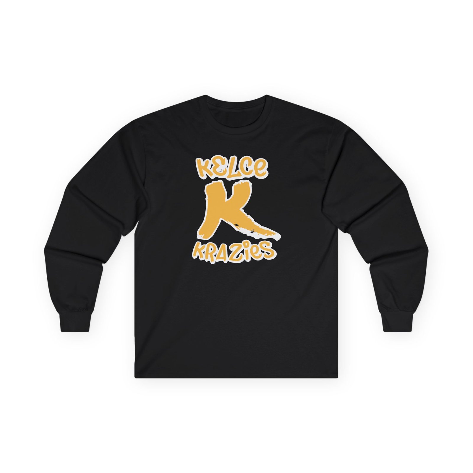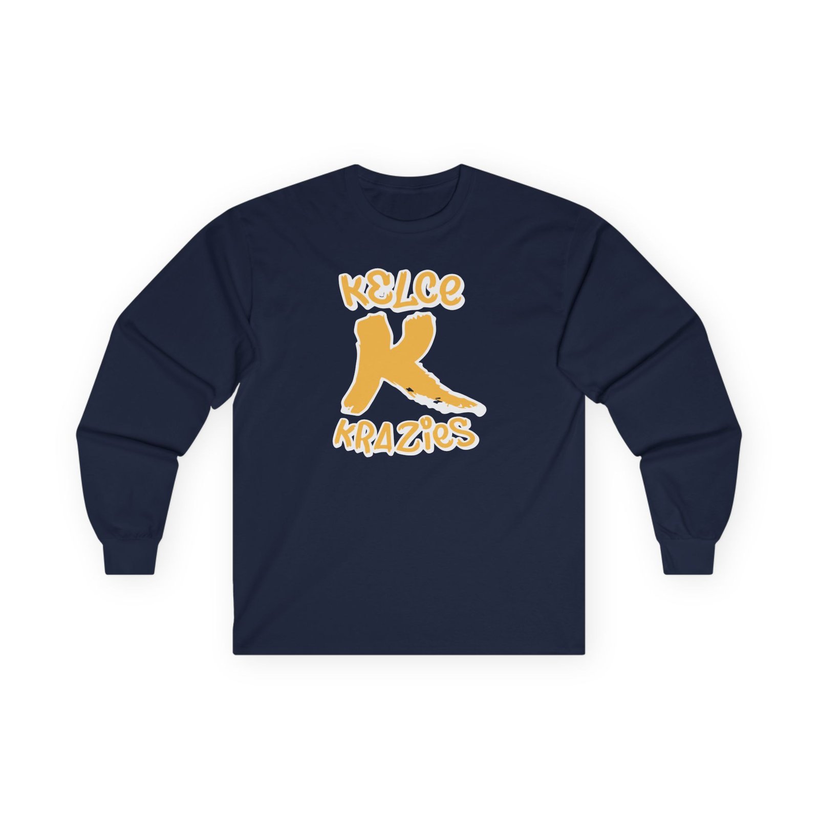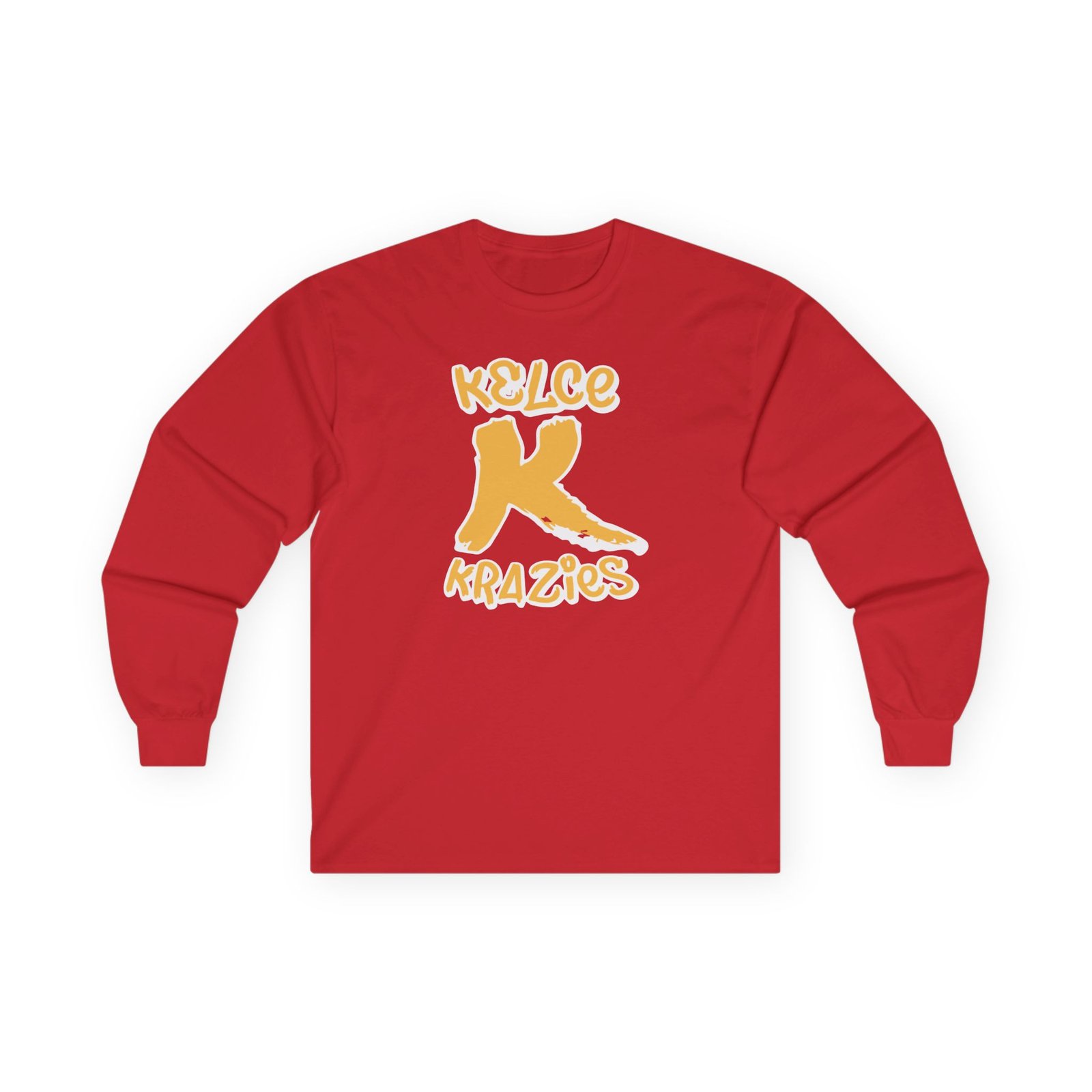 A bit more formal than a standard-issue t-shirt, the Travis Kelce Krazies ultra cotton long sleeve tee is a clear comfort winner. The sleeves also act as a nice frame. There are no side seams. The shoulders are taped for improved durability. This makes for a good fitting around the shoulders and neck. The cotton used for these shirts is environmentally friendly.