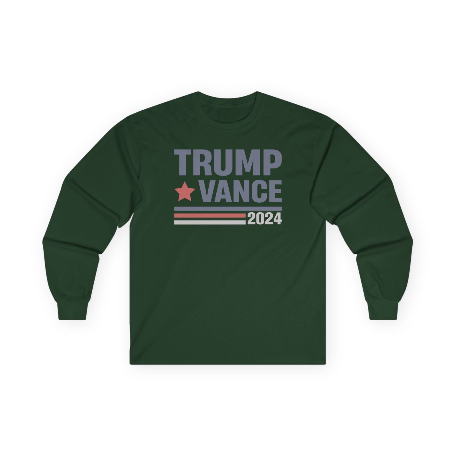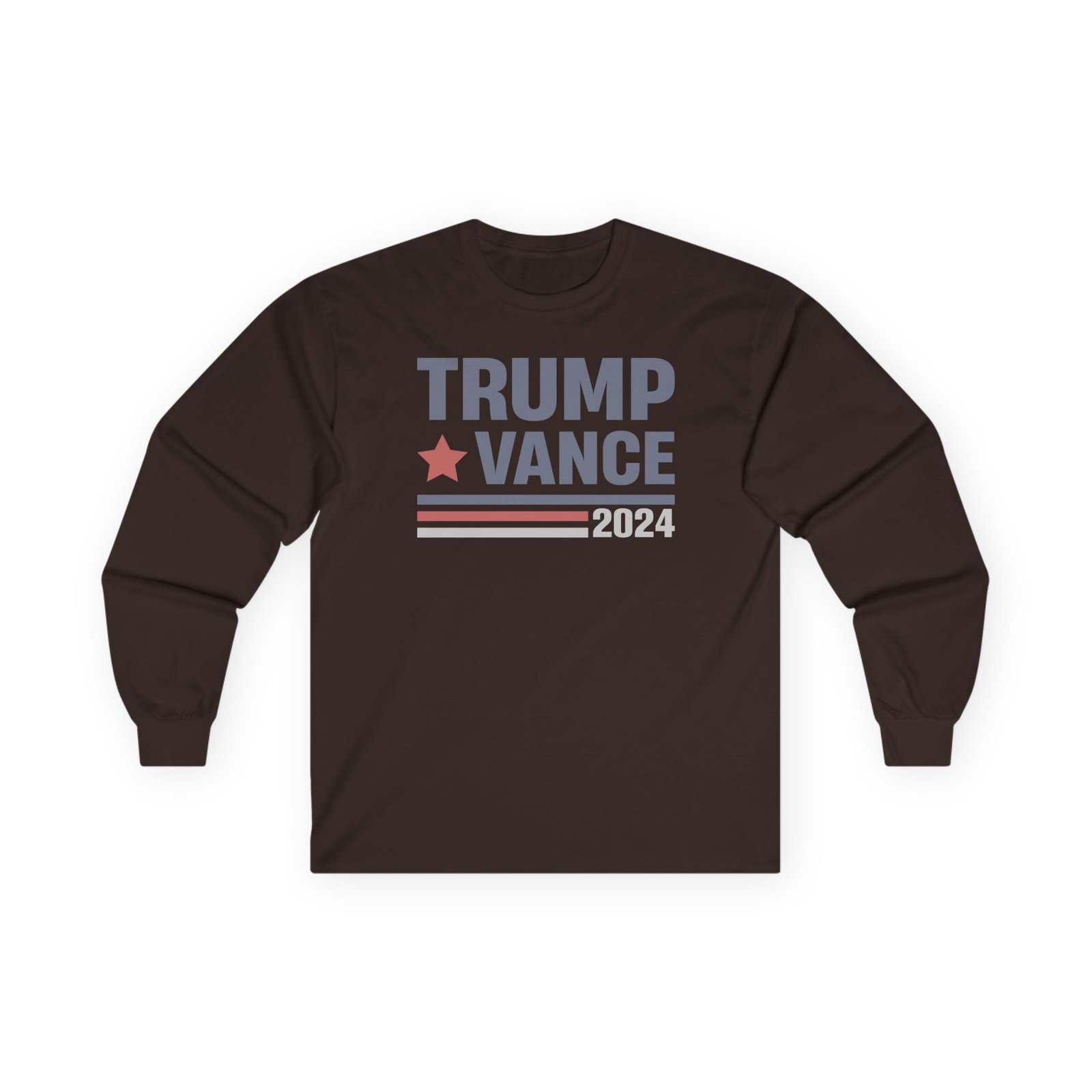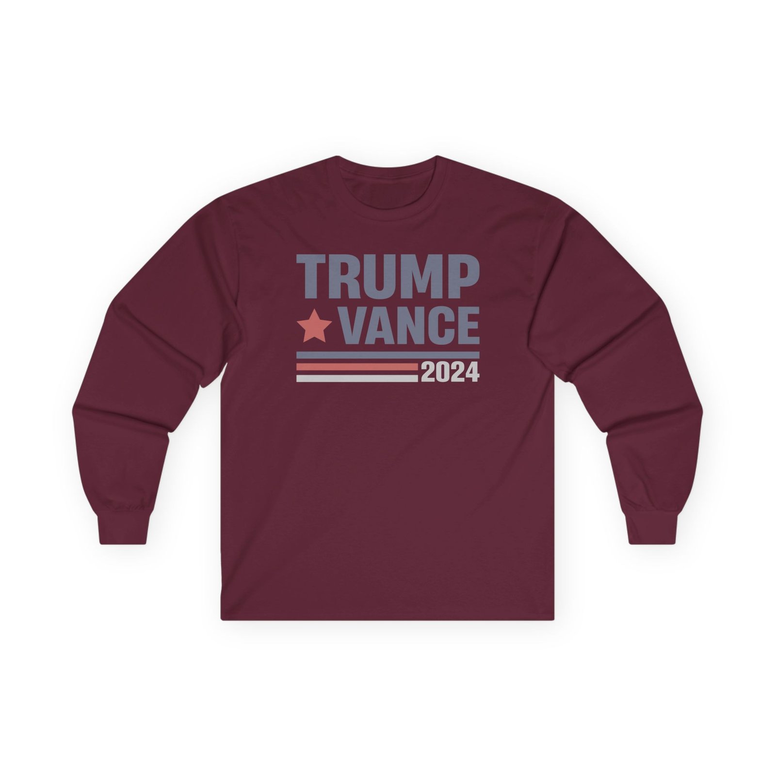 A bit more formal than a standard-issue t-shirt, the Trump Vance 2024 Election Supporter ultra cotton long sleeve tee is a clear comfort winner. The sleeves also act as a nice frame. There are no side seams. The shoulders are taped for improved durability. This makes for a good fitting around the shoulders and neck. The cotton used for these shirts is environmentally friendly.